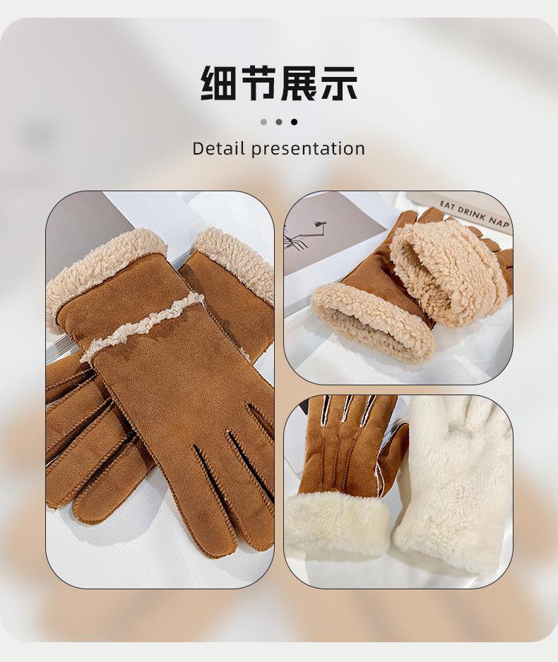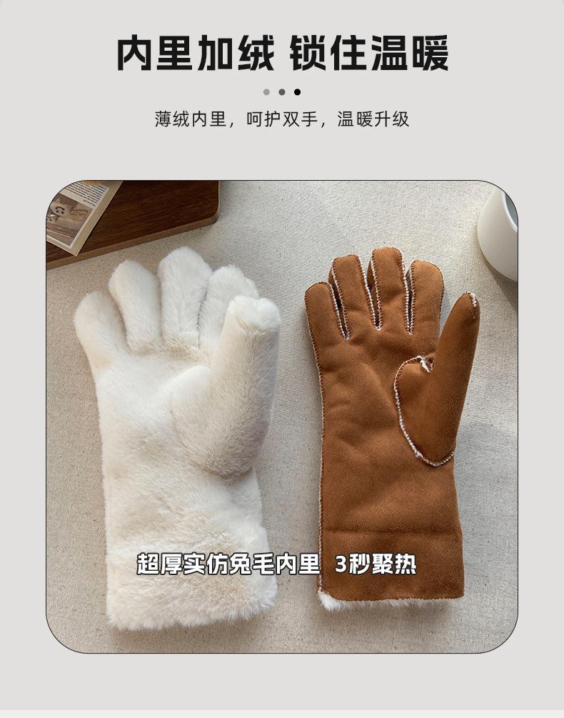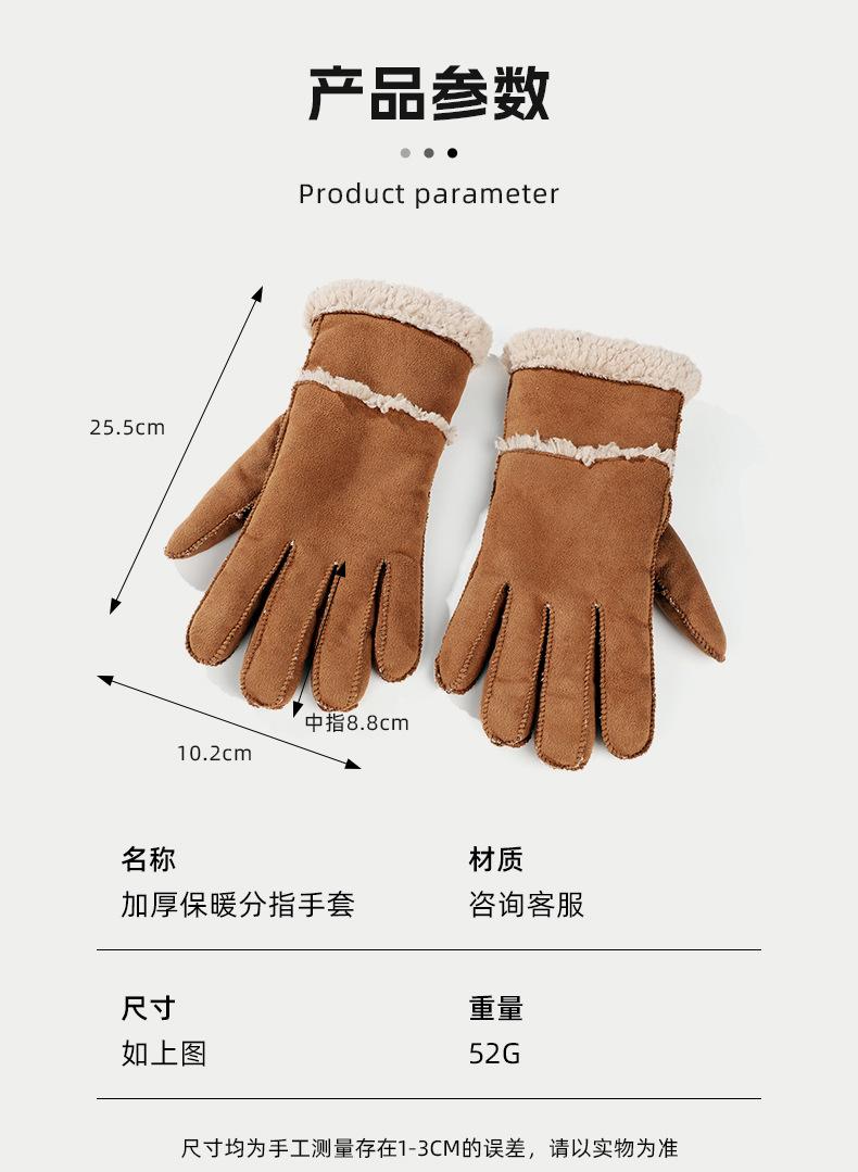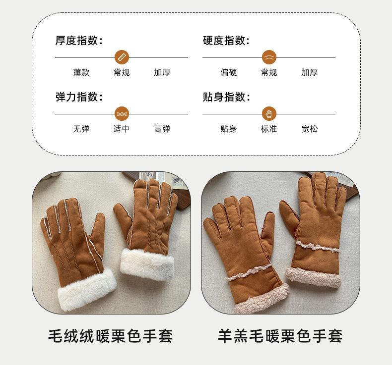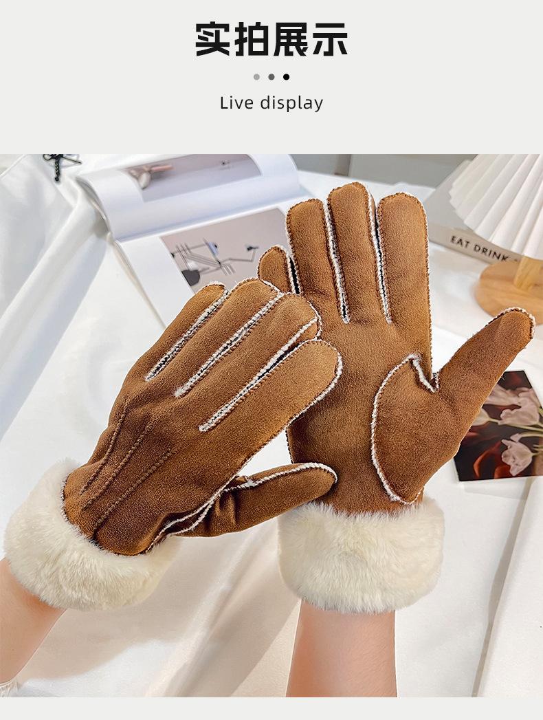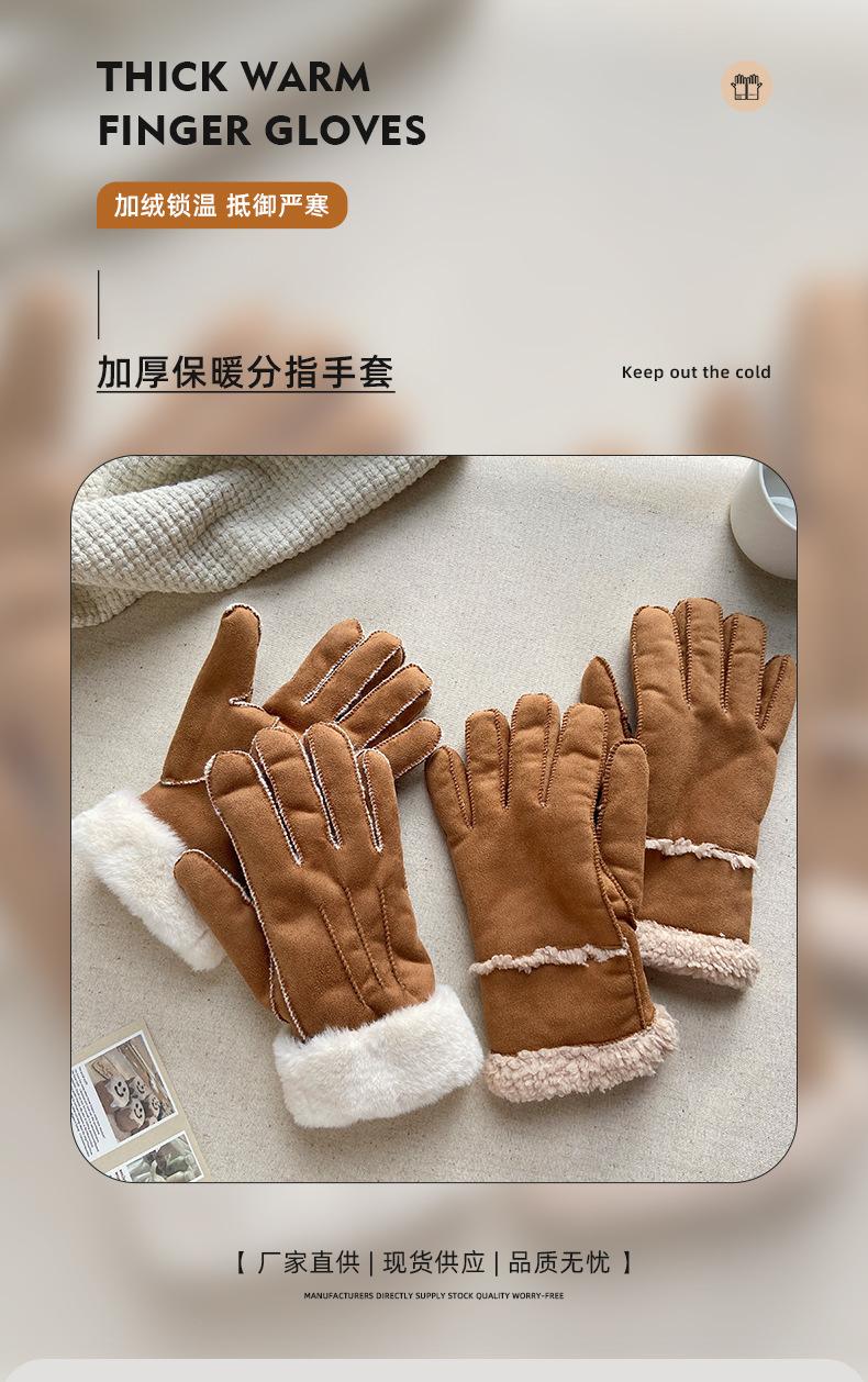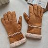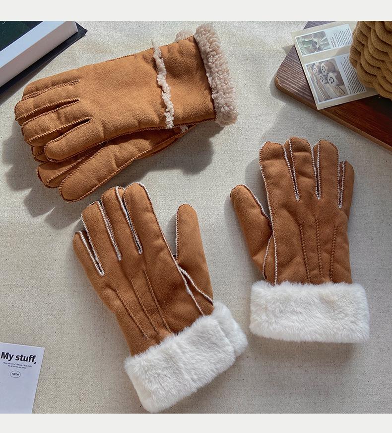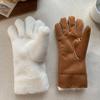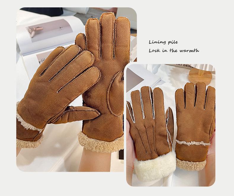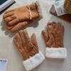 Guantes de Invierno Otoño Color Castaña Super Cálidos para Dedos para Exterior Lana de Cordero Gamuza Engrosados Combinables a Todo Prueba de Frío Lindos Guantes Coreanos