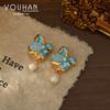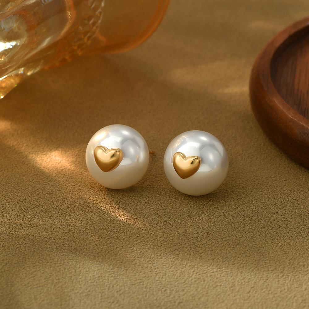 Pendientes de perlas francesas retro con aguja de plata S925 de TikTok Live, exquisitos pendientes de amor que combinan con todo, joyería para las orejas.