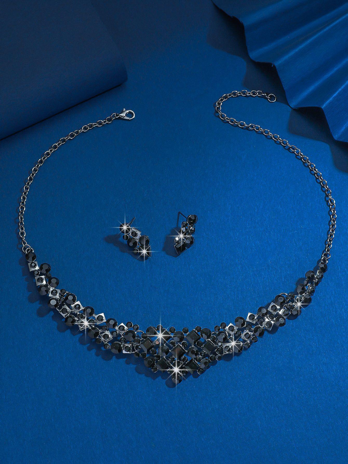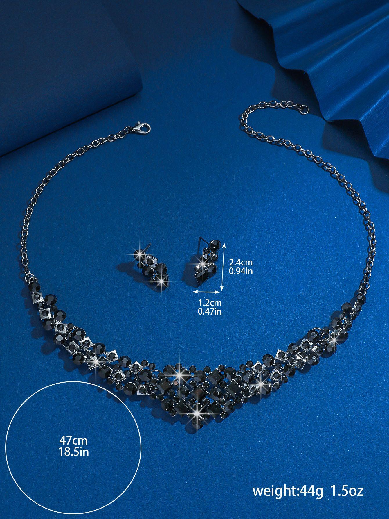 Collar y pendientes de cristal negro, nuevo traje, gargantilla corta, cadena de clavícula, joyería de estilo oscuro a la moda, collar y cadena.