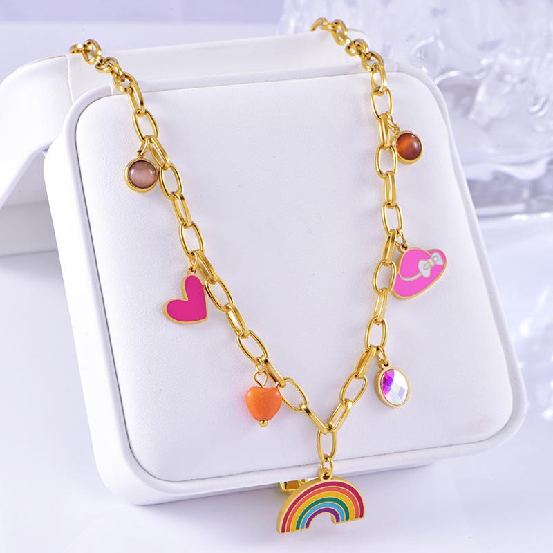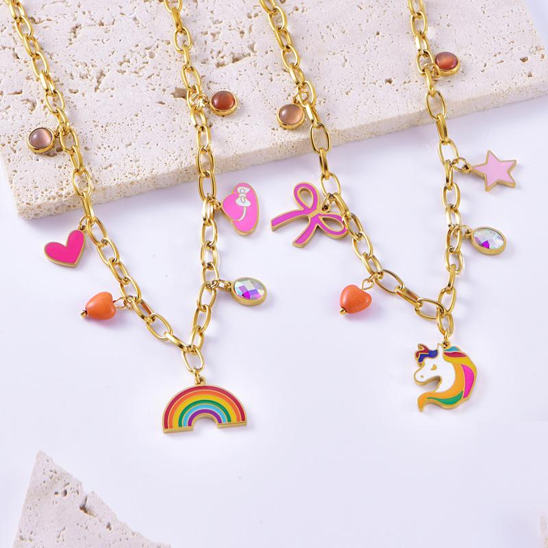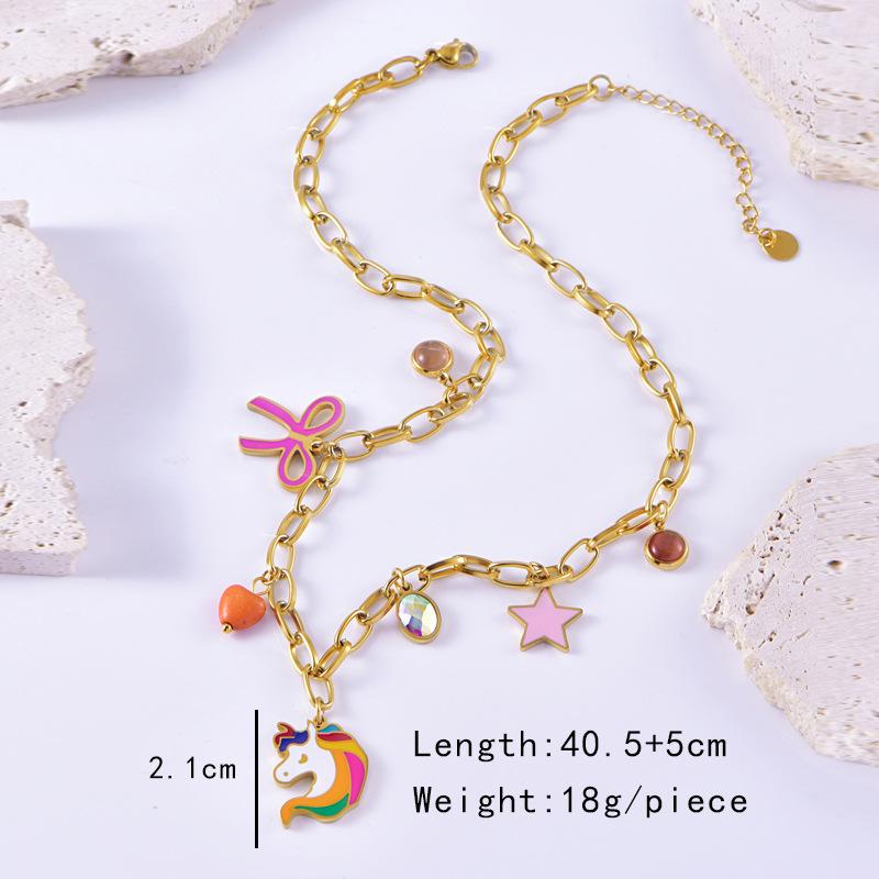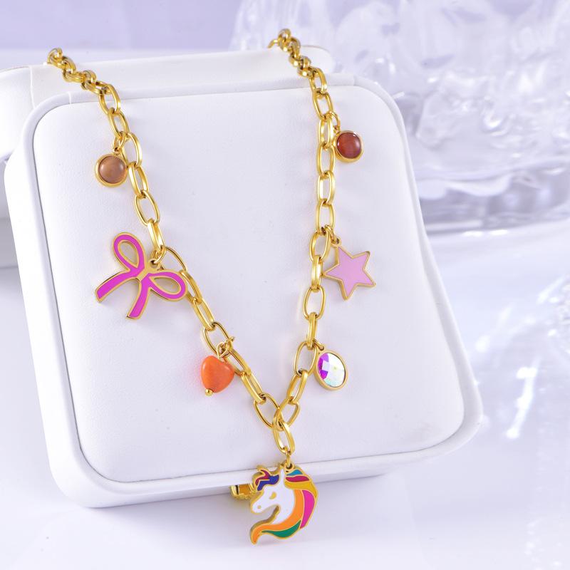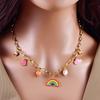 Collar con colgante de unicornio arcoíris con goteo de color transfronterizo para mujer, cadena dulce de verano para la clavícula, regalo de Tanabata para el Día de San Valentín