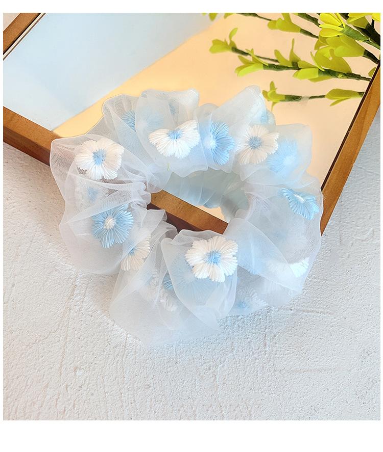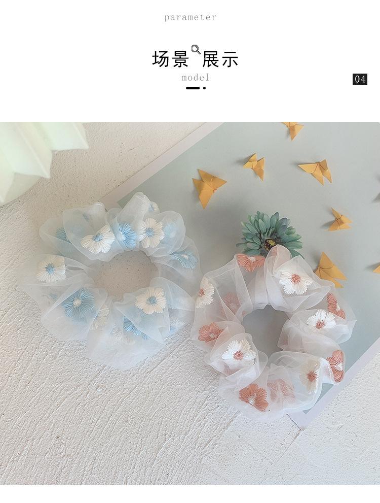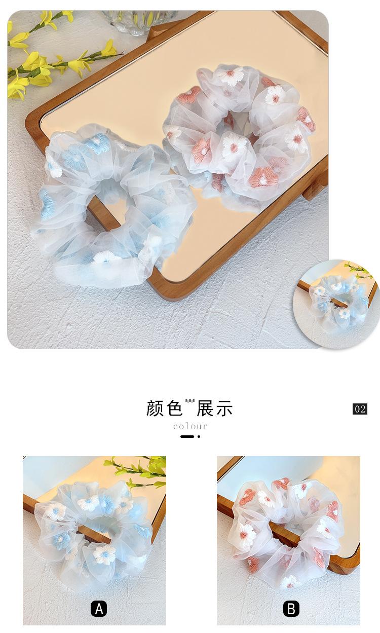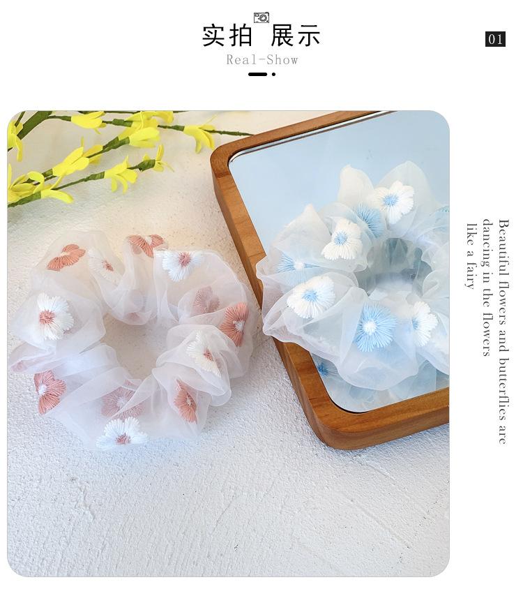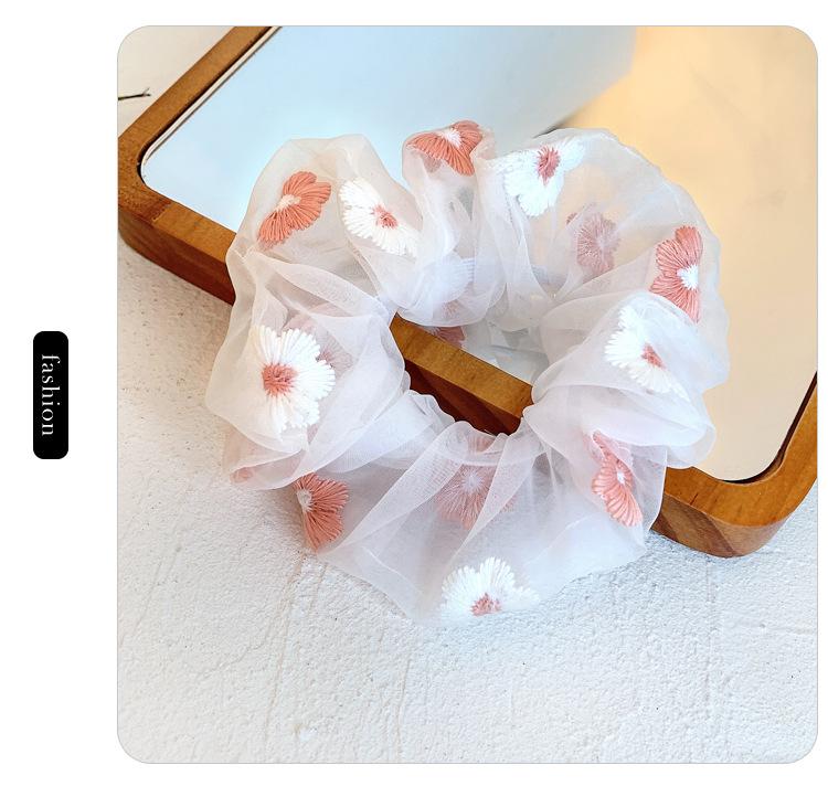 Anillo para el cabello con flor bordada, romántico, rosa y azul, estilo coreano, para el intestino grueso, cuerda de malla, accesorios para el cabello para mujer.