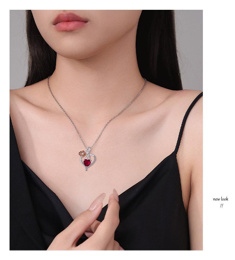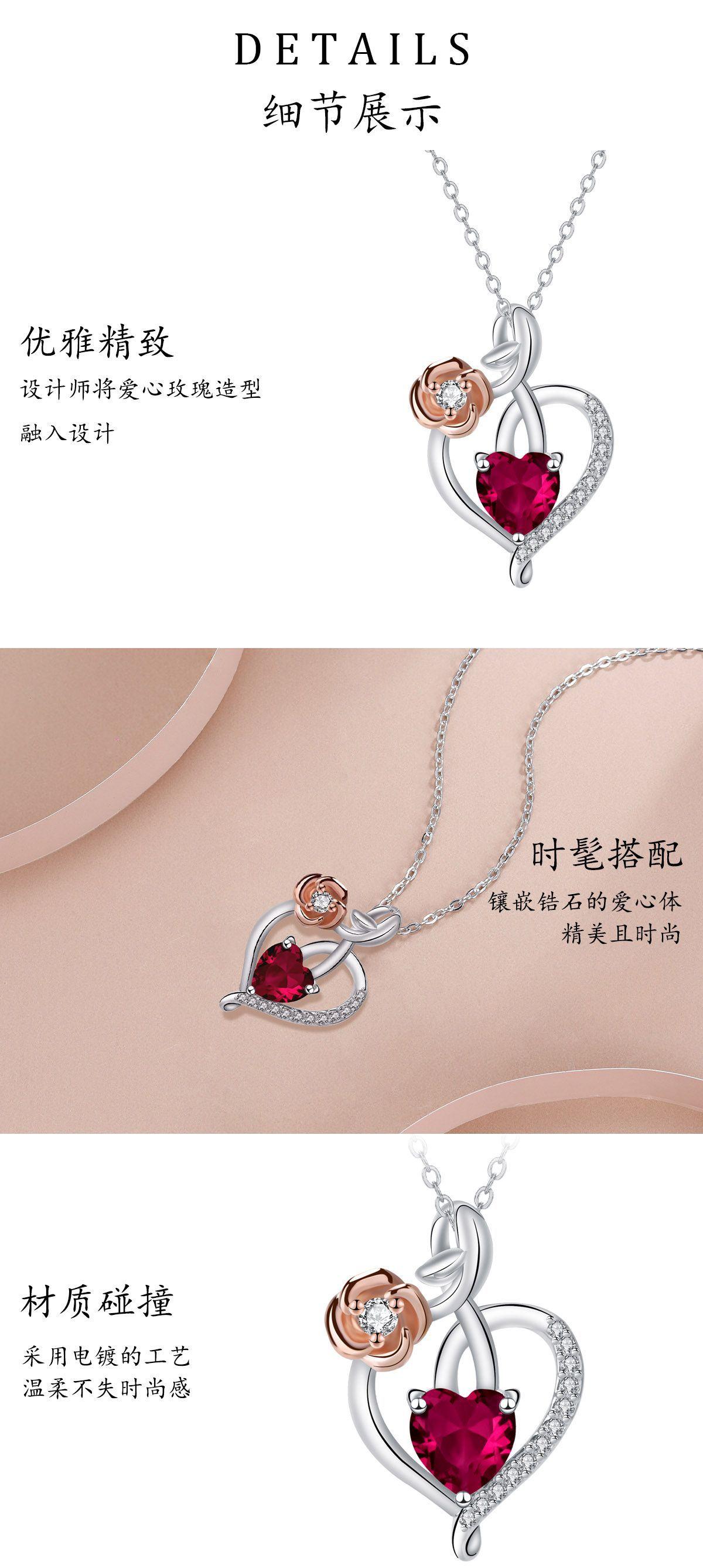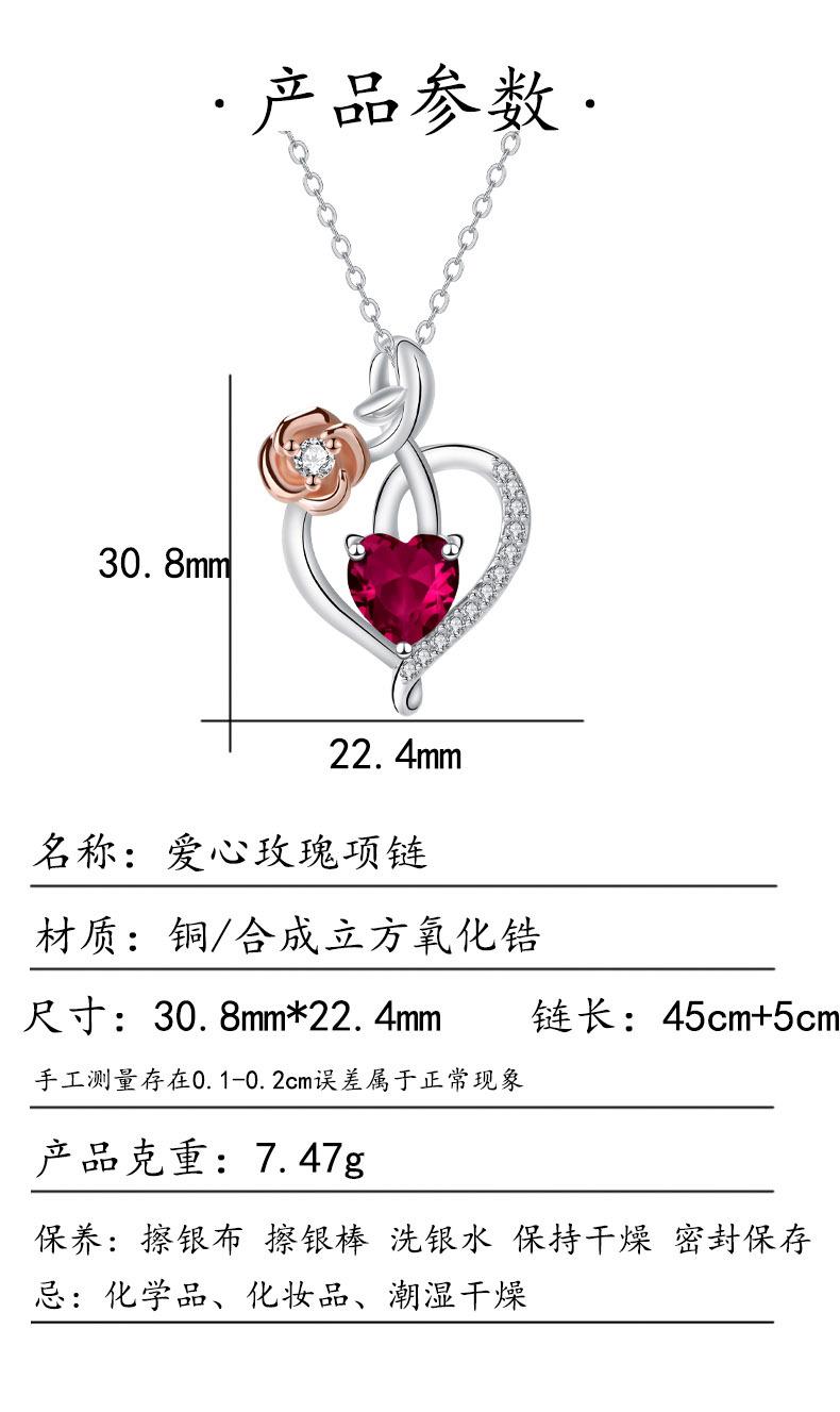 Collar Corazón Rosa Joyería Más Vendida Comercio Electrónico Transfronterizo Carman Regalo para Mujer Colgante Dulce Sentido de Alta Gama Europeo y Americano