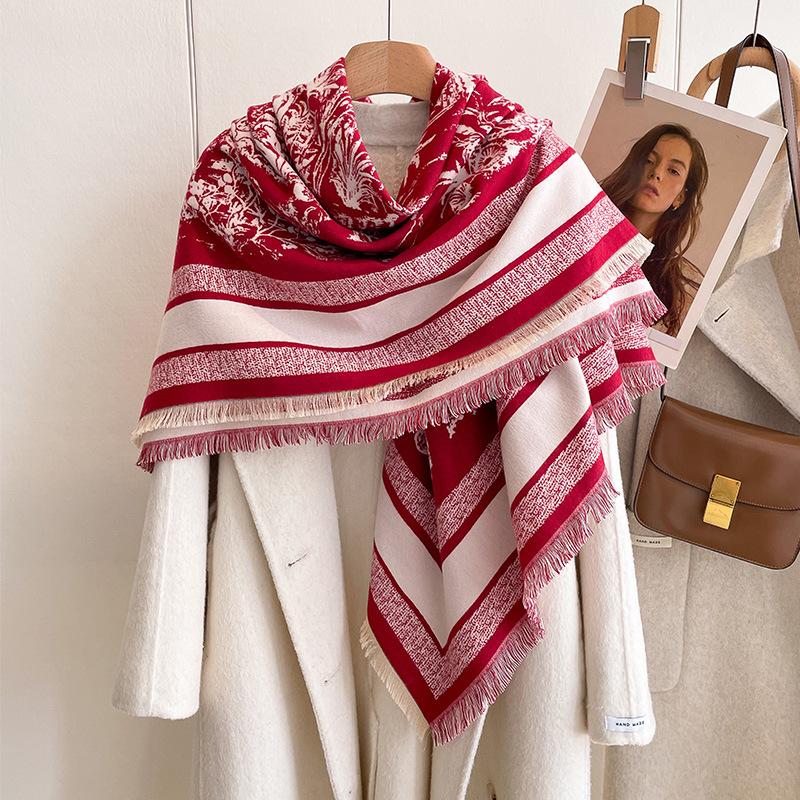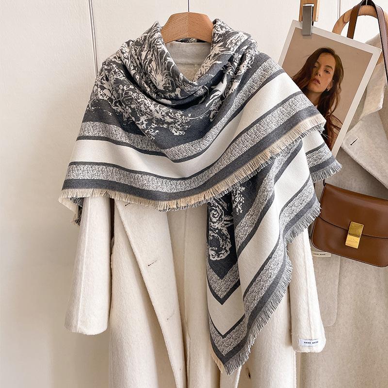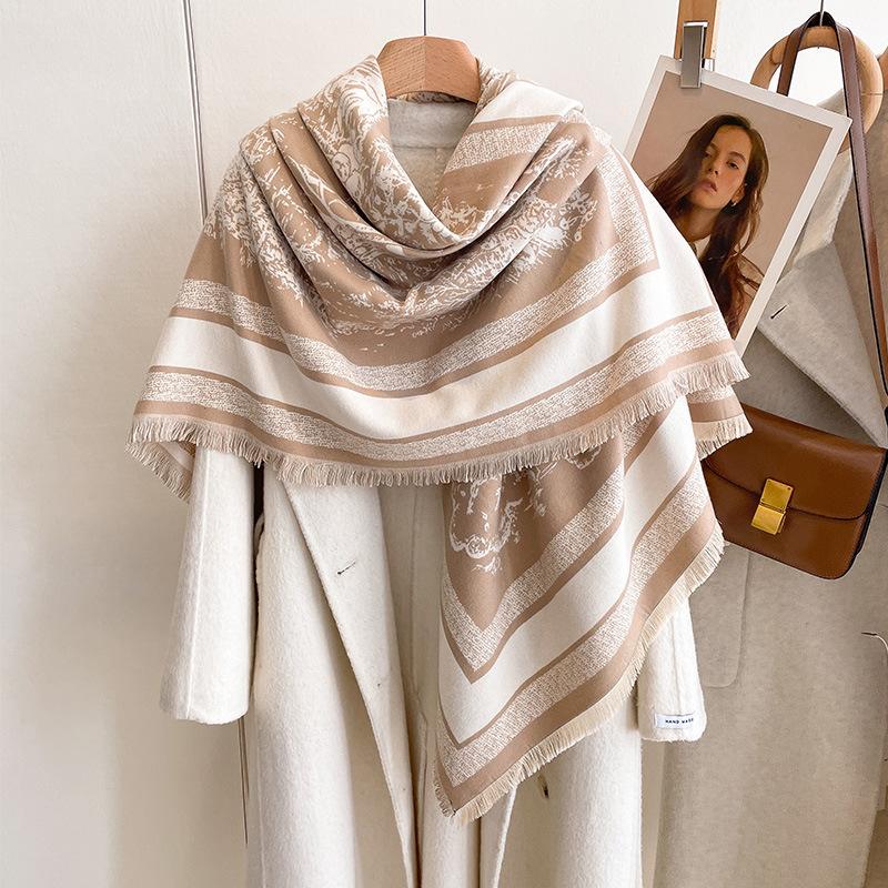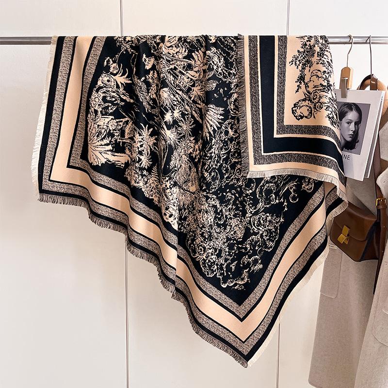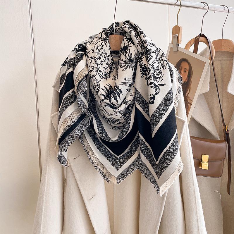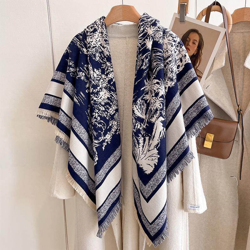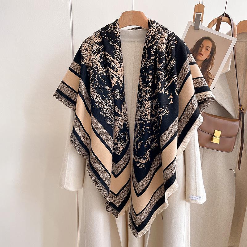 Bufanda cálida de cachemira sintética para mujer, estilo Mori europeo y americano, estampada, combinable, cuadrada, resistente al frío, chal con aire acondicionado, para otoño e invierno.