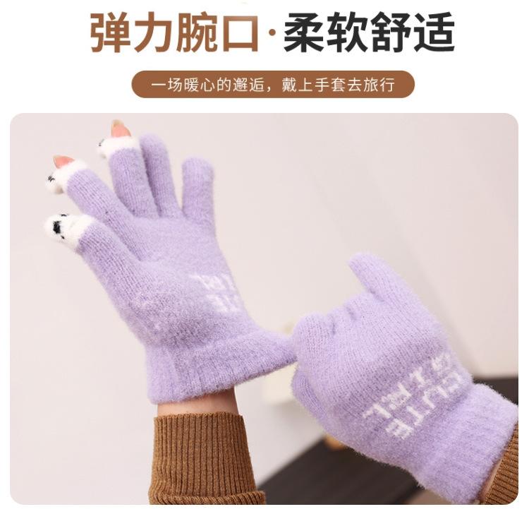 Guantes sin dedos con pantalla táctil, Cálidos y a prueba de frío, Tejido de felpa, Adecuados para escribir, Lindos para estudiantes, Pantalla táctil de punta de dedo de cinco dedos