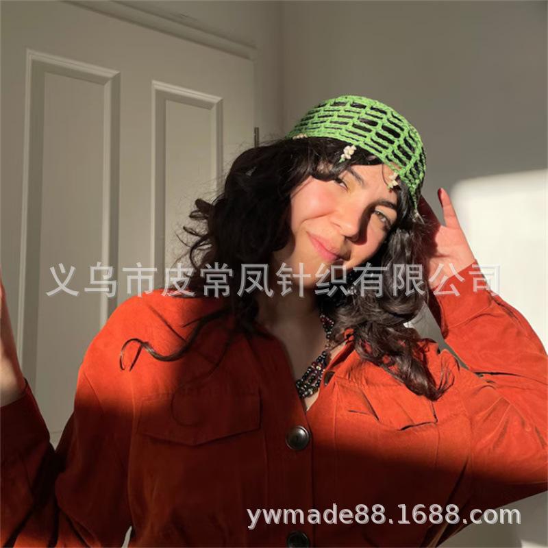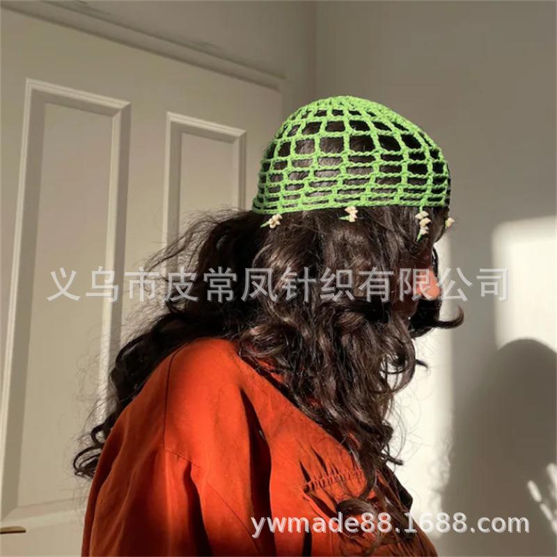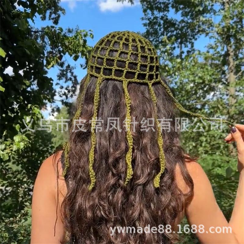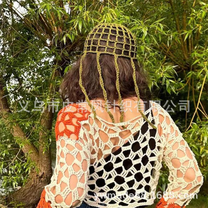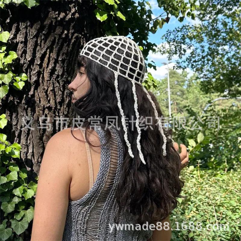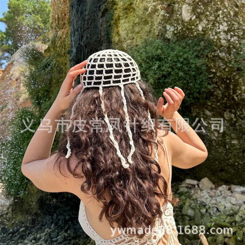 Comercio exterior Amazon transfronterizo nuevo sombrero de borla hueca europeo y americano tejido a mano puro personalidad de moda sombrero para adultos