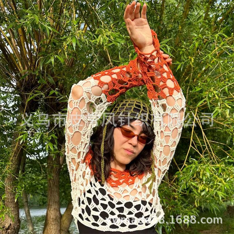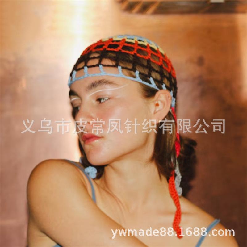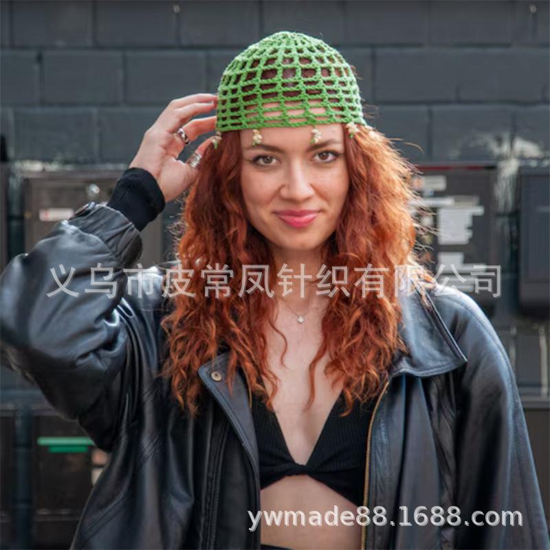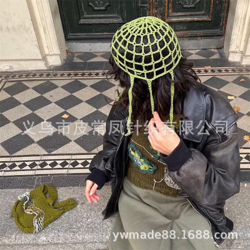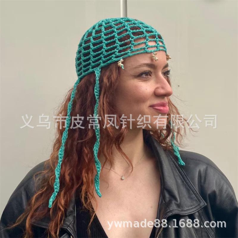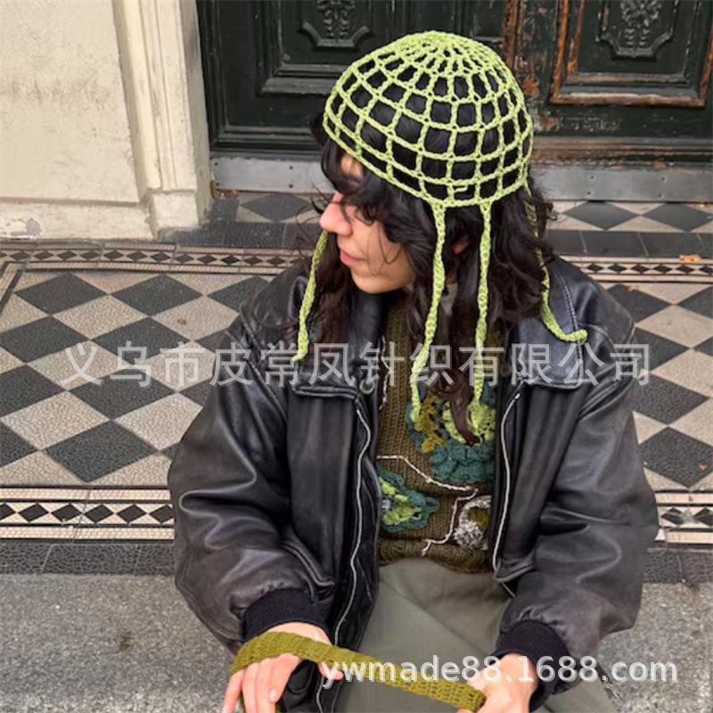 Comercio exterior Amazon transfronterizo nuevo sombrero de borla hueca europeo y americano tejido a mano puro personalidad de moda sombrero para adultos