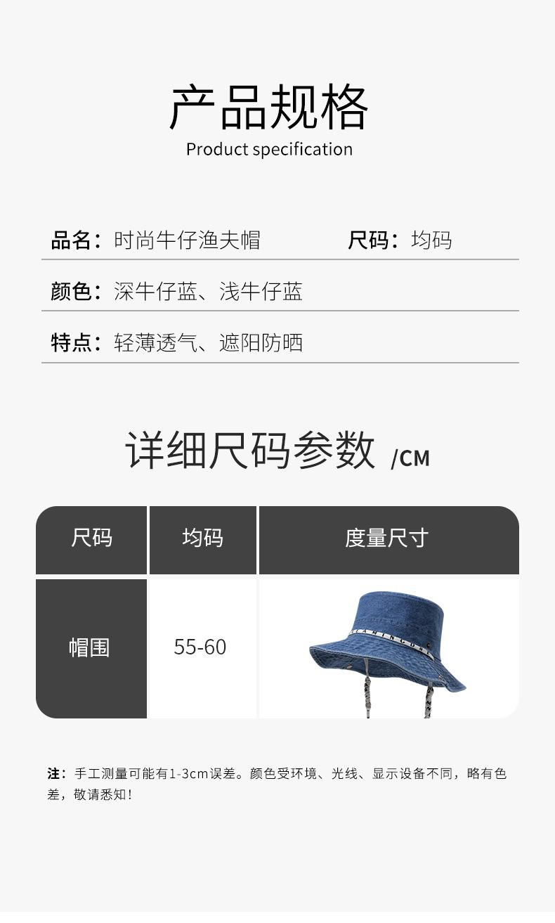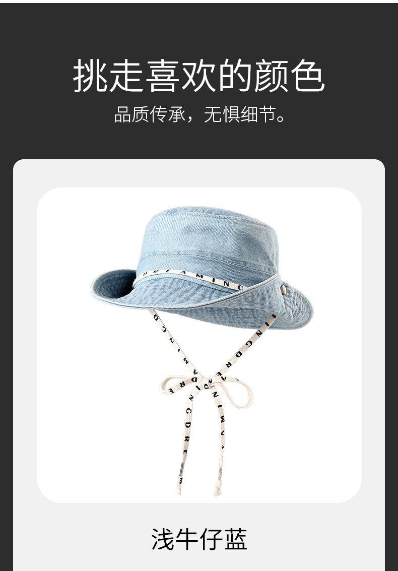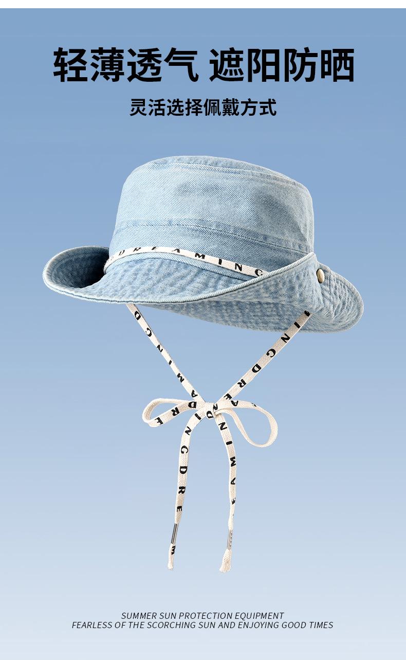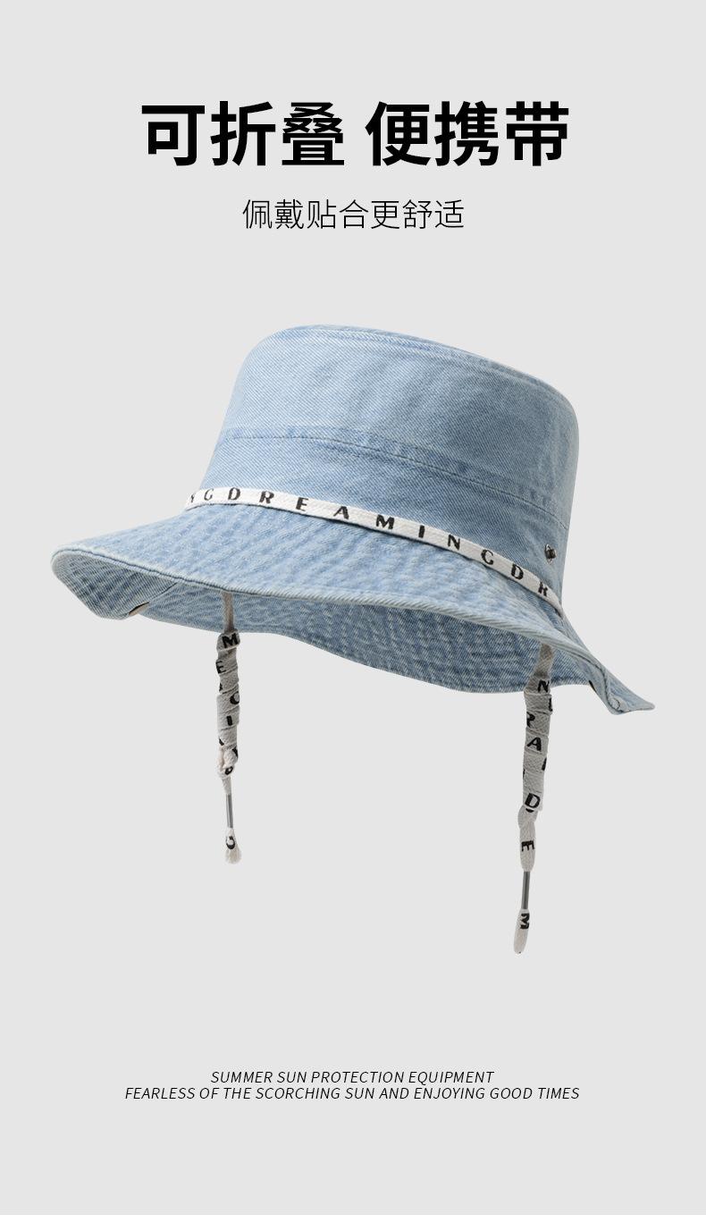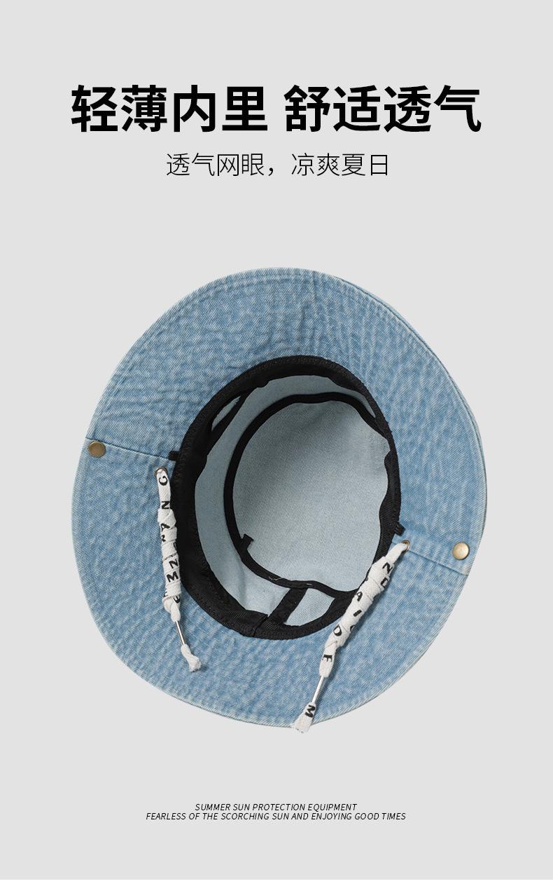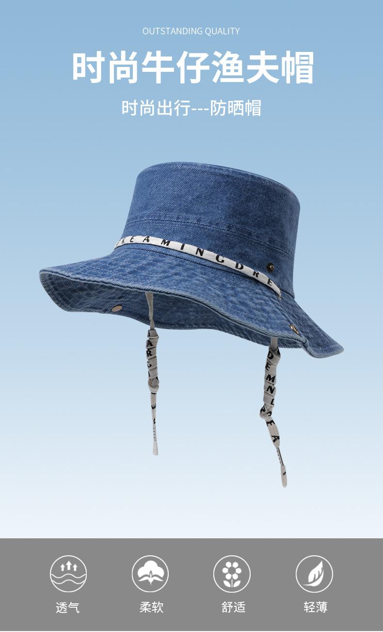 Versión coreana del sombrero de pescador de mezclilla para hombres y mujeres, primavera y verano, ala ancha fina, visera facial japonesa, protector solar, sombrero de mezclilla al por mayor