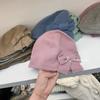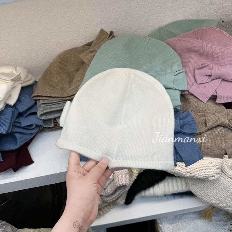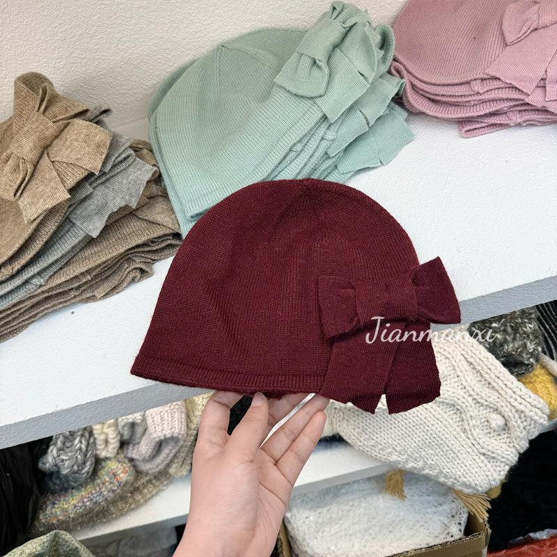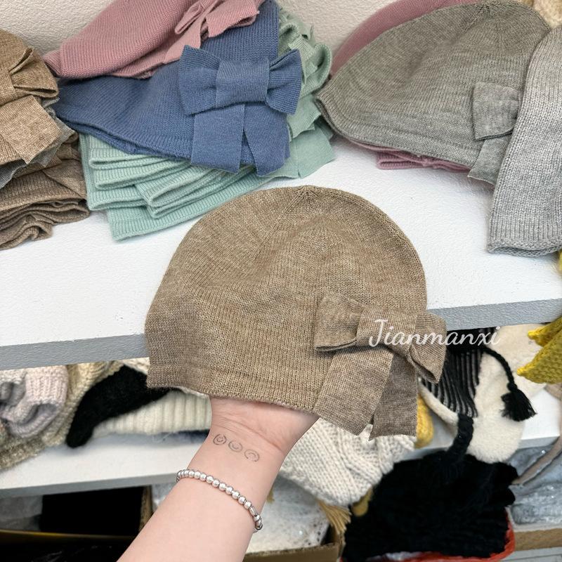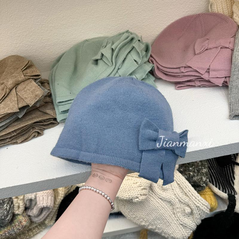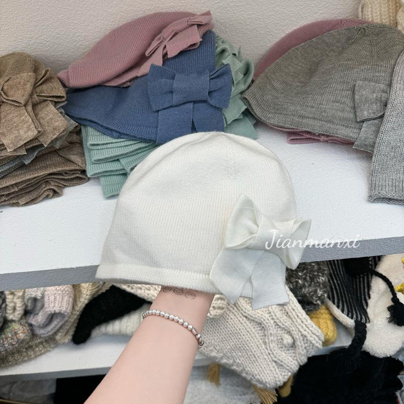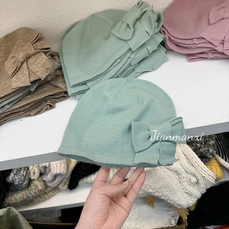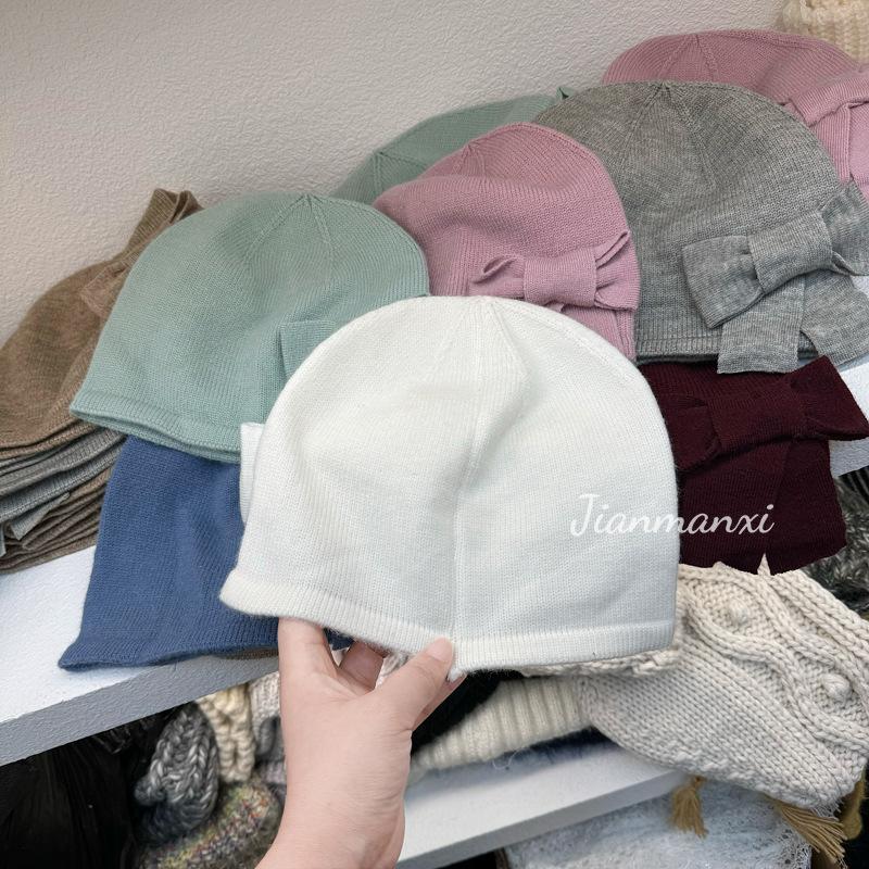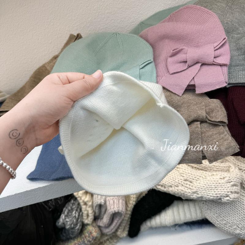 Gorro de punto de color sólido con lazo y flores hecho a mano para mujer, pequeño, fresco, decorativo, para otoño e invierno, para estudiantes coreanos, cálido, al por mayor
