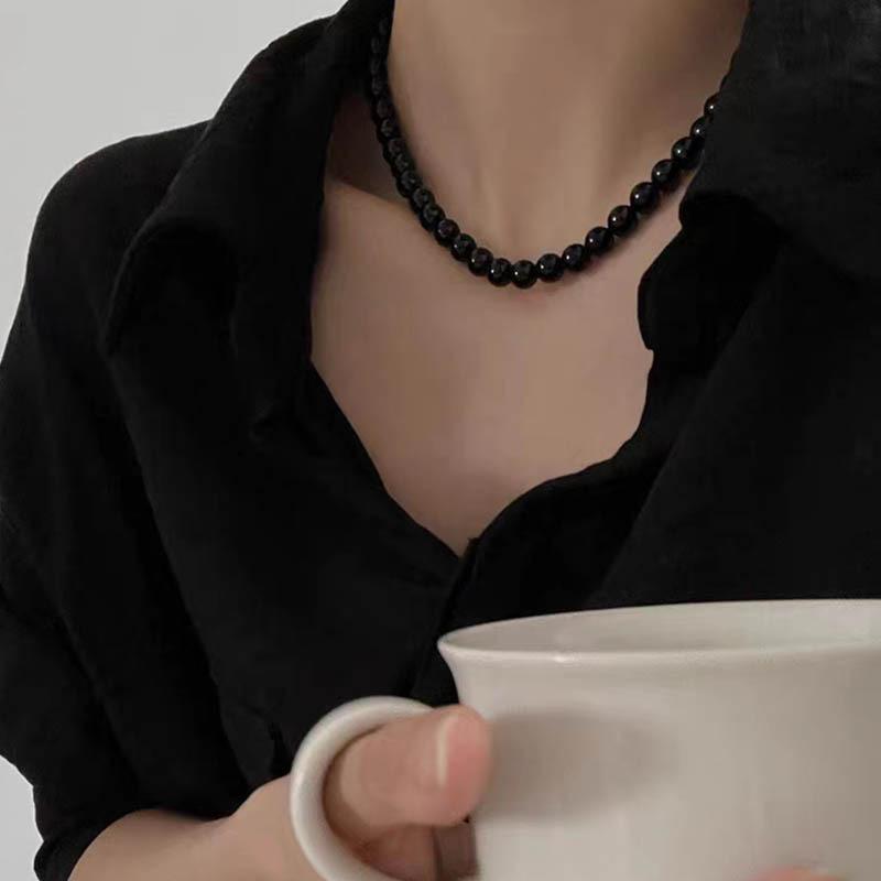 Collar de perlas negras Fever para mujer, cadena de clavícula con cuentas oscuras de alta gama, diseño de nicho de hip-hop, accesorios