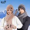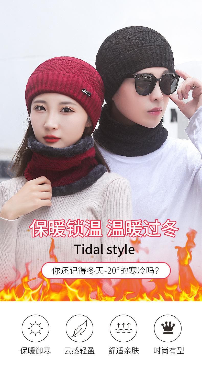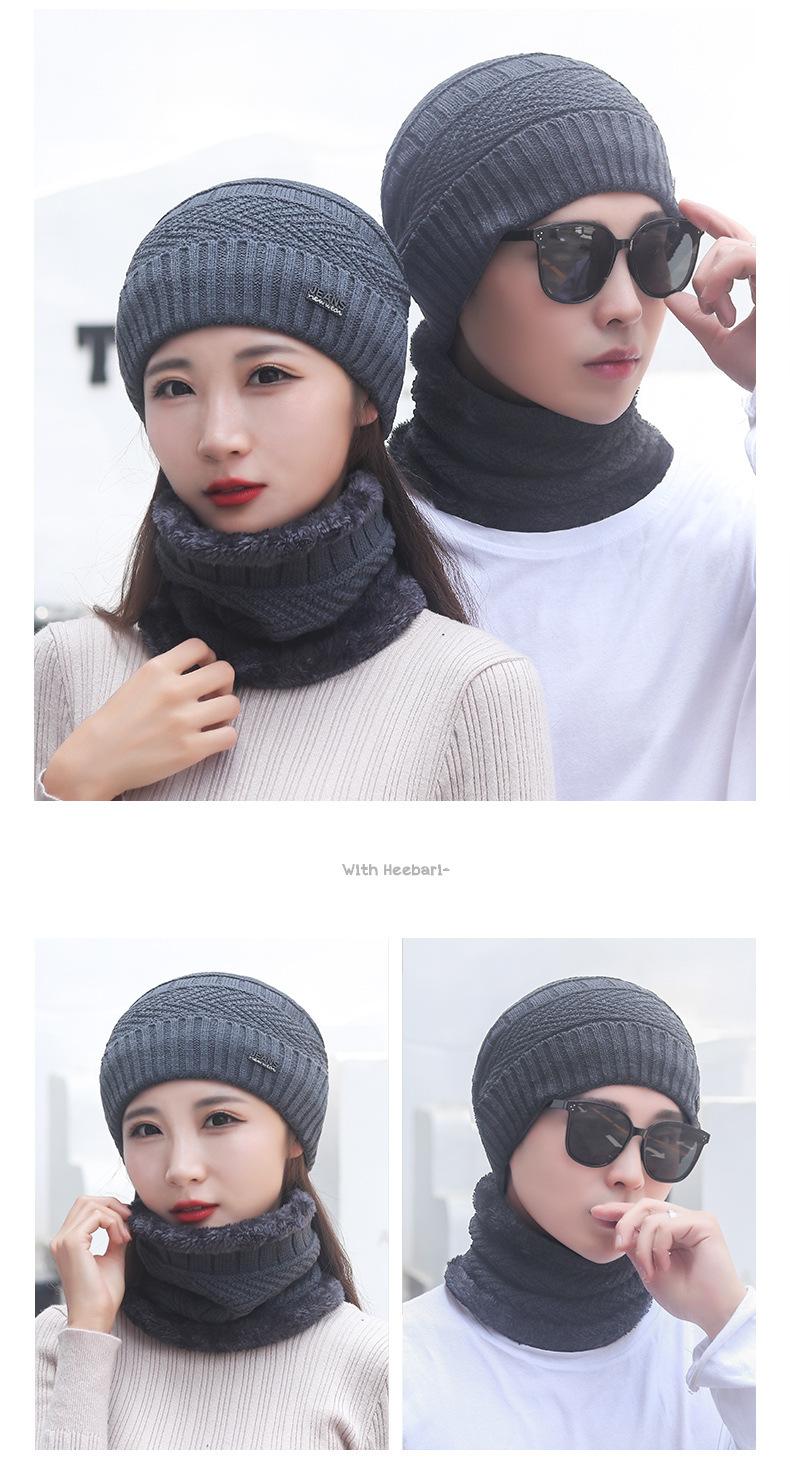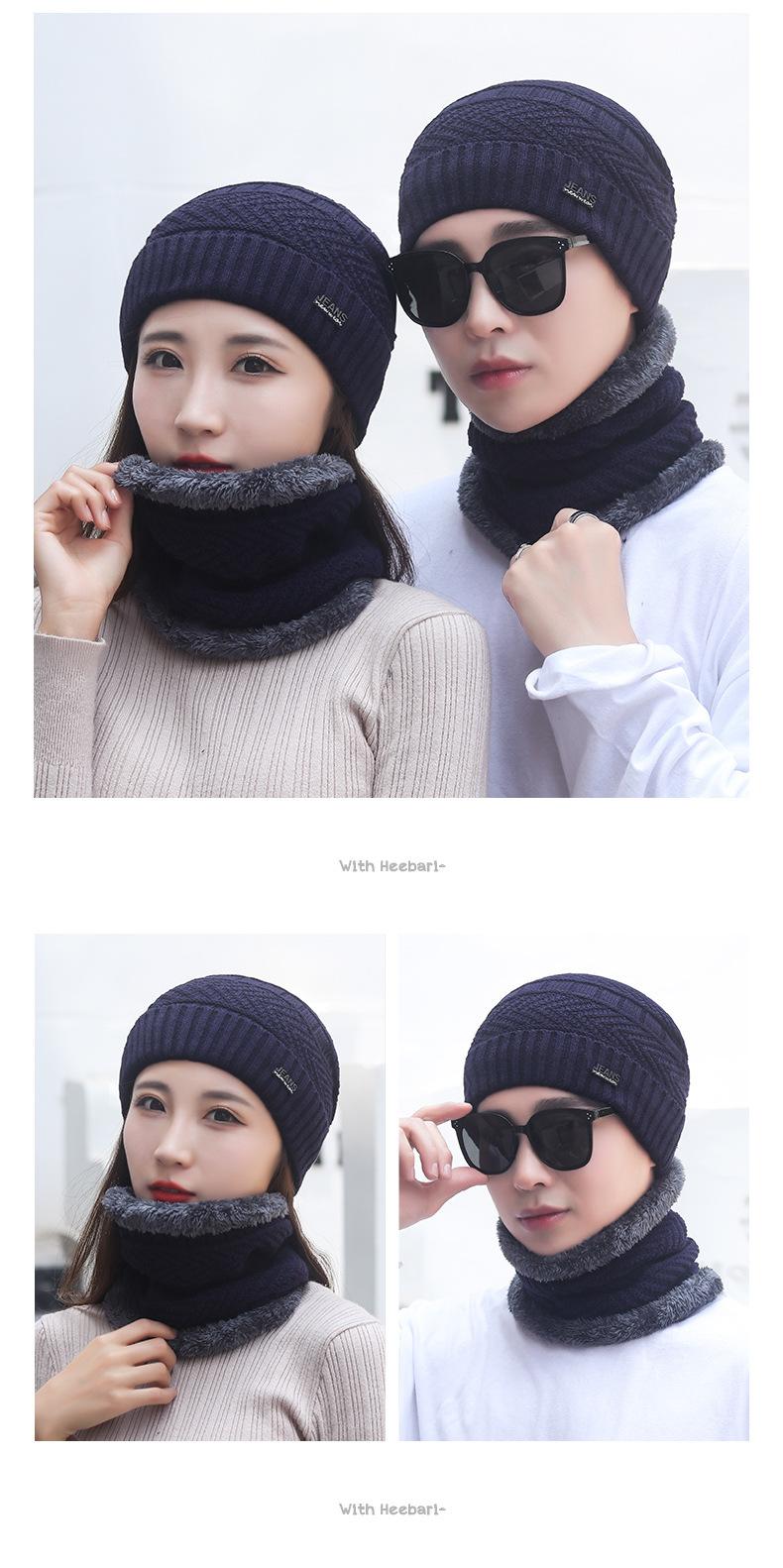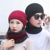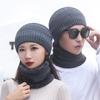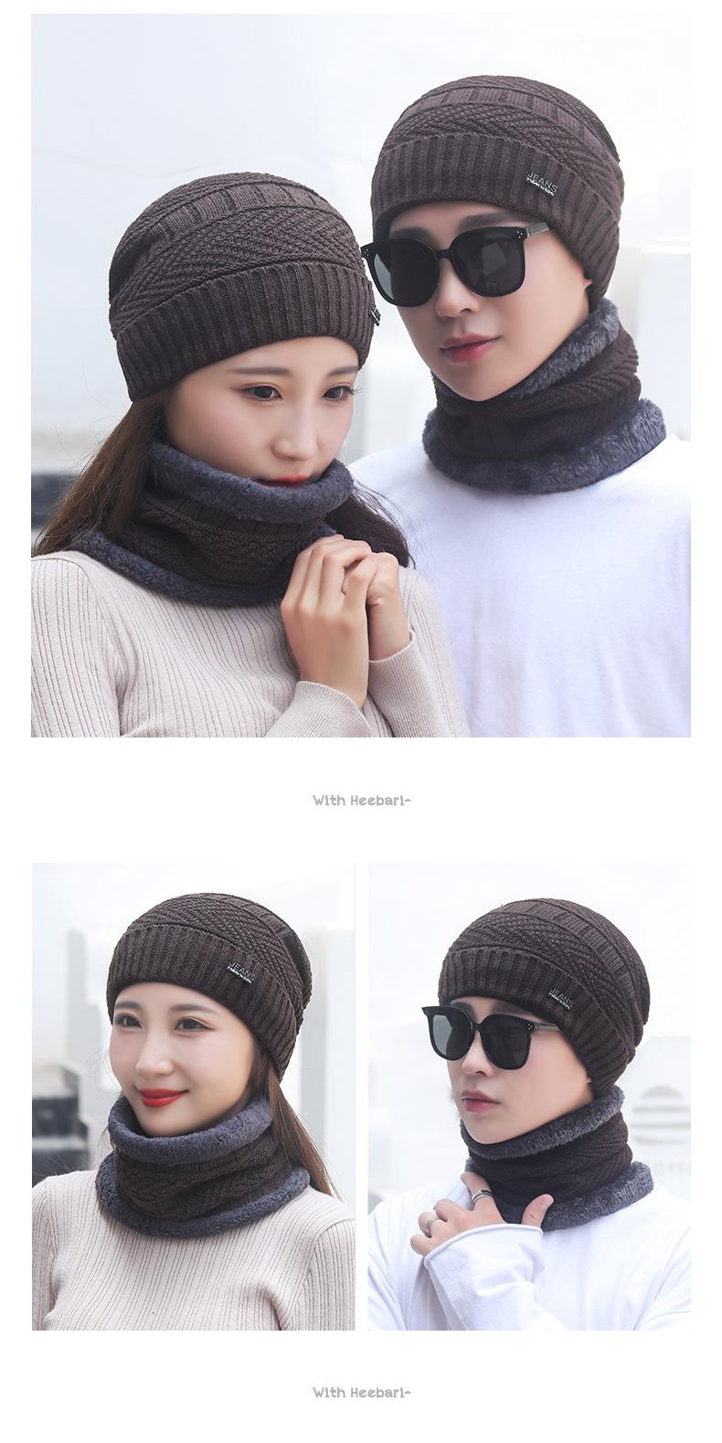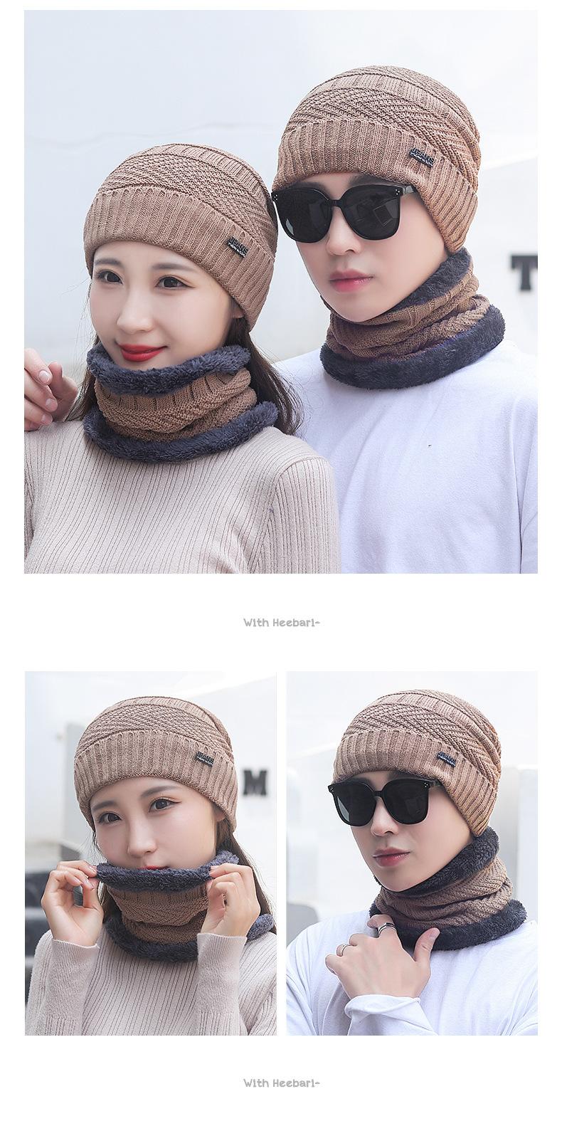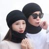 Conjunto de dos piezas de gorro y bufanda, gorro de punto grueso y cálido con forro polar para hombre y mujer, gorro de lana resistente al frío para ciclismo al aire libre.