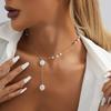 Collar de cuentas de luna hecho a mano, simple y versátil, con colgante de concha natural, personalidad popular transfronteriza de moda europea y americana para mujer