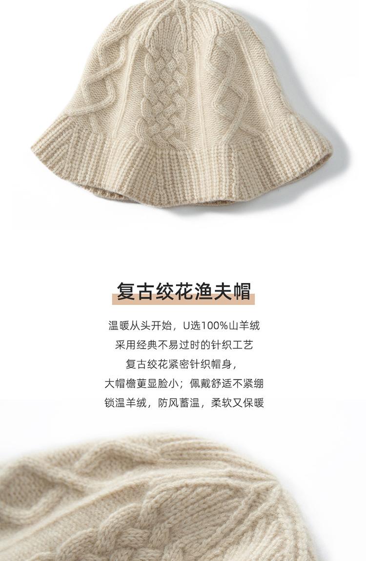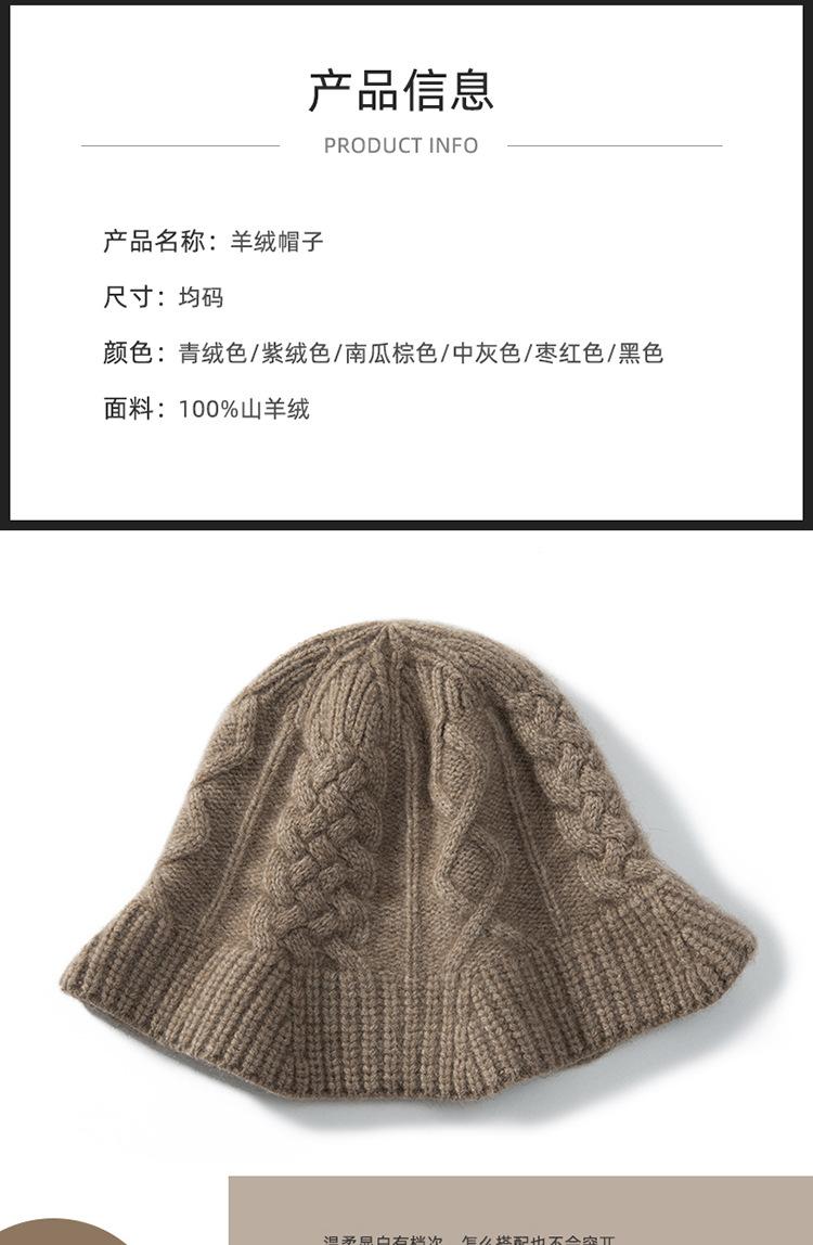Otoño e invierno 2023 nuevo sombrero de cachemira para mujer, grueso, combinable, cálido, informal, retorcido, sombrero de pescador