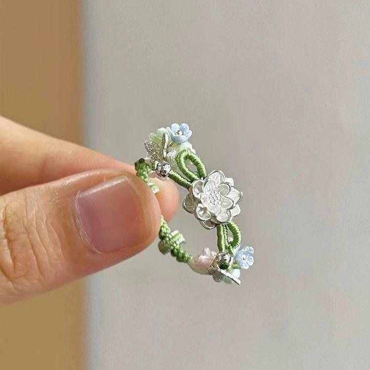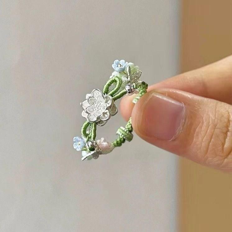 Nuevo Anillo Pequeño de Loto Retro Chino 2024 Nuevo Tejido a Mano Novedad Nicho Personalidad Anillo Simple para Mujer