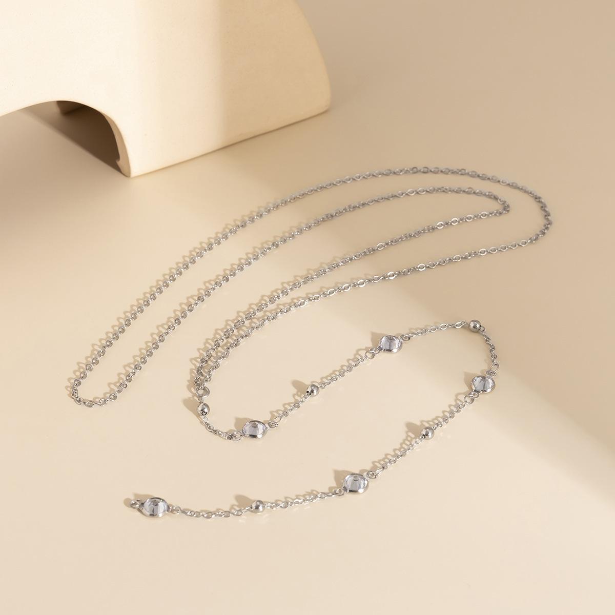 Collar elegante de cadena de clavícula de metal con perlas de imitación, estilo transfronterizo europeo y americano, con diamantes de imitación y ojo largo para mujer.