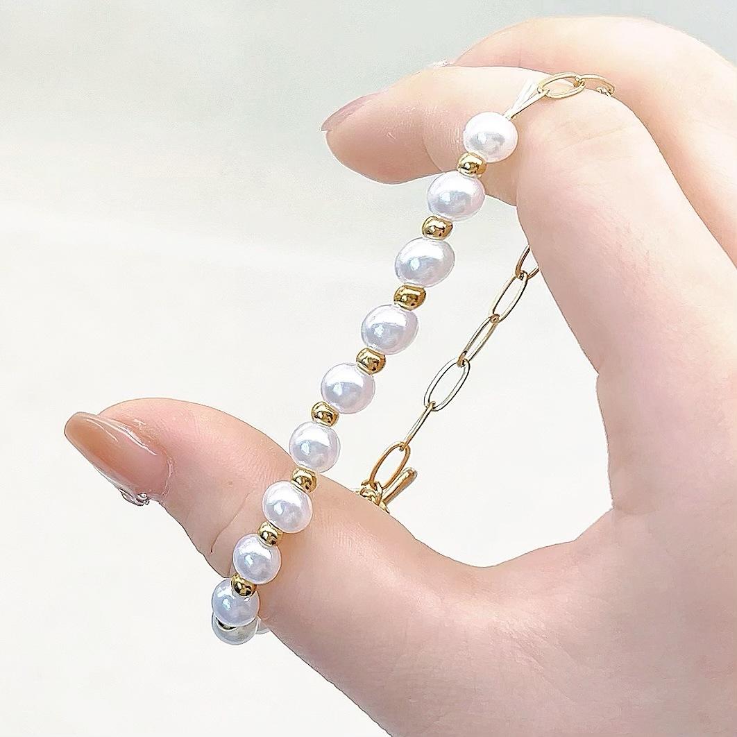 Pulsera de Cadena de Perlas Románticas Francesas Sensación de Alta Gama Nicho Exquisita Pulsera Diaria para Combinar con Todo Delgada Pulsera de Cuentas para Mujer