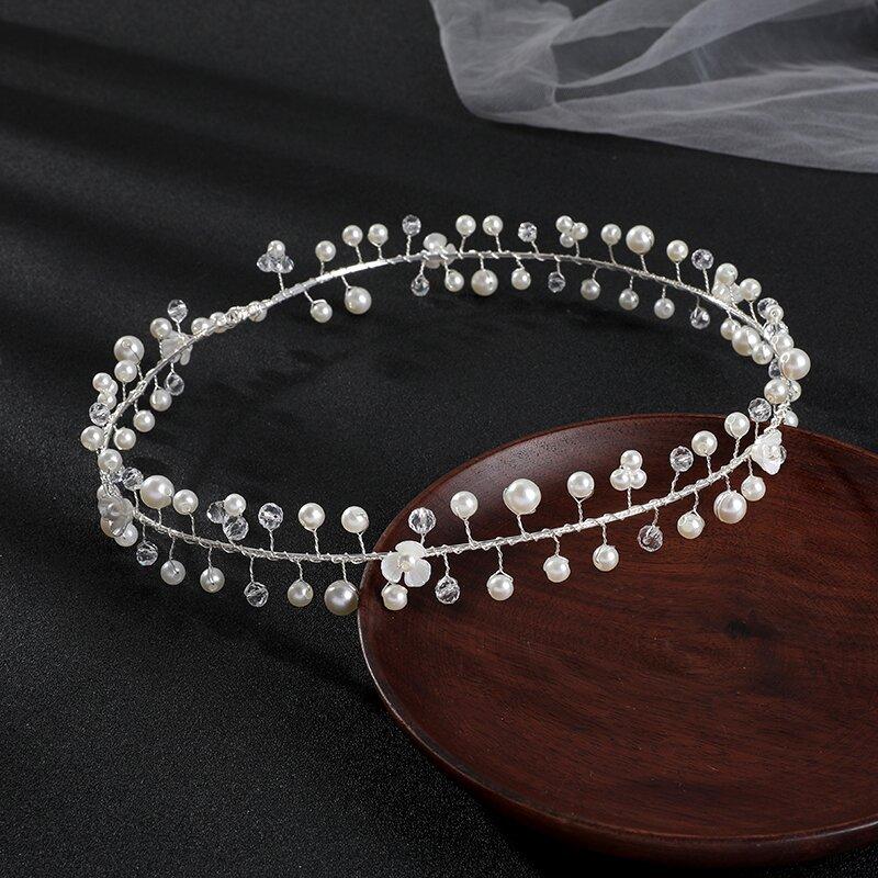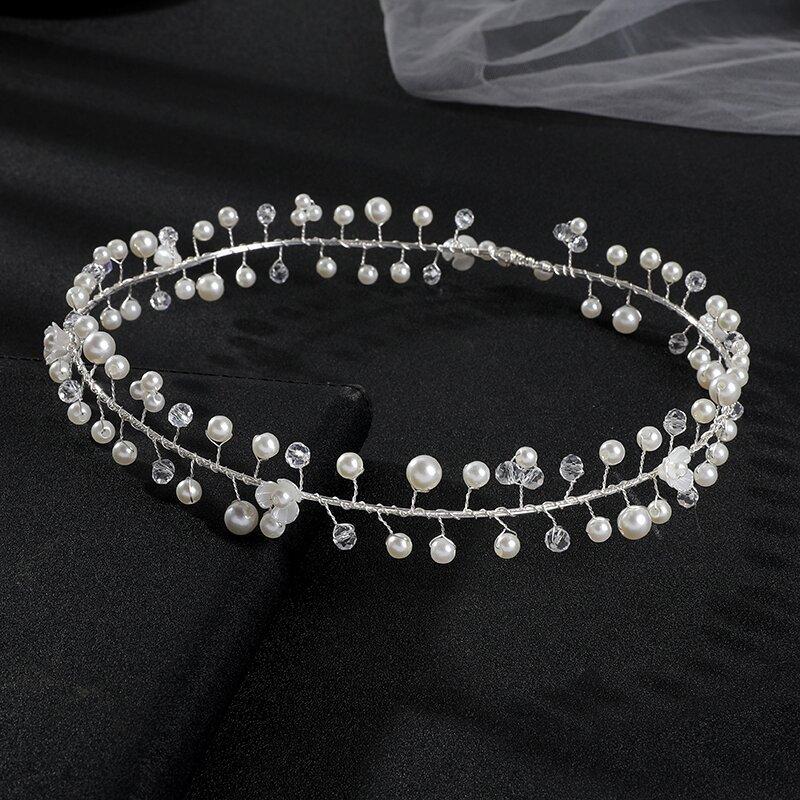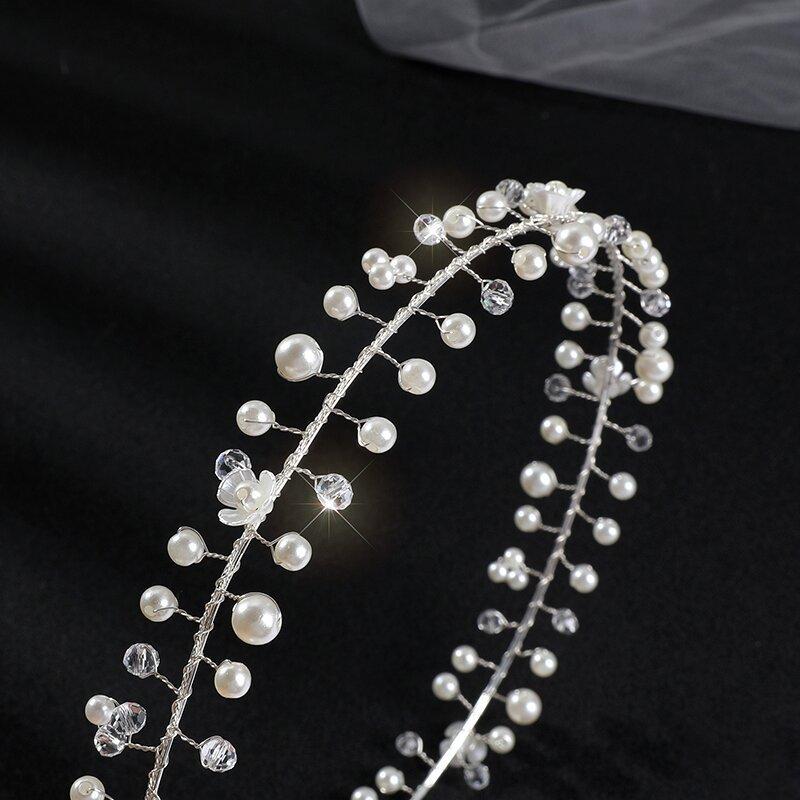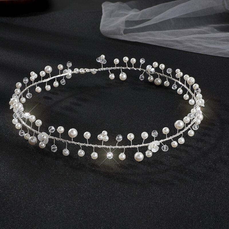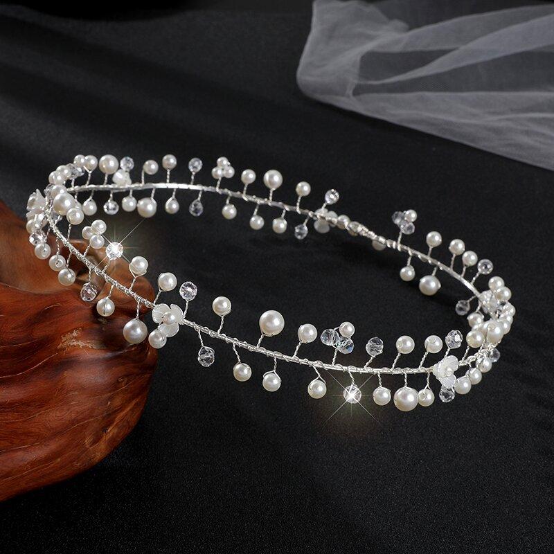 Tocado Transfronterizo Europeo y Americano para Novia Diadema de Cristal Europea y Americana Perla Blanca Gotas de Agua Accesorios de Boda