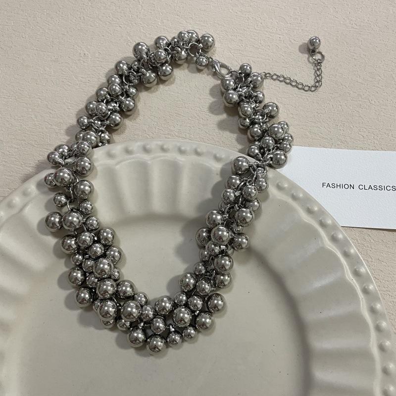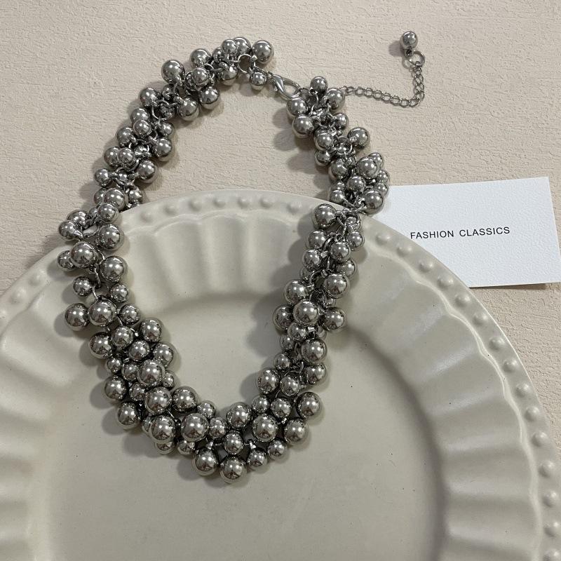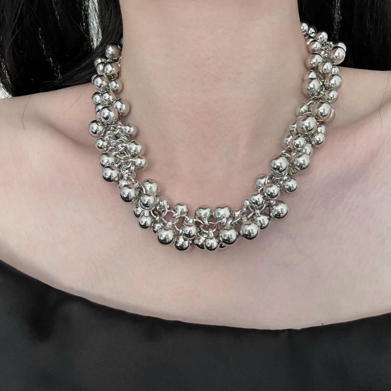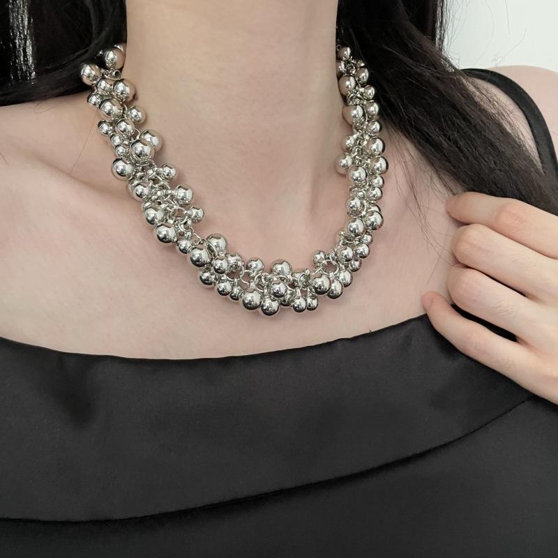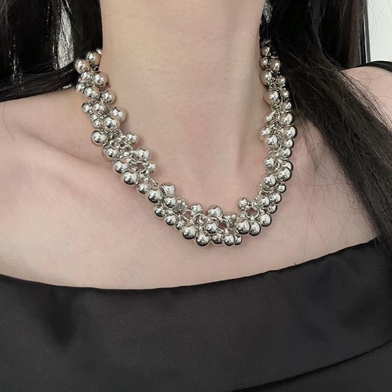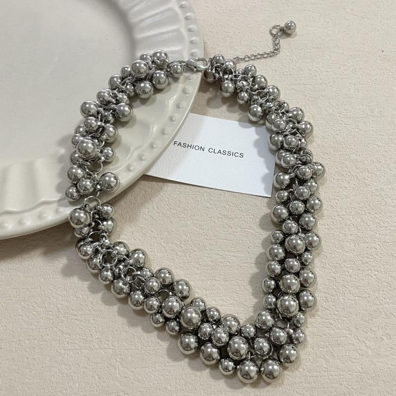 Collar con cadena de clavícula de bola de metal exquisita de temperamento europeo y americano con nicho de viento frío y sentido exagerado