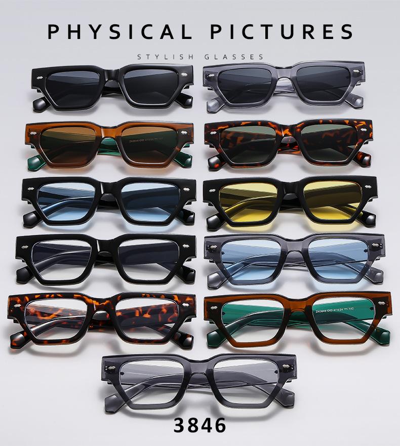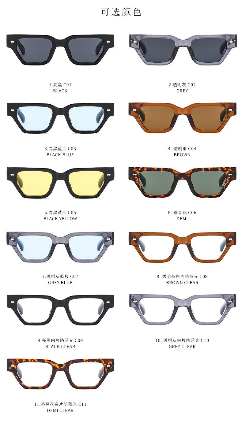 Lentes de Sol de PC de Montura Gruesa Europeos y Americanos, Lentes de Exportación de Moda de Montura Cuadrada, Gafas de Sol Transfronterizas con Decoración de Remaches Personalizada