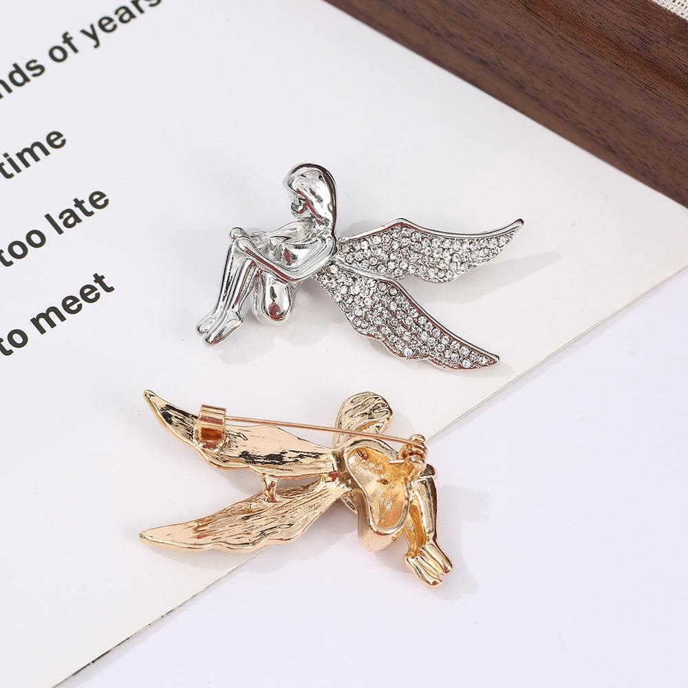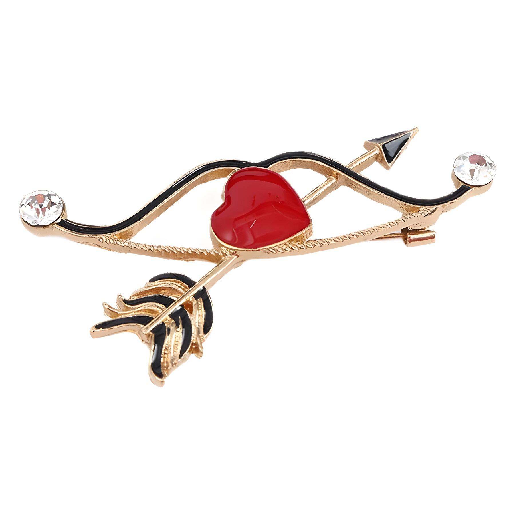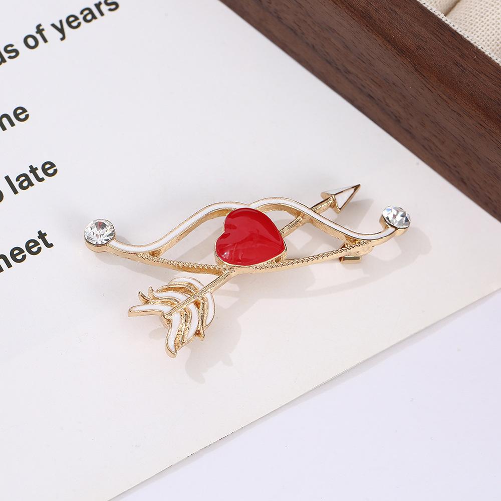 Broche de aleación creativa con forma de gota de aceite y una flecha que atraviesa el corazón, broche de ángel con diamantes de imitación, simple y moderno, antiluz
