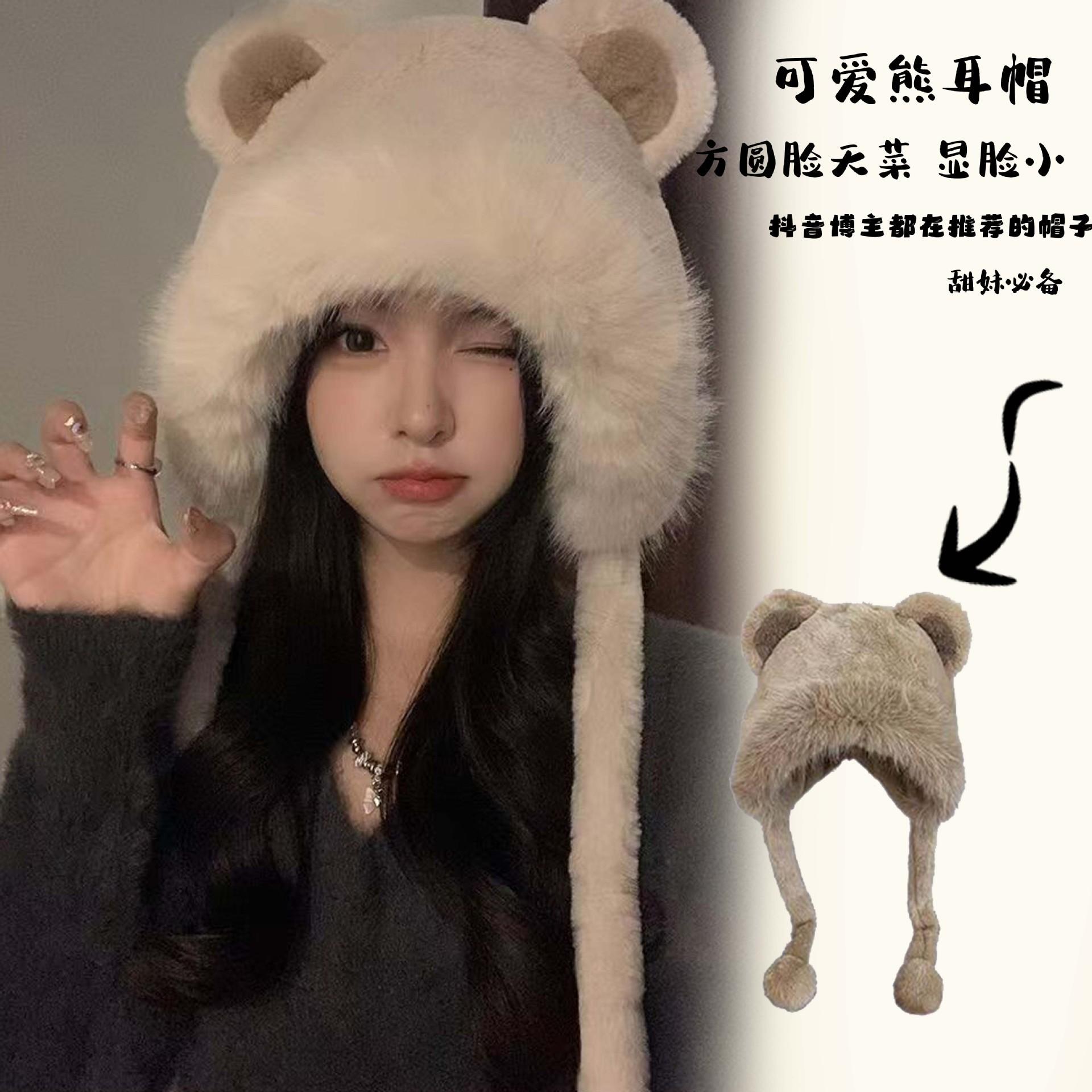 Lindo Sombrero Esponjoso de Oso para Mujer Otoño e Invierno para Montar Cálido Protección para las Orejas Sombrero Invierno Engrosado Cubreorejas Sombrero Lei Feng Combinable