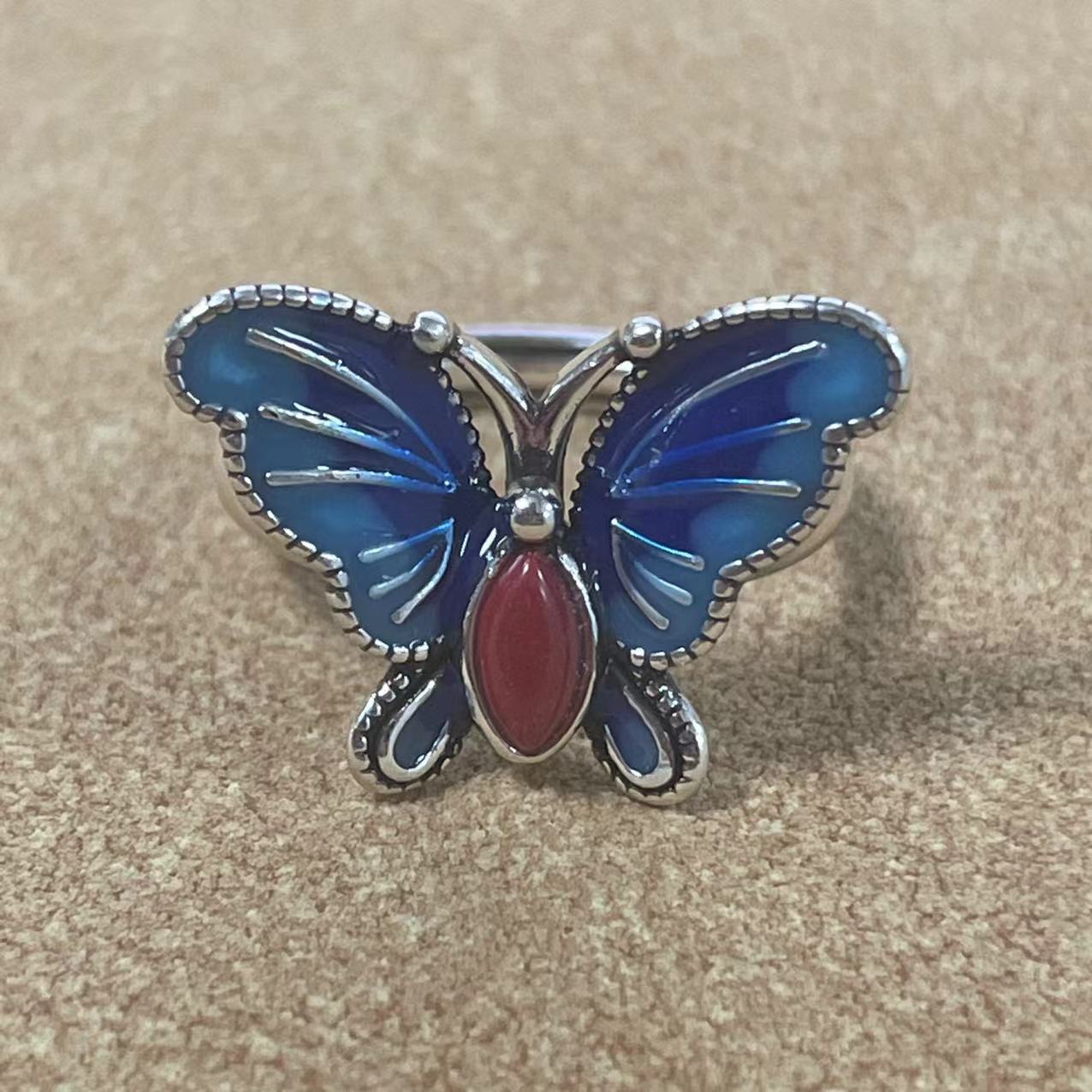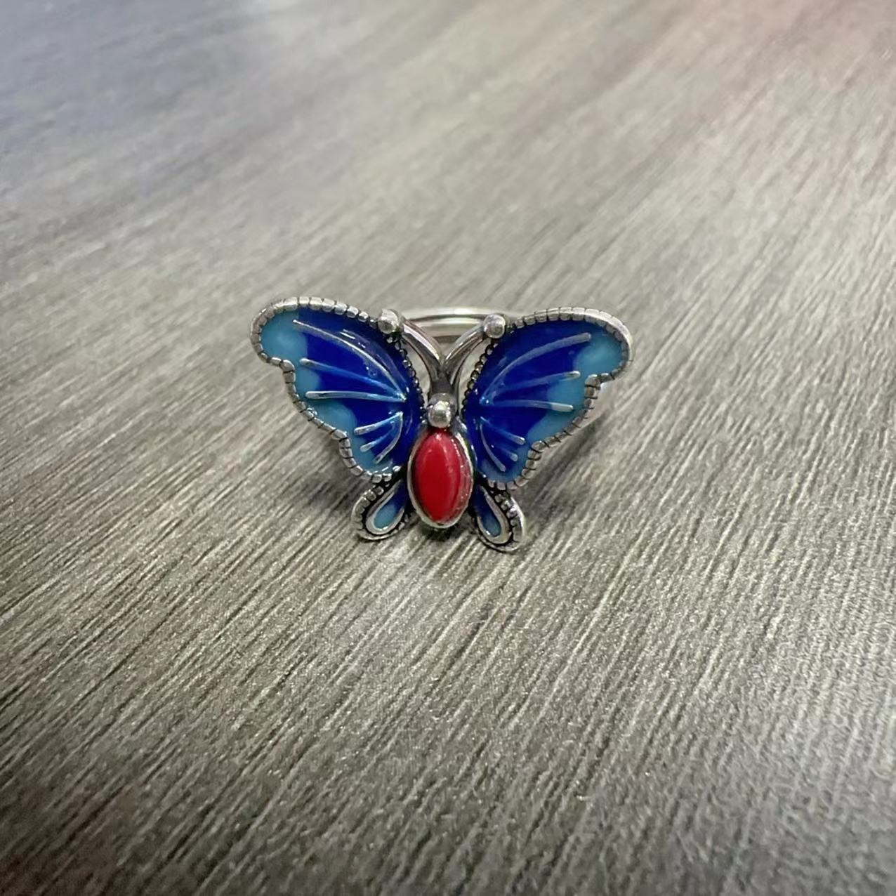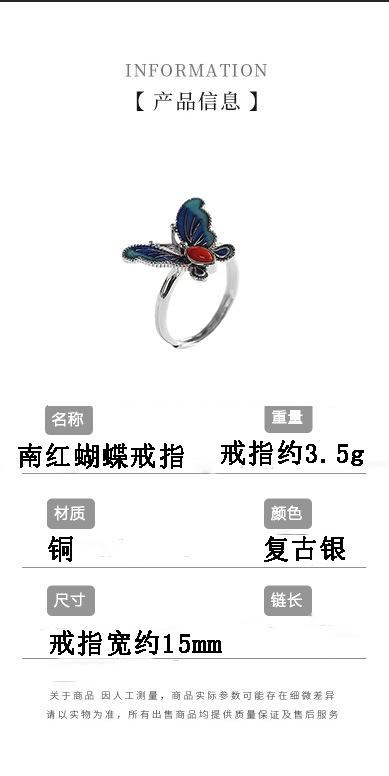 Anillo de mariposa con esmalte vintage, gota de pegamento, aceite artesanal, moda simple, jaspe, boca viva, anillo para dedo índice, joyería al por mayor