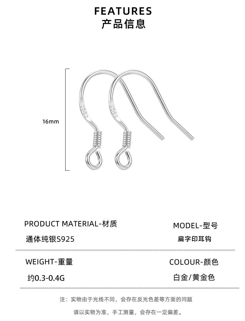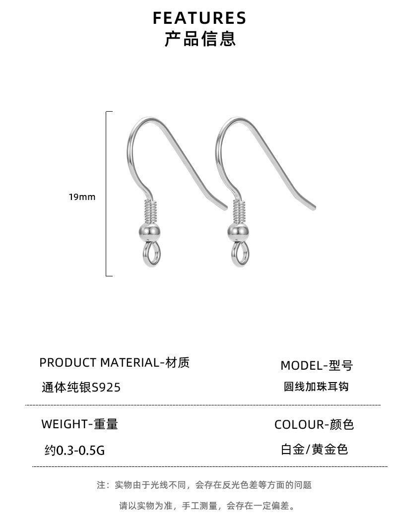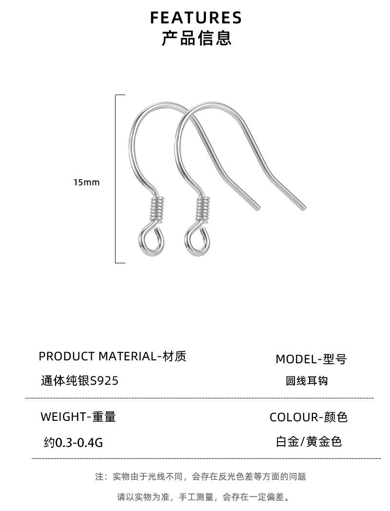 Accesorios de gancho para la oreja de plata pura 925, accesorios hechos a mano, joyería para la oreja, línea redonda, una variedad de aretes en stock, venta al por mayor