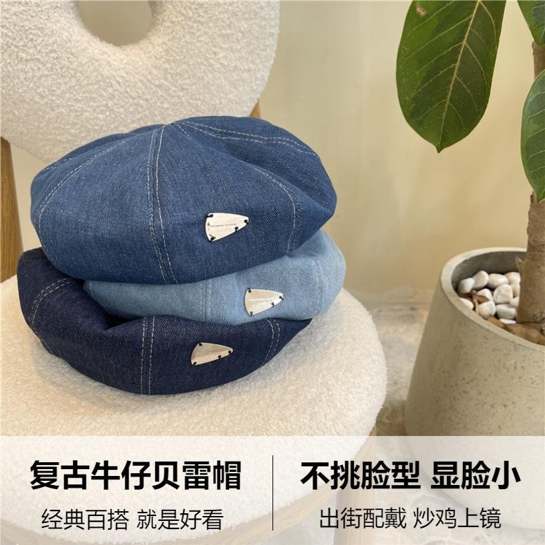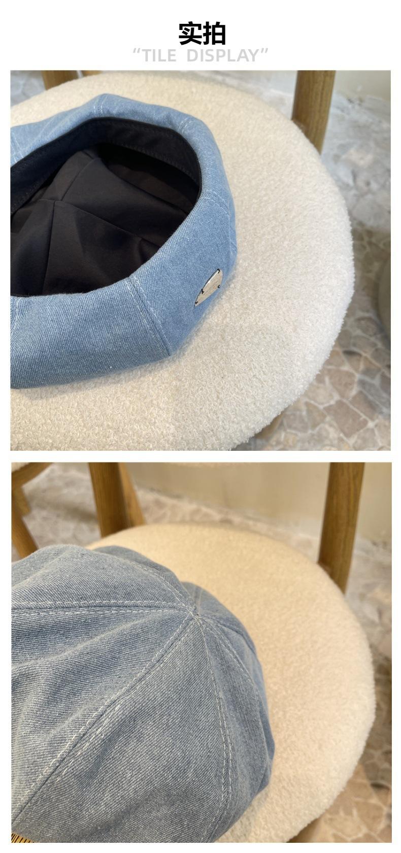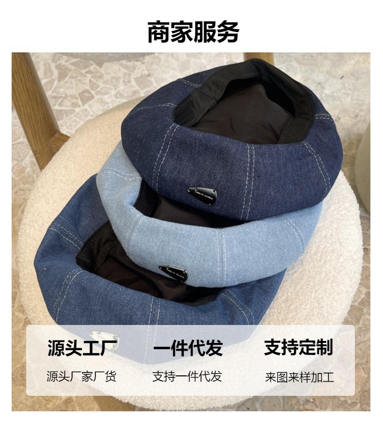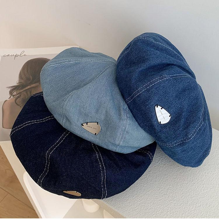 C118#Denim beret—light blue, C118#Denim beret—medium blue, C118#Cowboy beret—dark blue