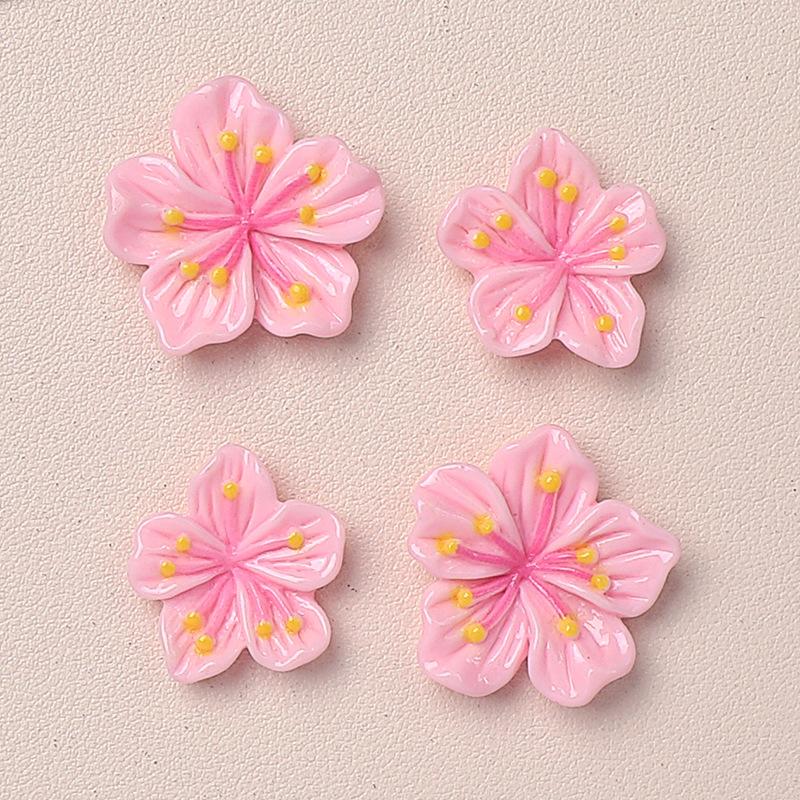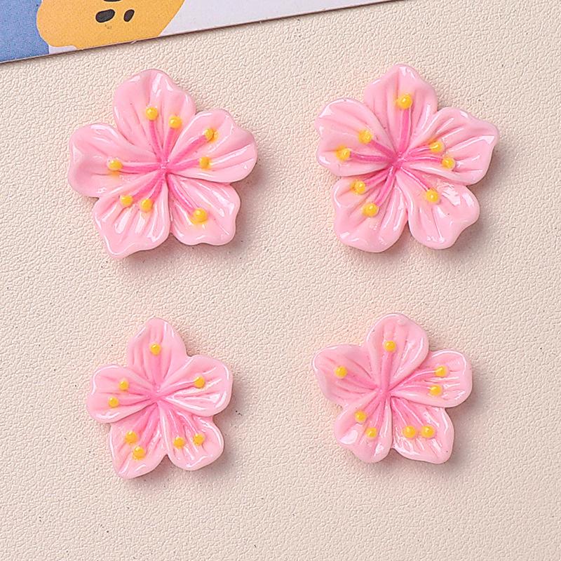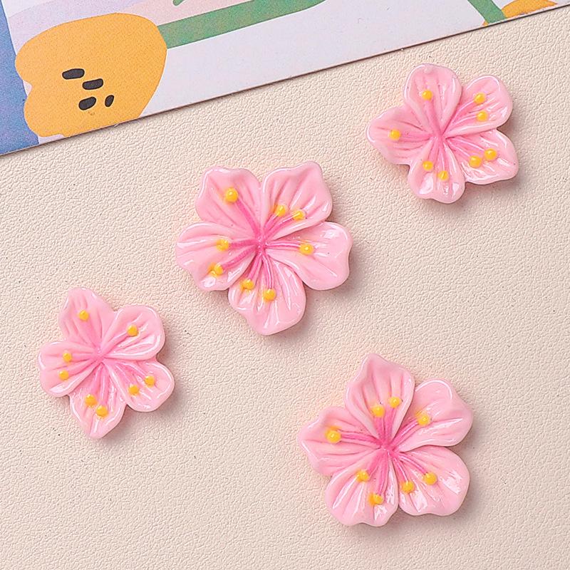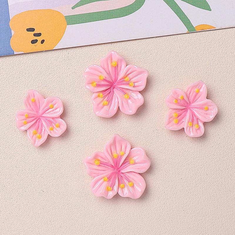 Accesorios de resina para manualidades con diseño de flor de cerezo brillante de dibujos animados, pinza para el pelo hecha a mano, funda para teléfono, taza de agua, tocado, venta al por mayor
