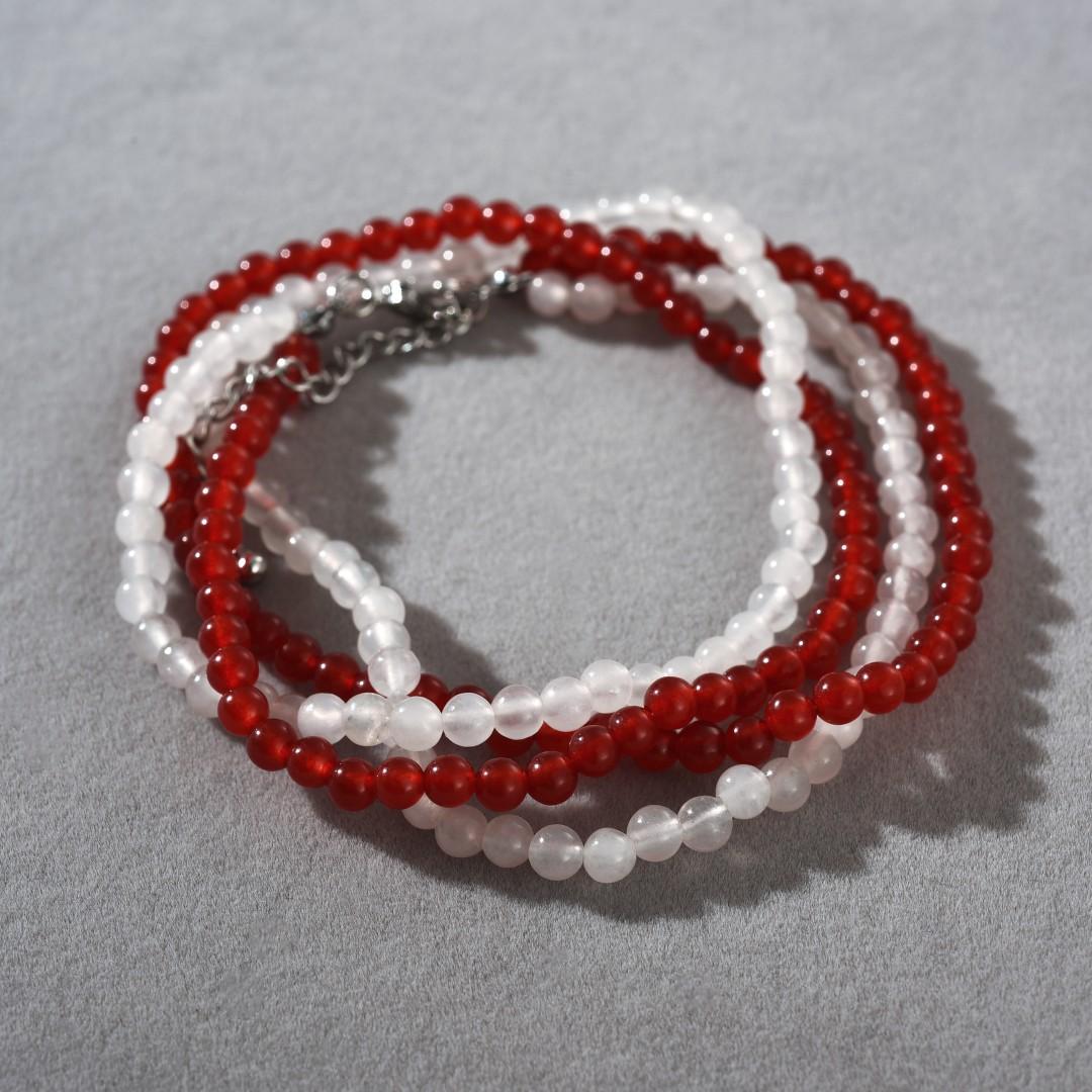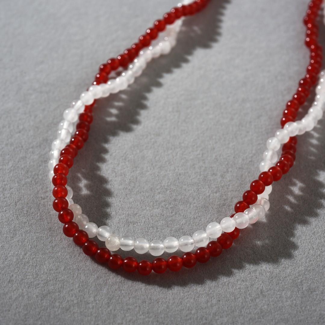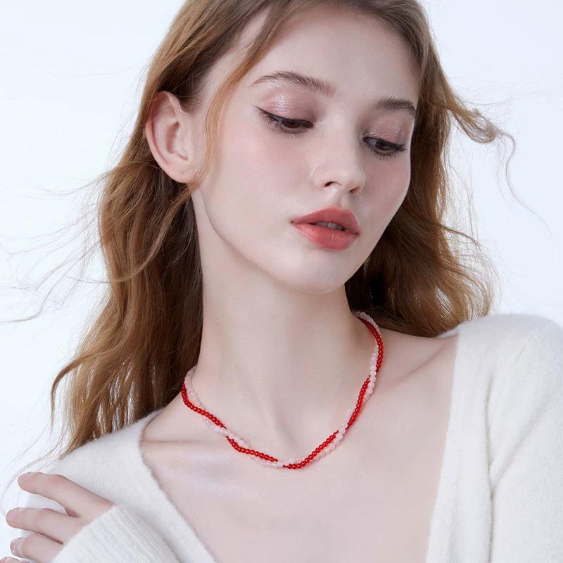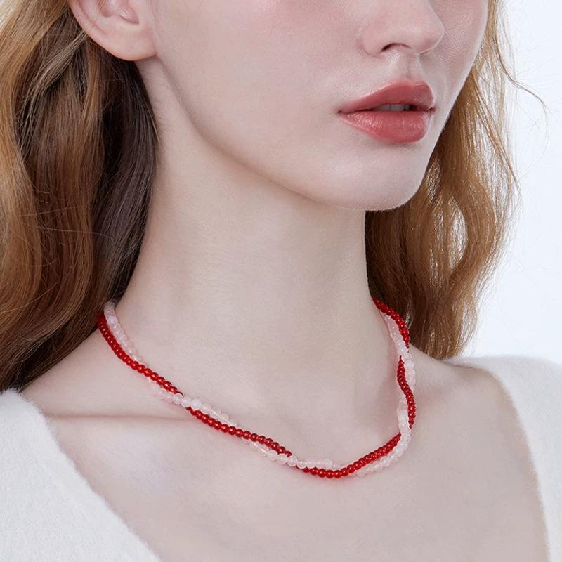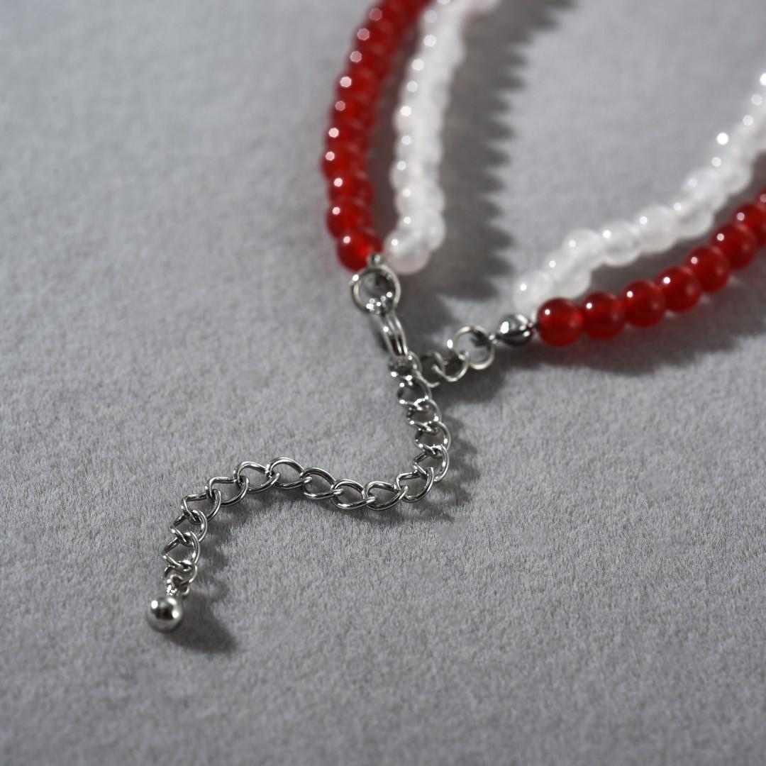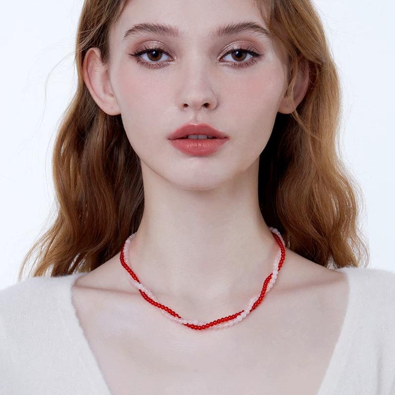 Material: Cobre bañado en platino + piedra blanca + ágata roja.Tamaño: 42 cm + cadena de extensión de 5 cm