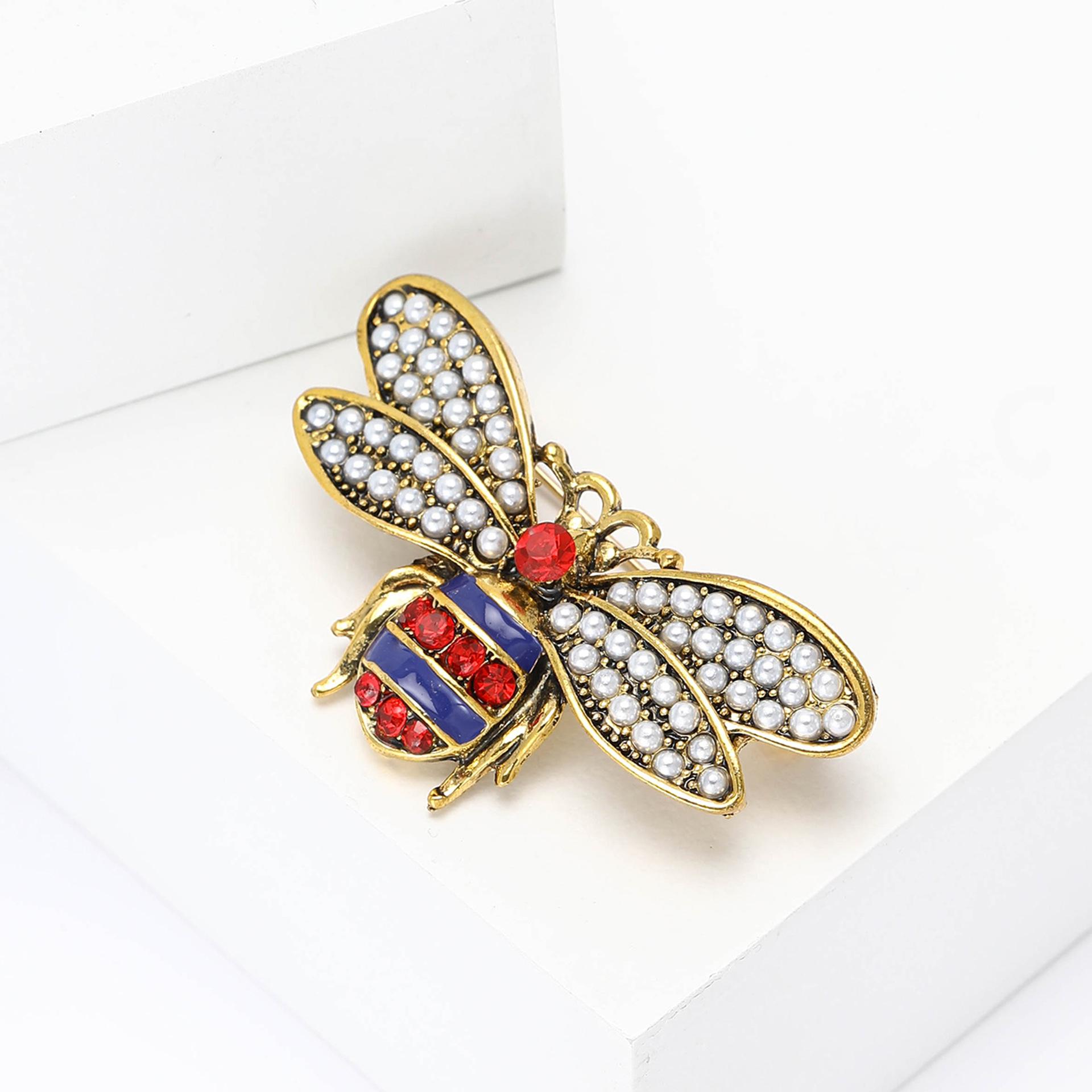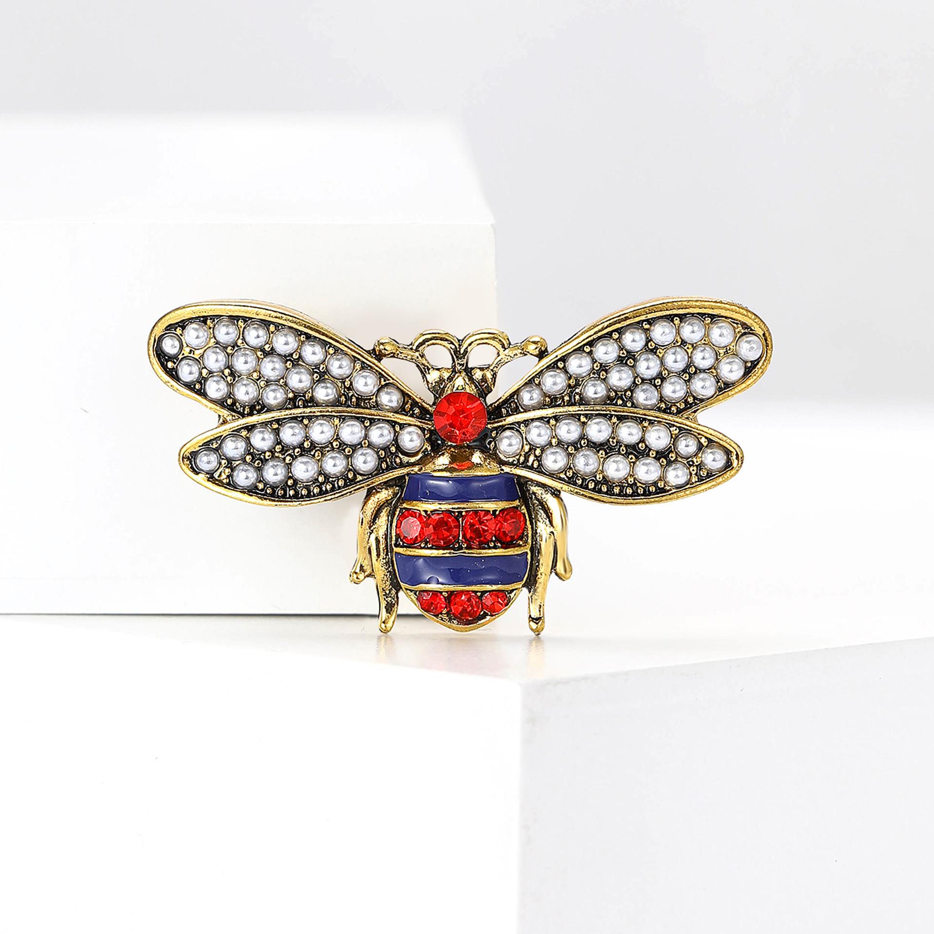 Broche de abeja con perla de aleación vintage de moda coreana, exquisito broche de ramillete para vestido de mujer de alta gama, alfiler de joyería