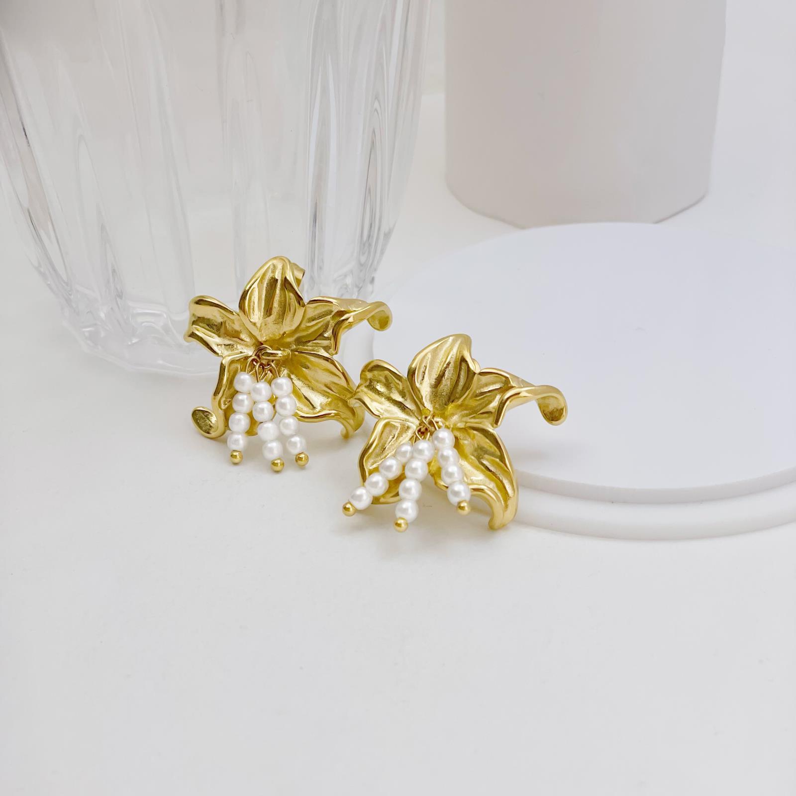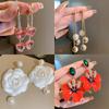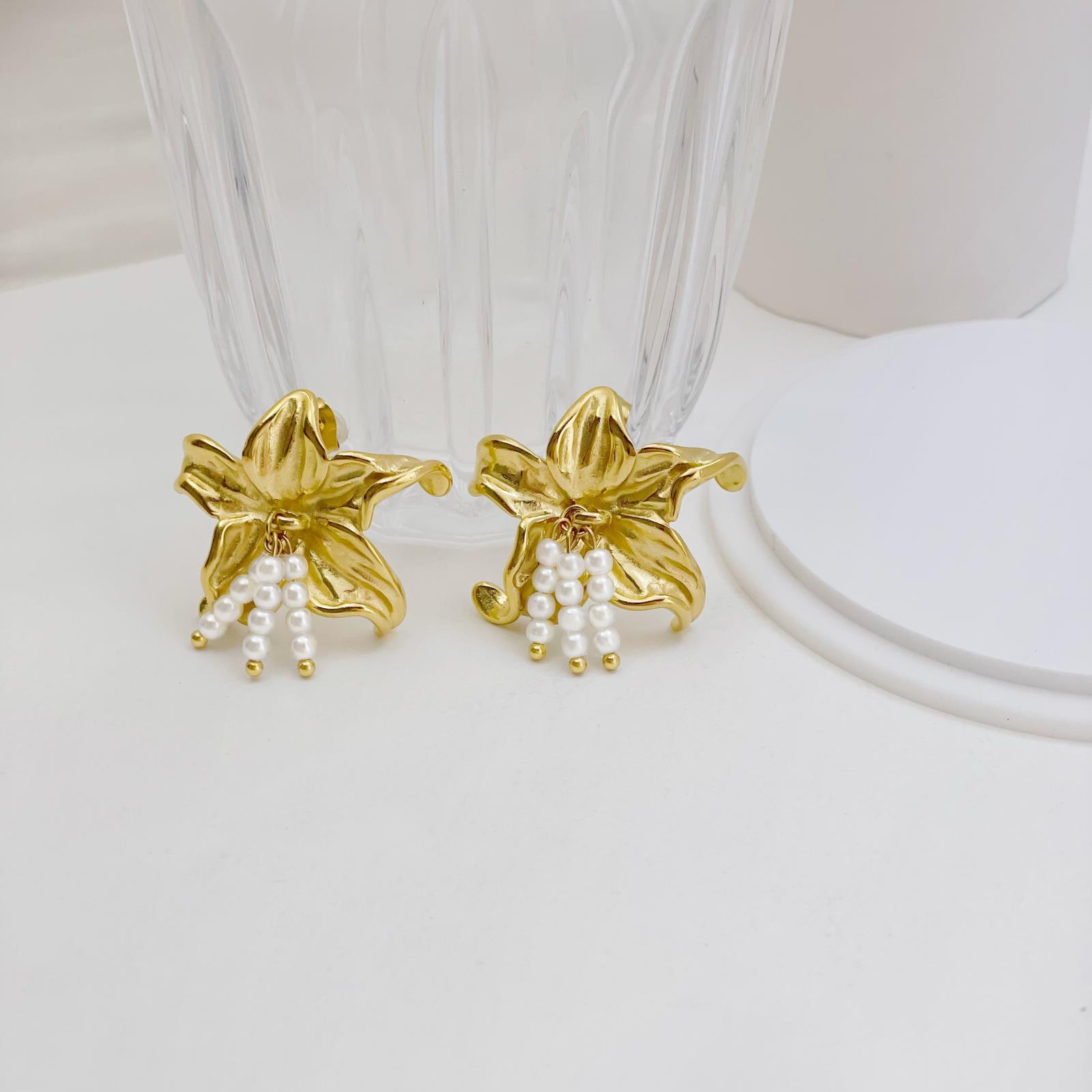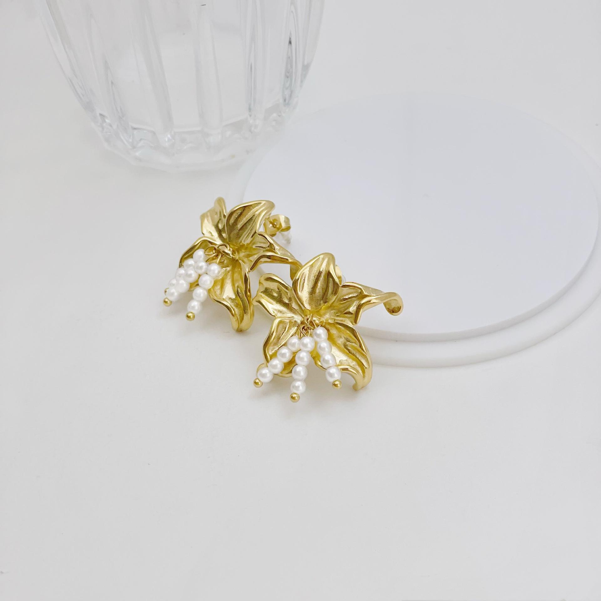 Pendientes de borlas con perlas y flores de lujo, ligeros y distintivos, de estilo europeo y americano, a la moda, estilo frío.