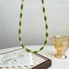 | Collar de cuentas de arroz integral de piedra natural con etiqueta de girasol de metal retro con cadena de clavícula de estilo étnico coreano |
