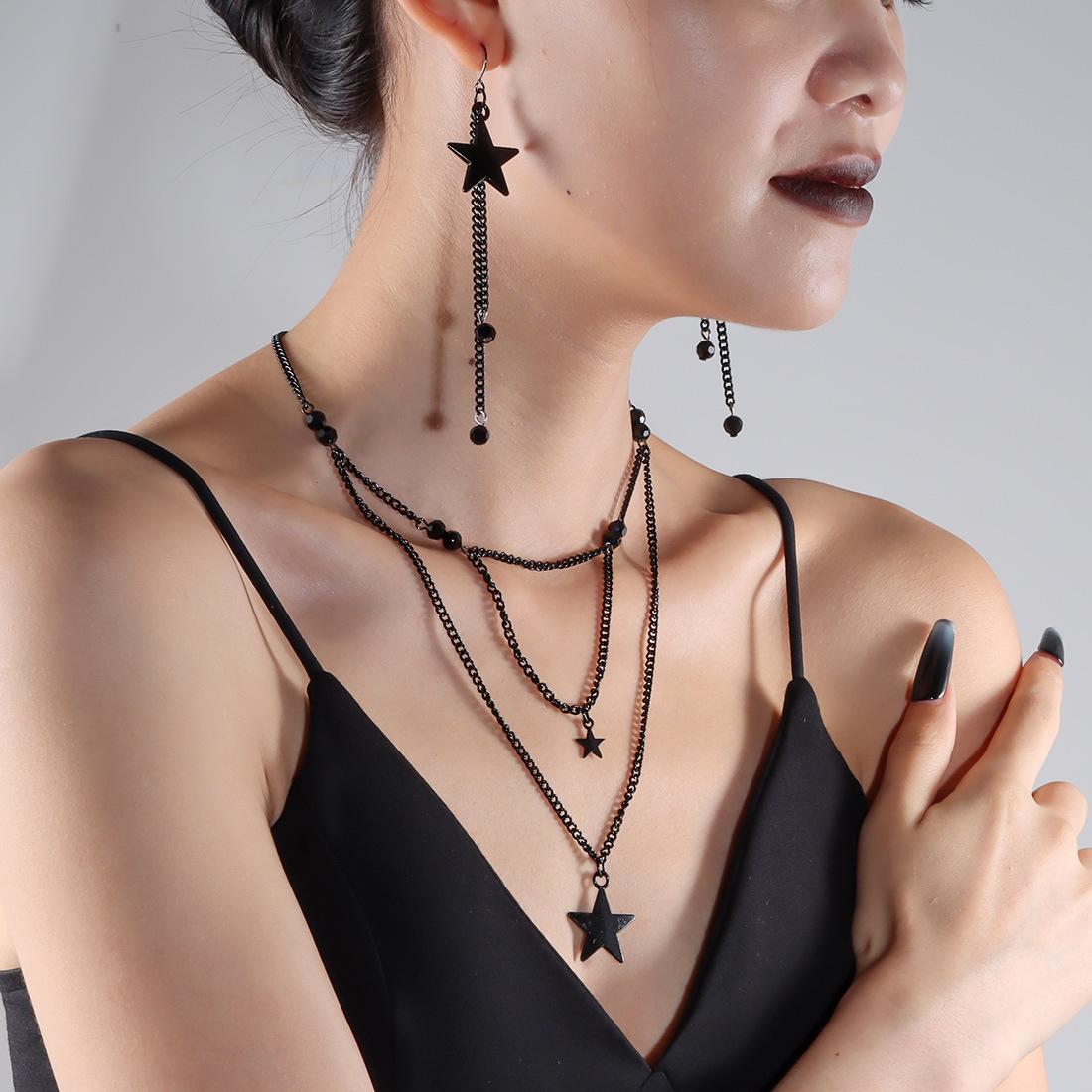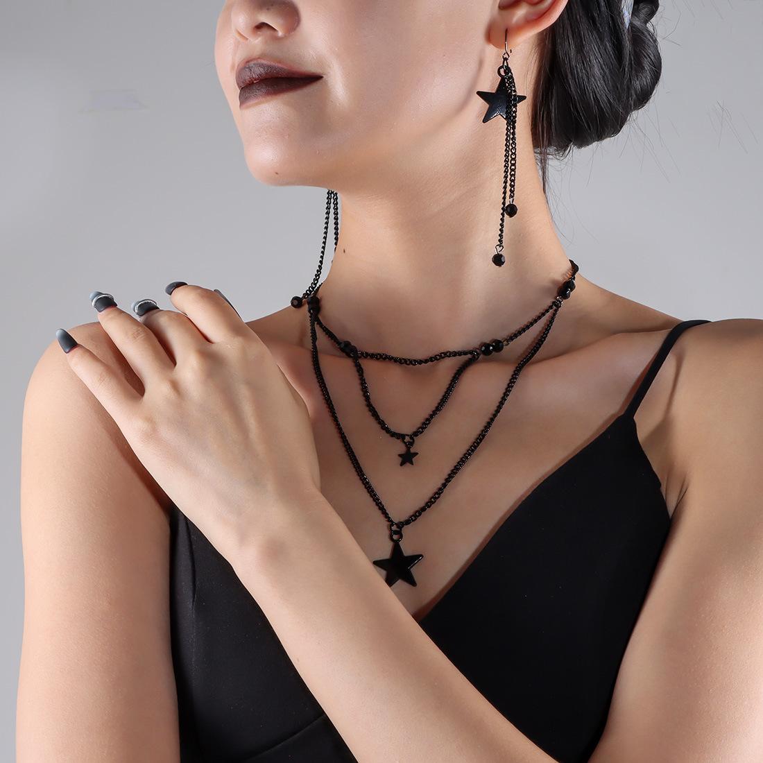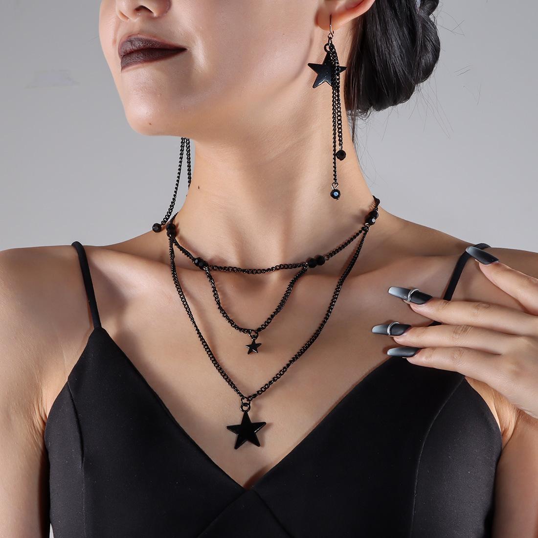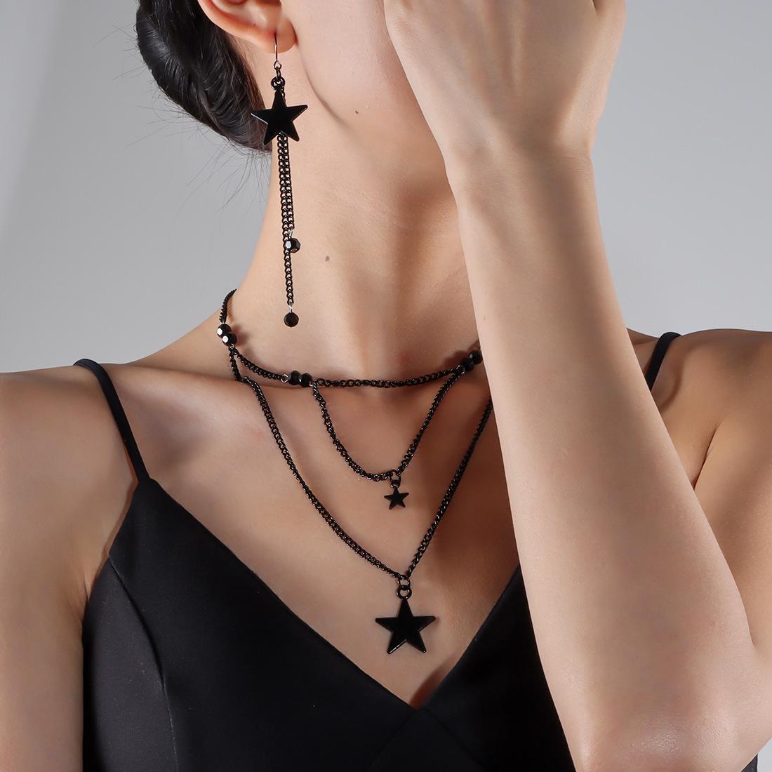 Personalidad europea y americana joyería de estrella de cinco puntas negra moda pop punk estrella collar con colgante multicapa NK25180