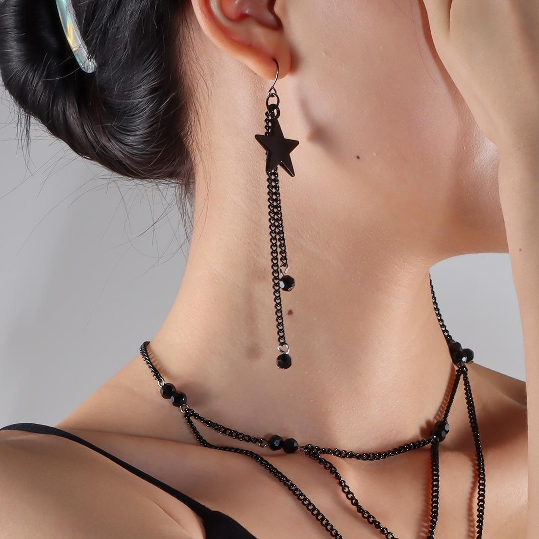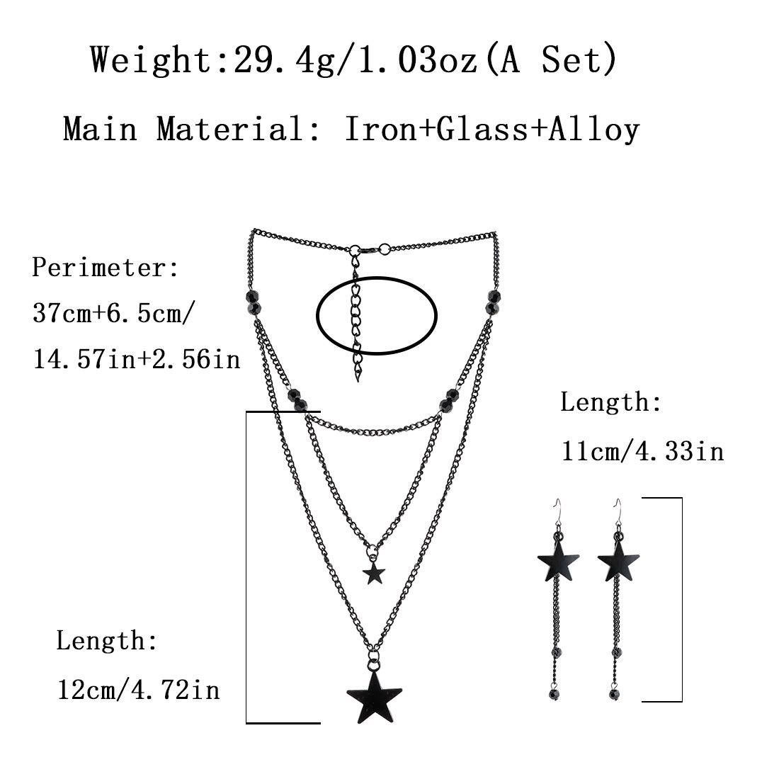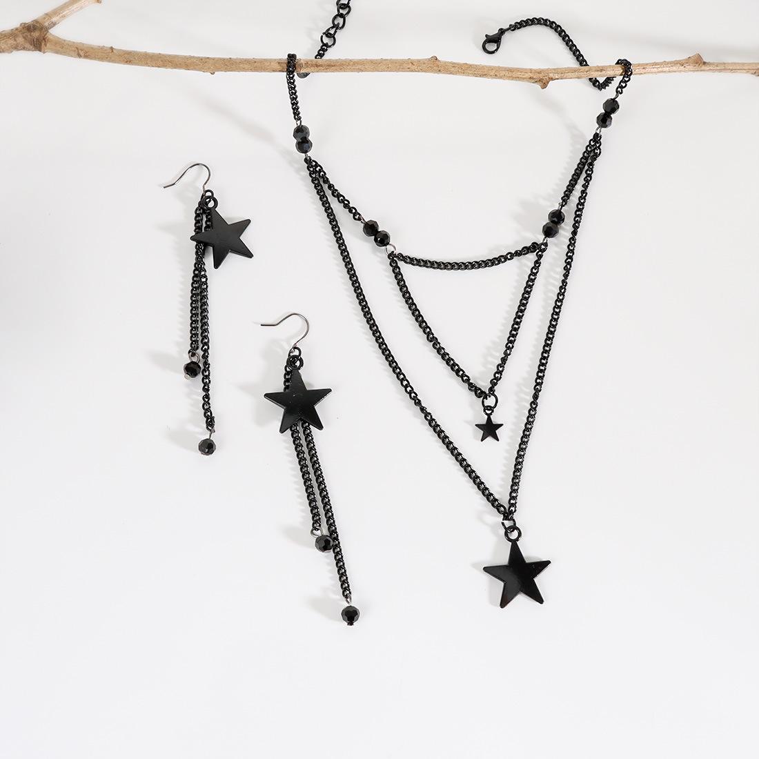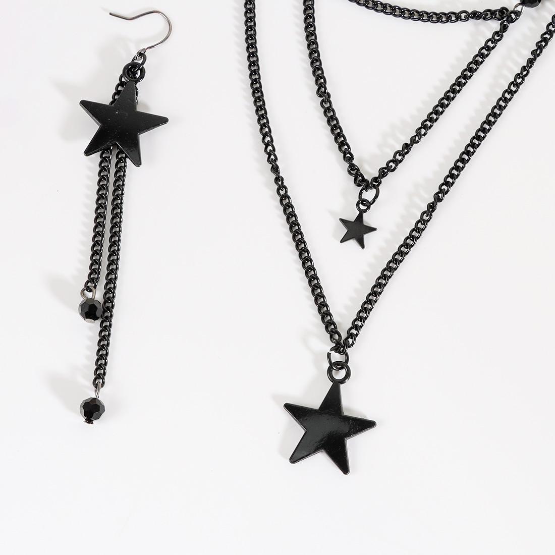Personalidad europea y americana joyería de estrella de cinco puntas negra moda pop punk estrella collar con colgante multicapa NK25180