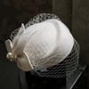 Boina Francesa Elegante Británica Retro Gasa Lana Sombrero Pequeño Vestido de Novia Blanco Tocado Nupcial para Banquete