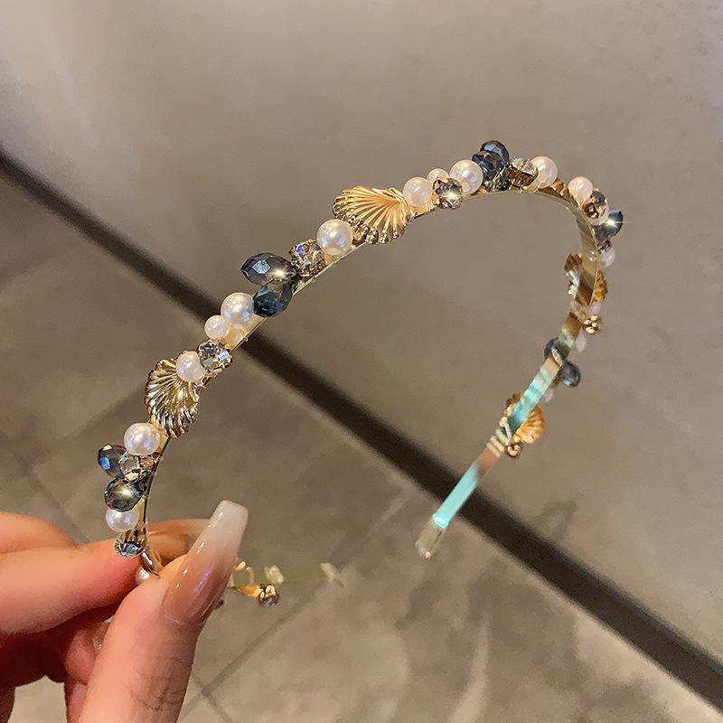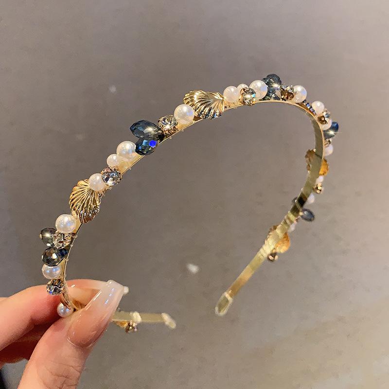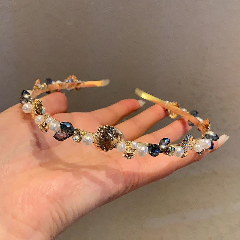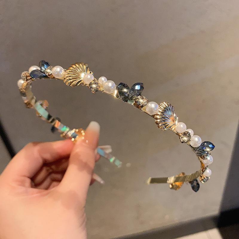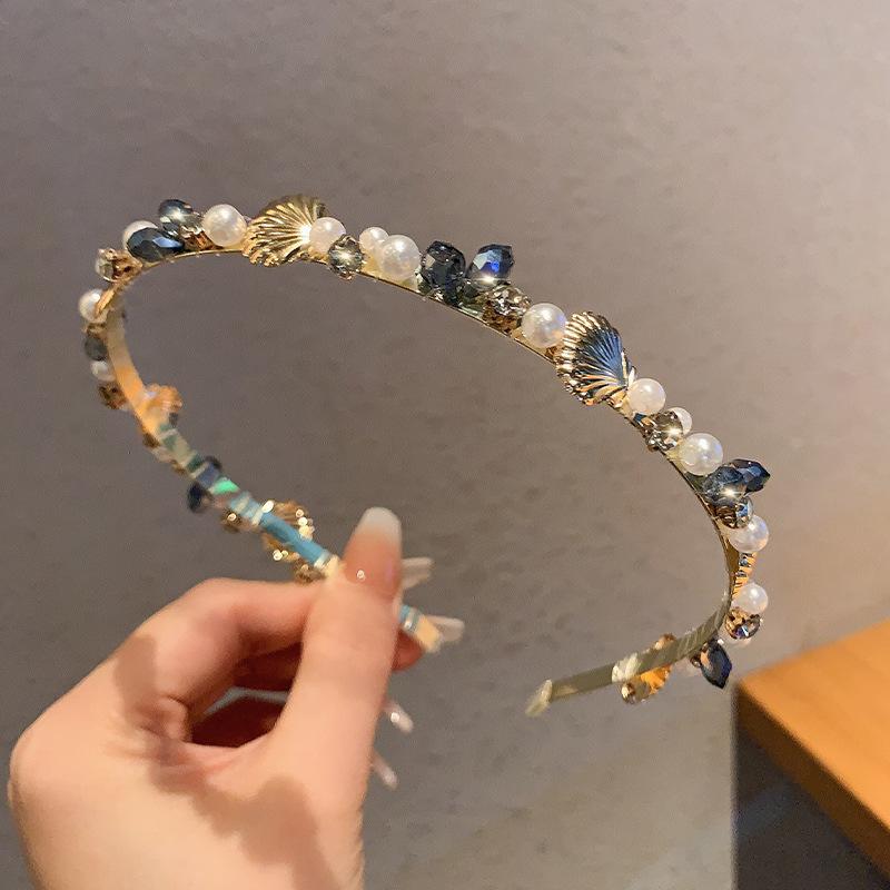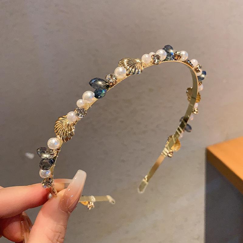 Accesorios para el Cabello, Lujo Accesible y Exquisita Diadema de Perlas de Vieira, Pedrería Super Brillante, Suave, Moderna y Versátil, Nuevo Estilo Caliente 2025