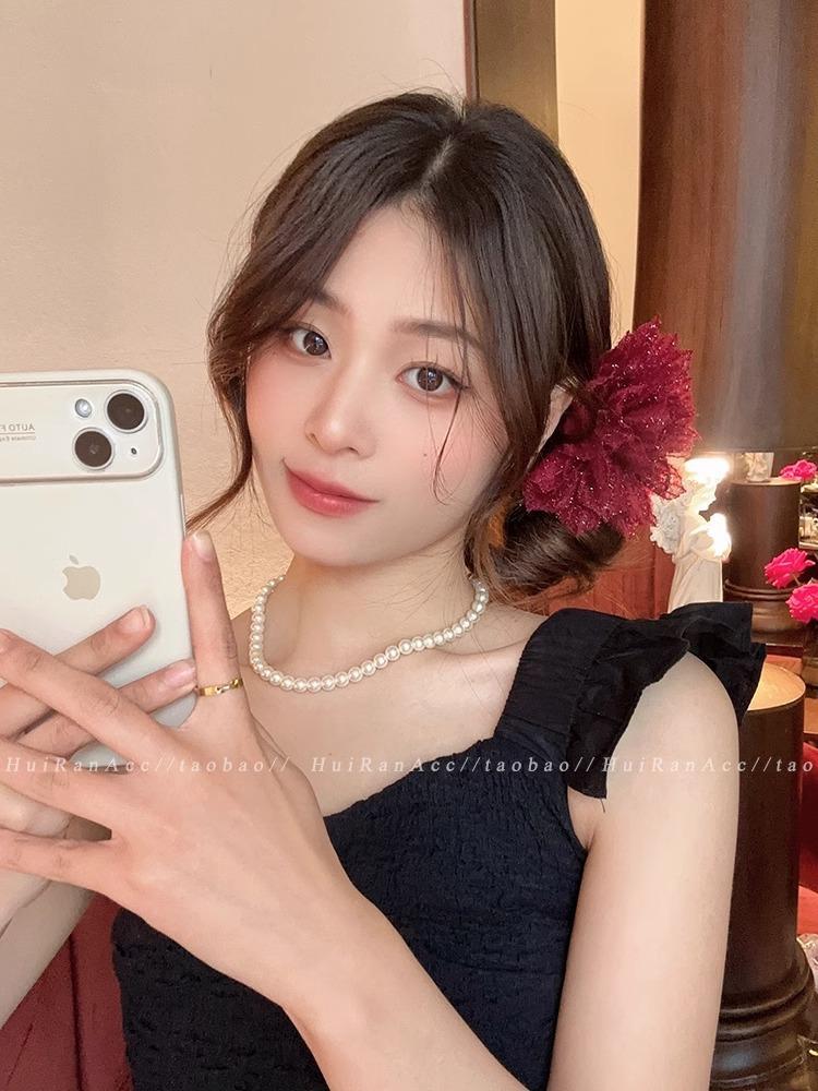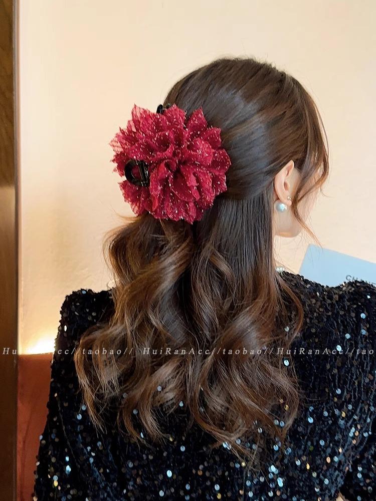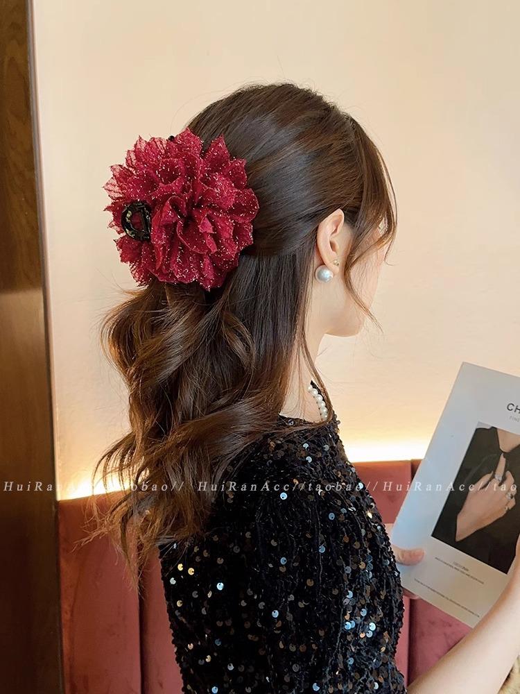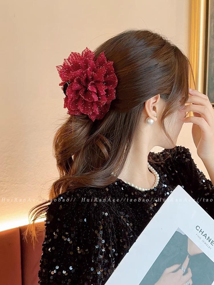 Nueva Horquilla de Flor Rosa Horquilla para la Parte Posterior de la Cabeza para Mujer Moda Primavera y Verano Versátil Clip para Cola de Caballo Lateral Tocado