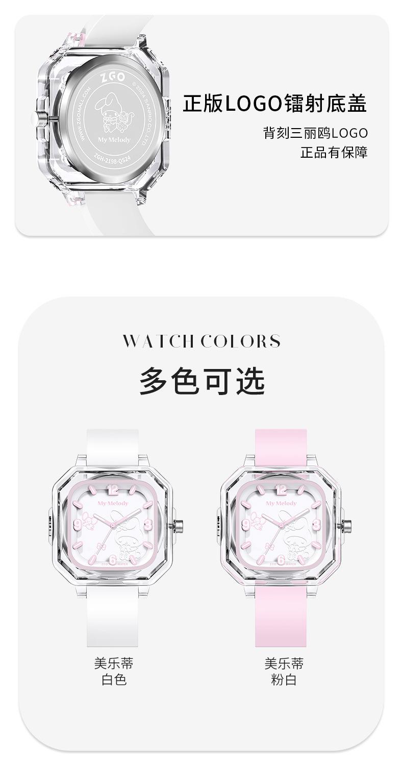 Reloj de melodía conjunta Sanrio reloj de mujer estudiante de secundaria reloj de cuarzo luminoso resistente al agua
