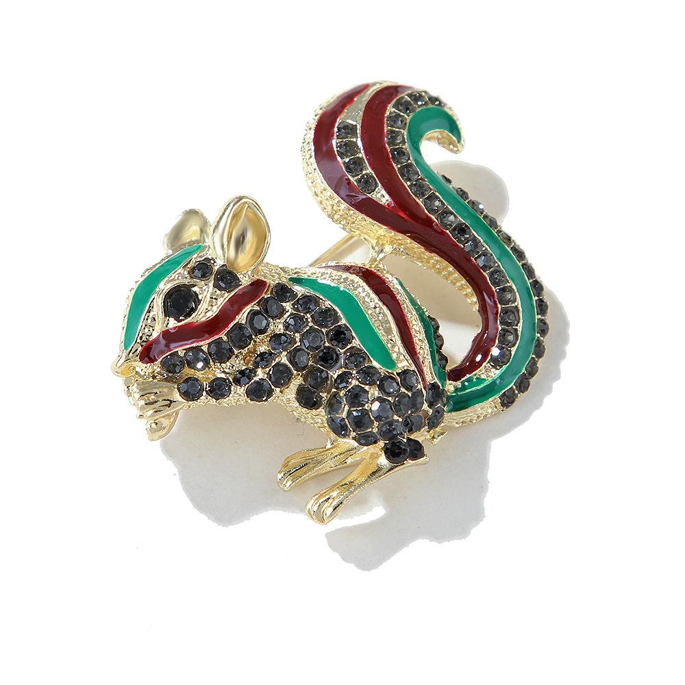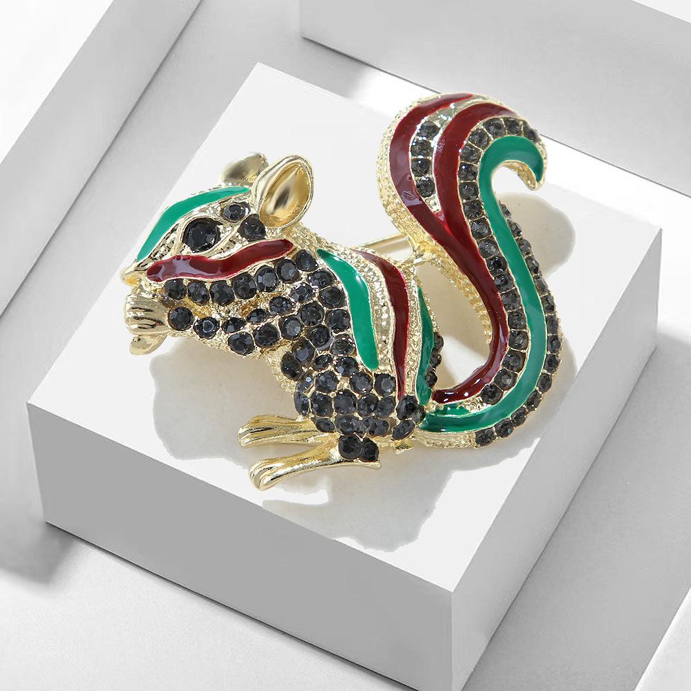 Suministro transfronterizo de broches de animales populares europeos y americanos, joyería al por mayor, aleación de diamantes, lindo broche de ardilla vintage.