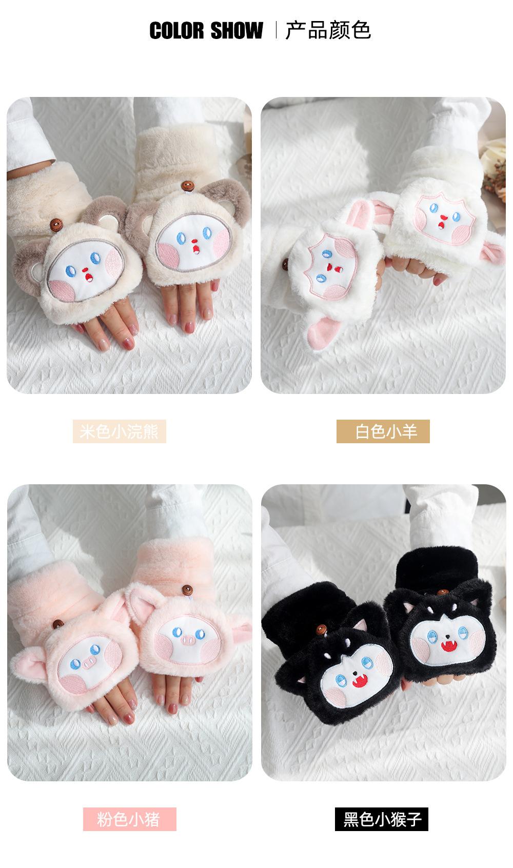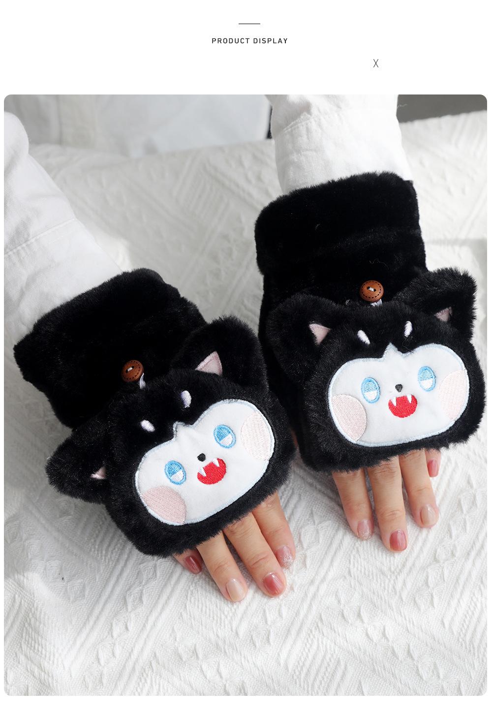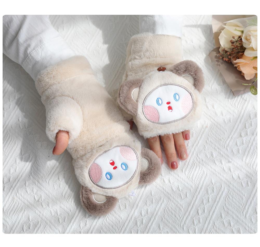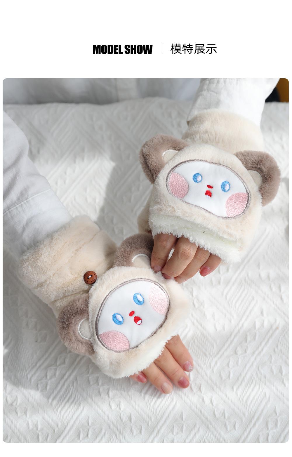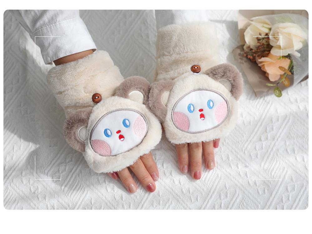 Guantes de invierno para mujer, suaves, con dibujos animados, de estilo coreano, cálidos, forrados de vellón, gruesos, de medio dedo, abiertos, para estudiantes, para montar en la marea.