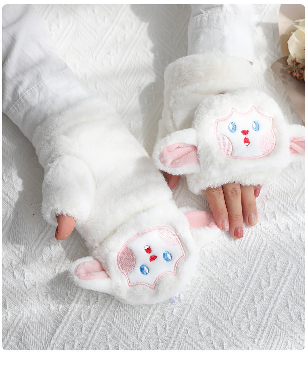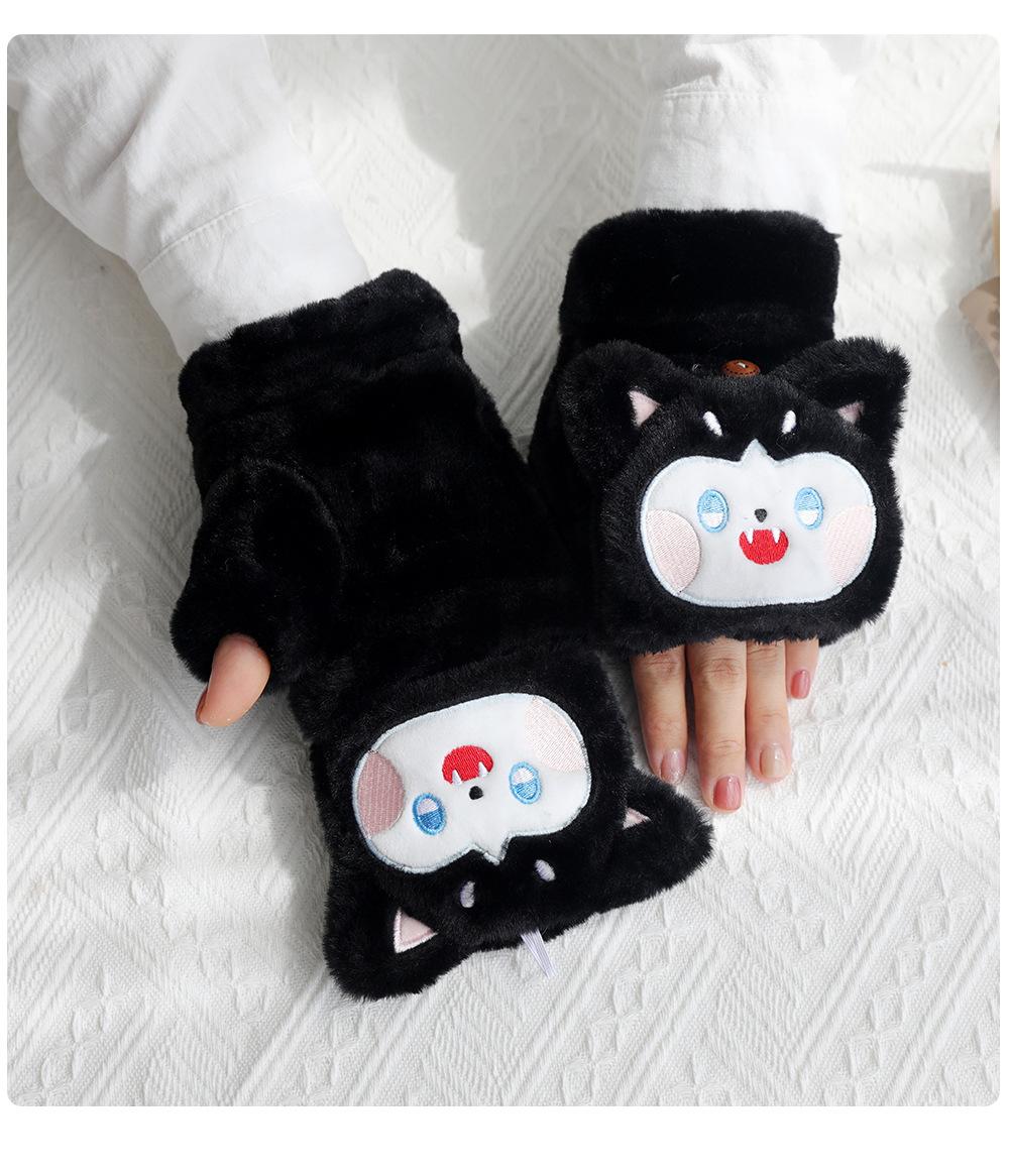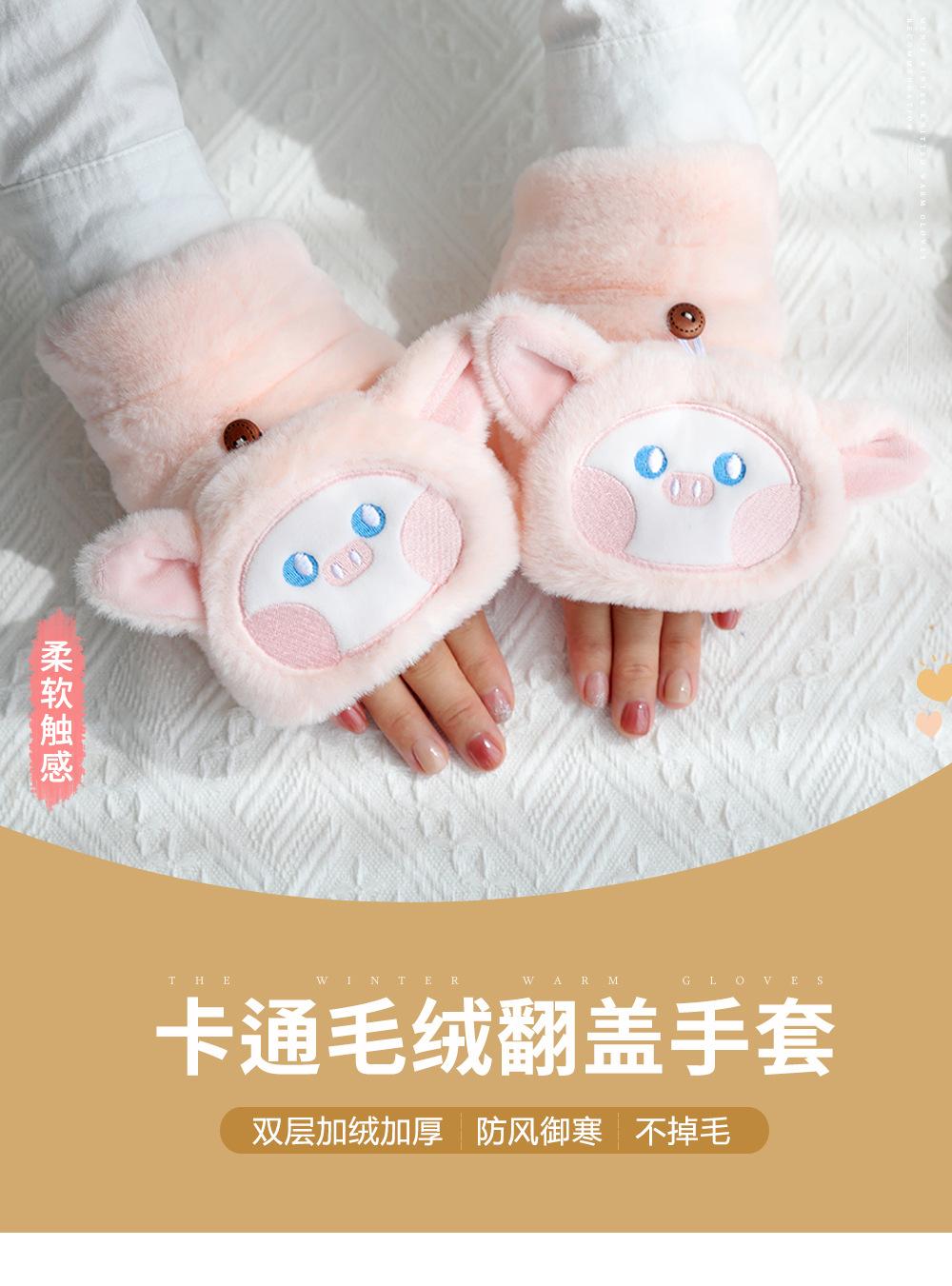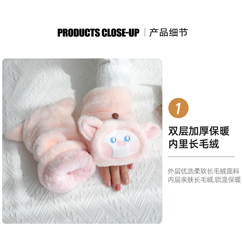Guantes de invierno para mujer, suaves, con dibujos animados, de estilo coreano, cálidos, forrados de vellón, gruesos, de medio dedo, abiertos, para estudiantes, para montar en la marea.