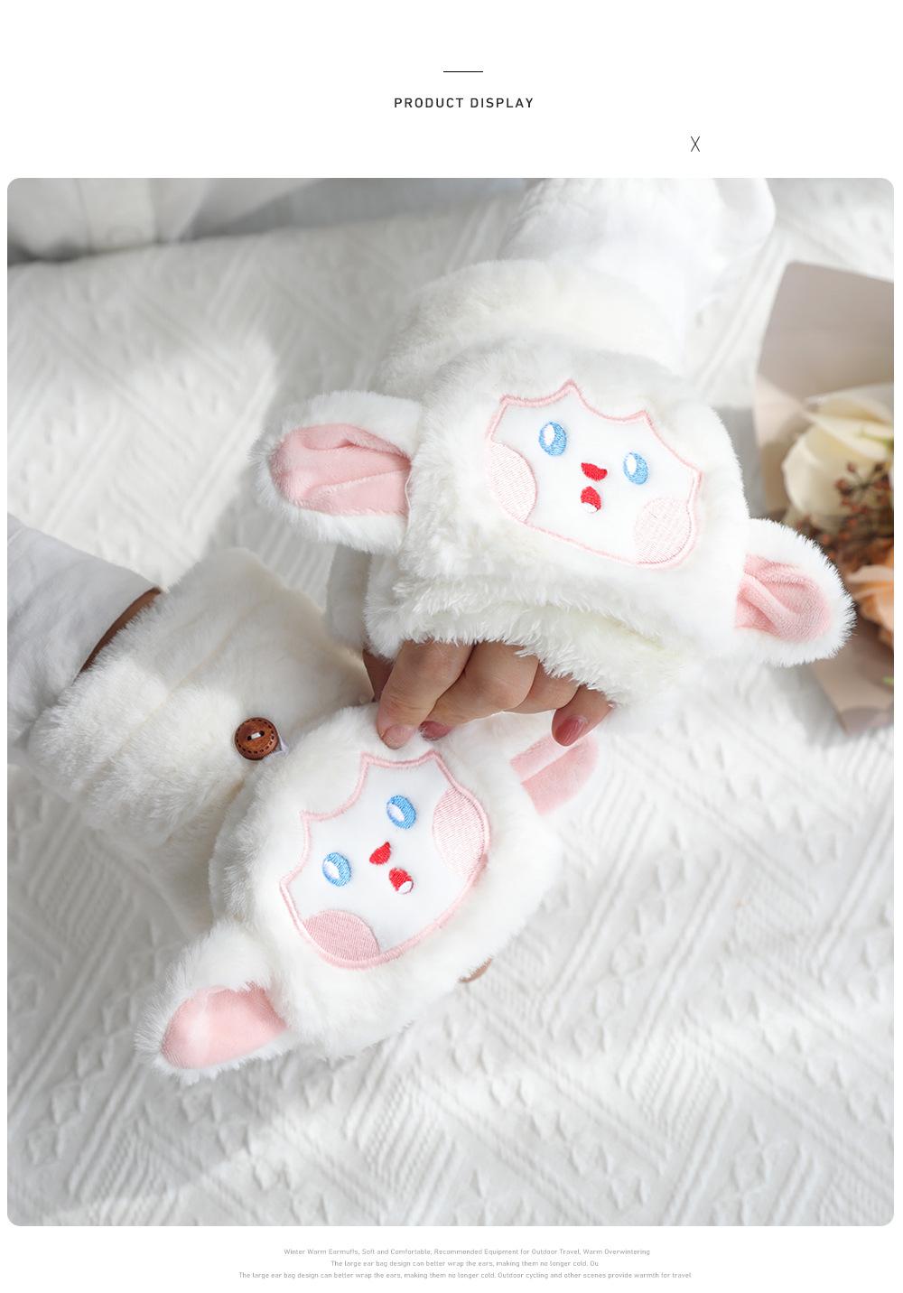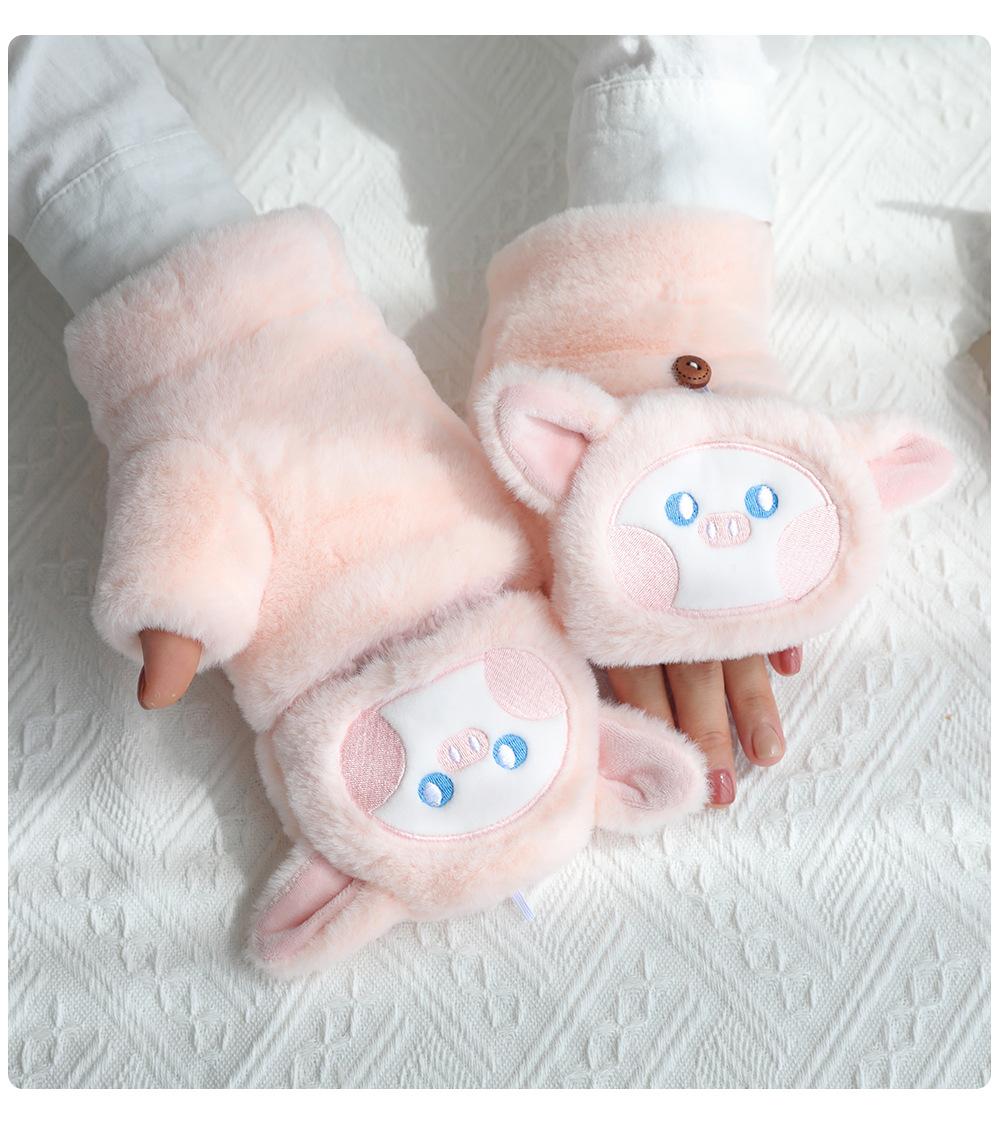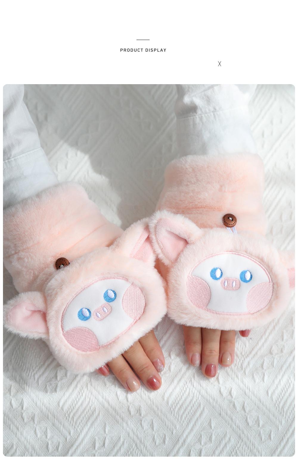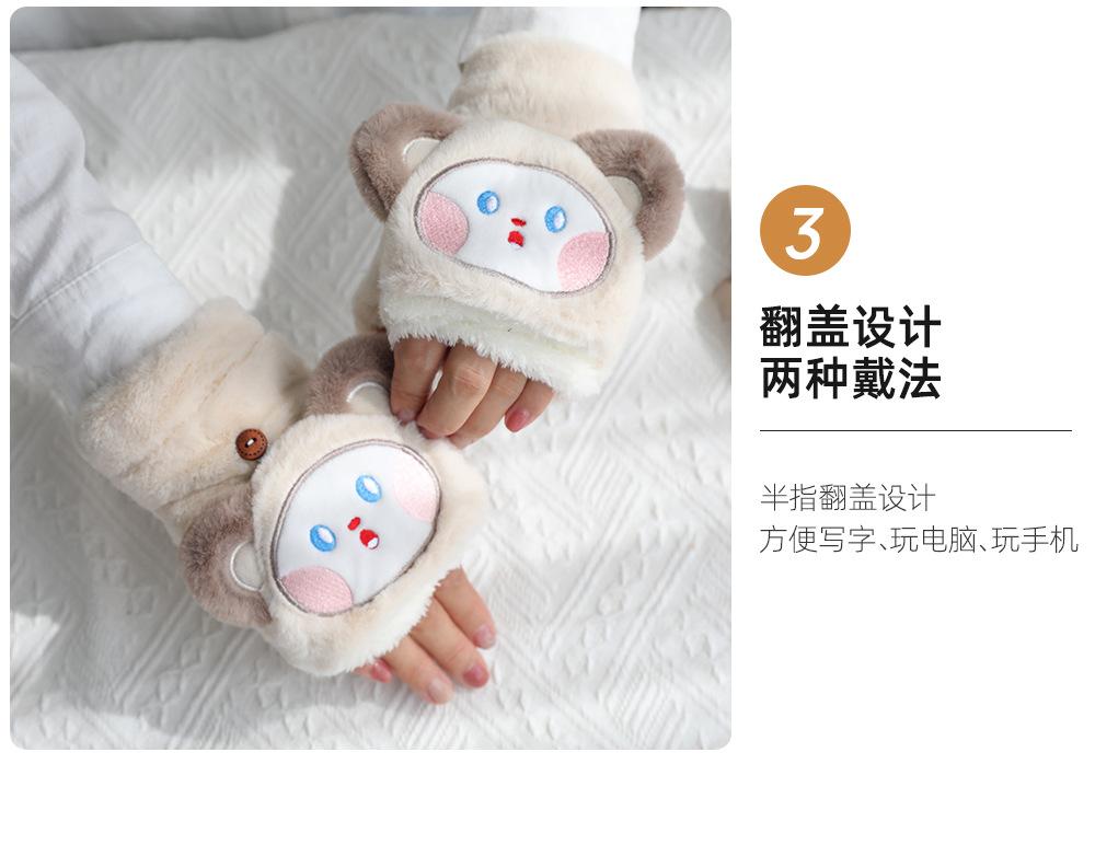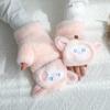 Guantes de invierno para mujer, suaves, con dibujos animados, de estilo coreano, cálidos, forrados de vellón, gruesos, de medio dedo, abiertos, para estudiantes, para montar en la marea.
