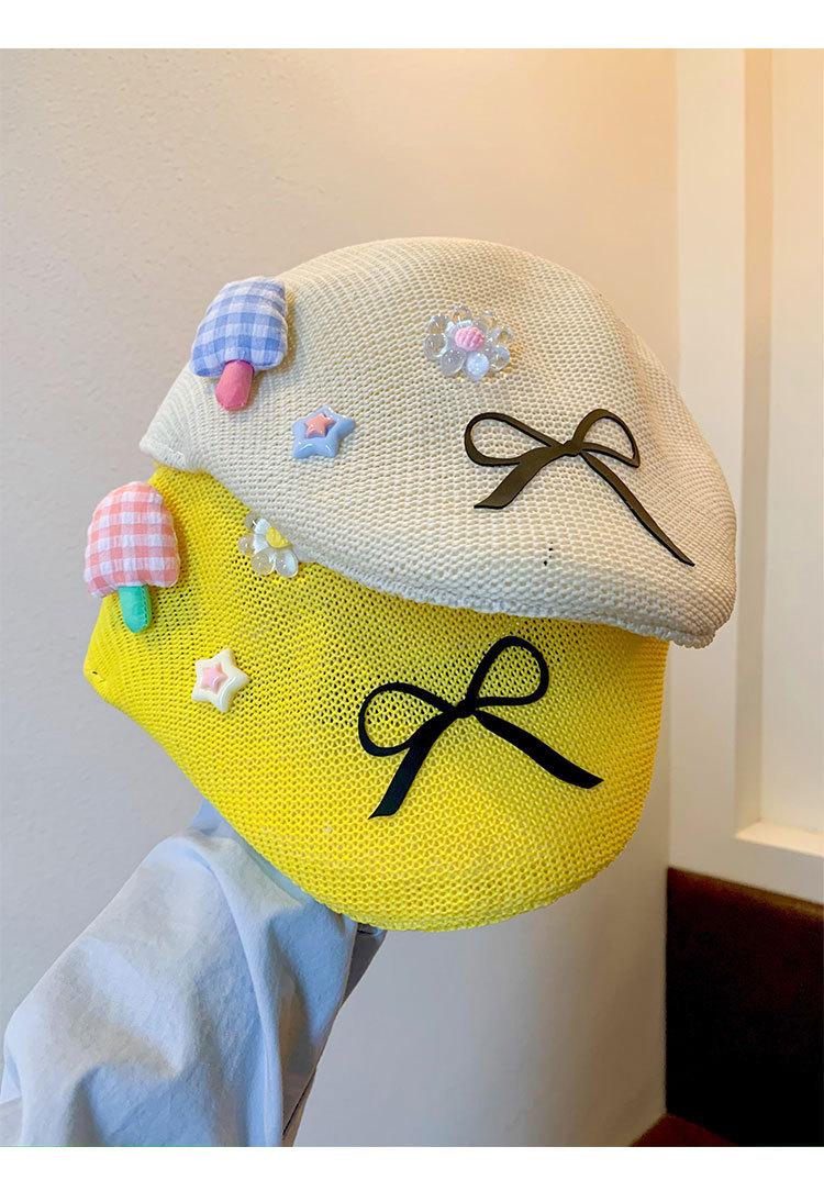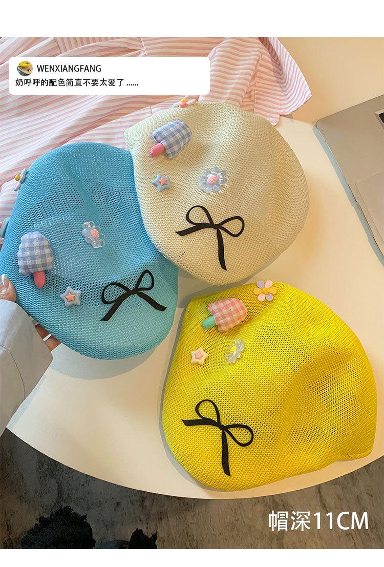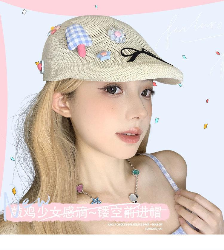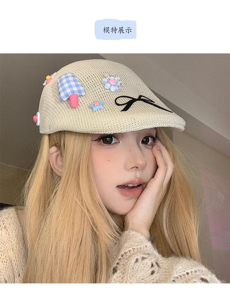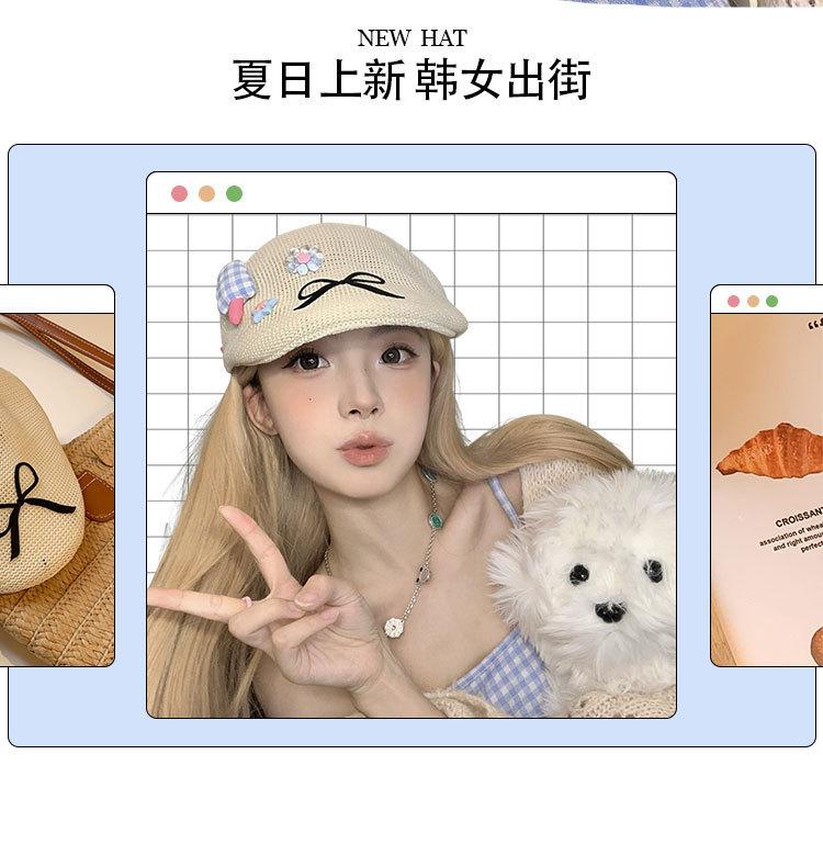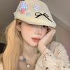 Boina hueca con lazo bonito para mujer, gorra frontal con cara visible, pequeña, transpirable y combinable, 2024