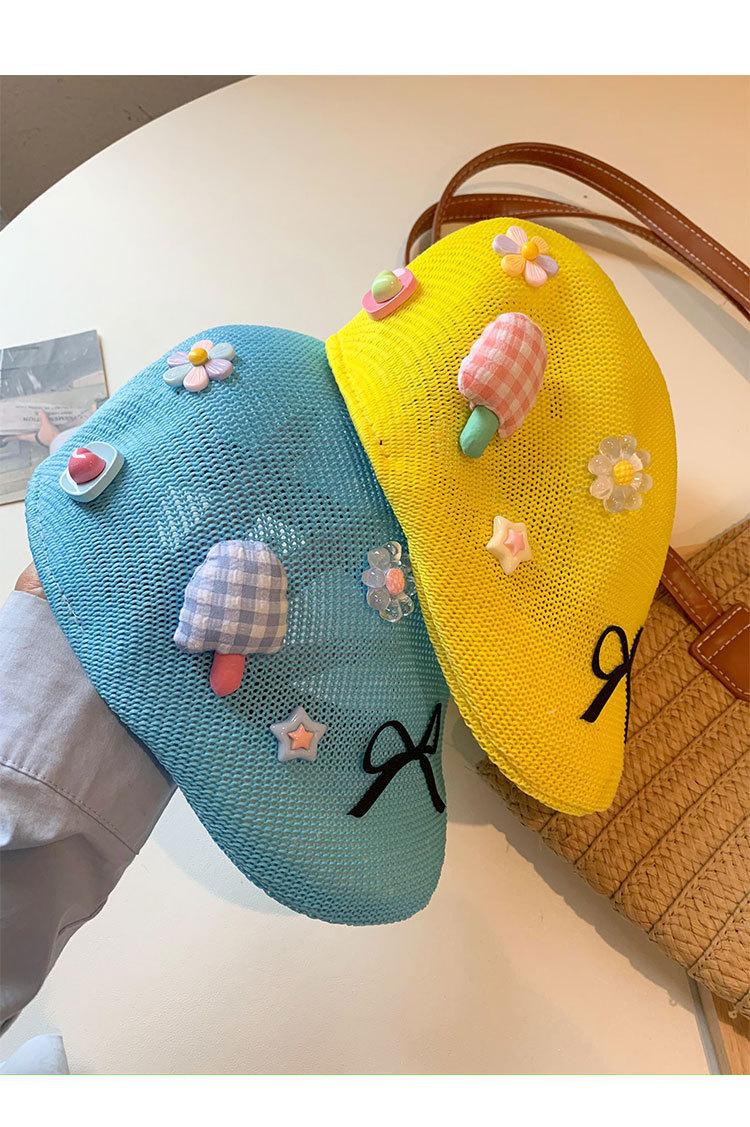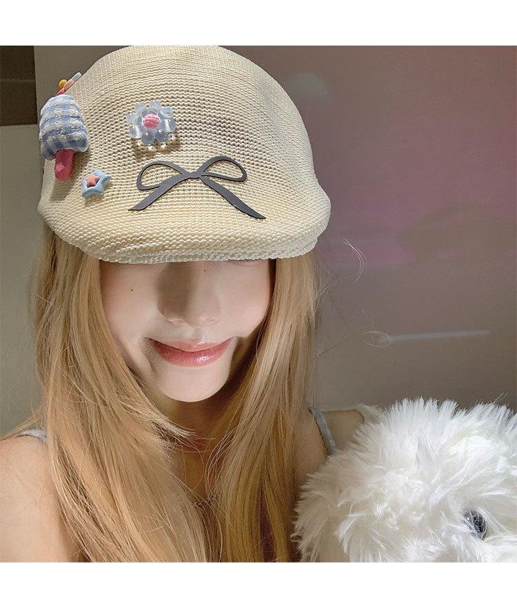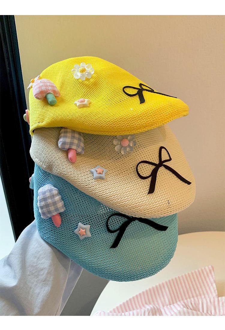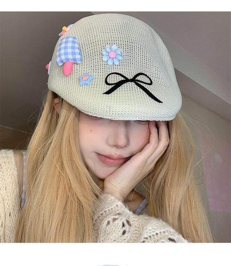 Boina hueca con lazo bonito para mujer, gorra frontal con cara visible, pequeña, transpirable y combinable, 2024
