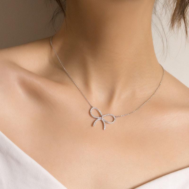 Collar con lazo de diamantes para mujer, elegante cadena de clavícula de lujo, estilo nicho, para celebridades de Internet, joyería de alta gama de moda de verano.