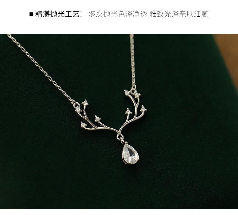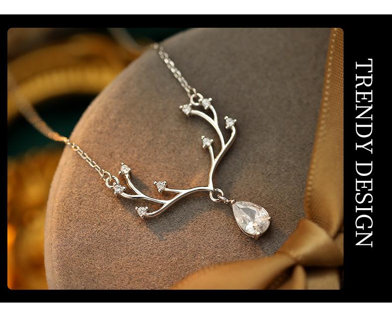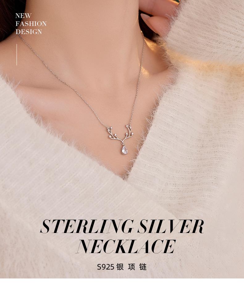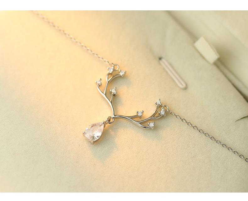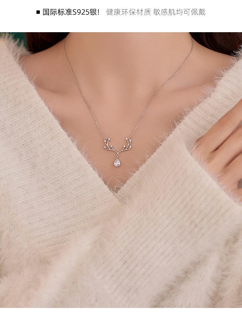 Collar Banyan Tree S925 de plata de ley con forma de alce, de lujo, con forma de gota de agua y diamantes, para mujer, elegante y a la moda, nueva cadena de clavícula al por mayor.