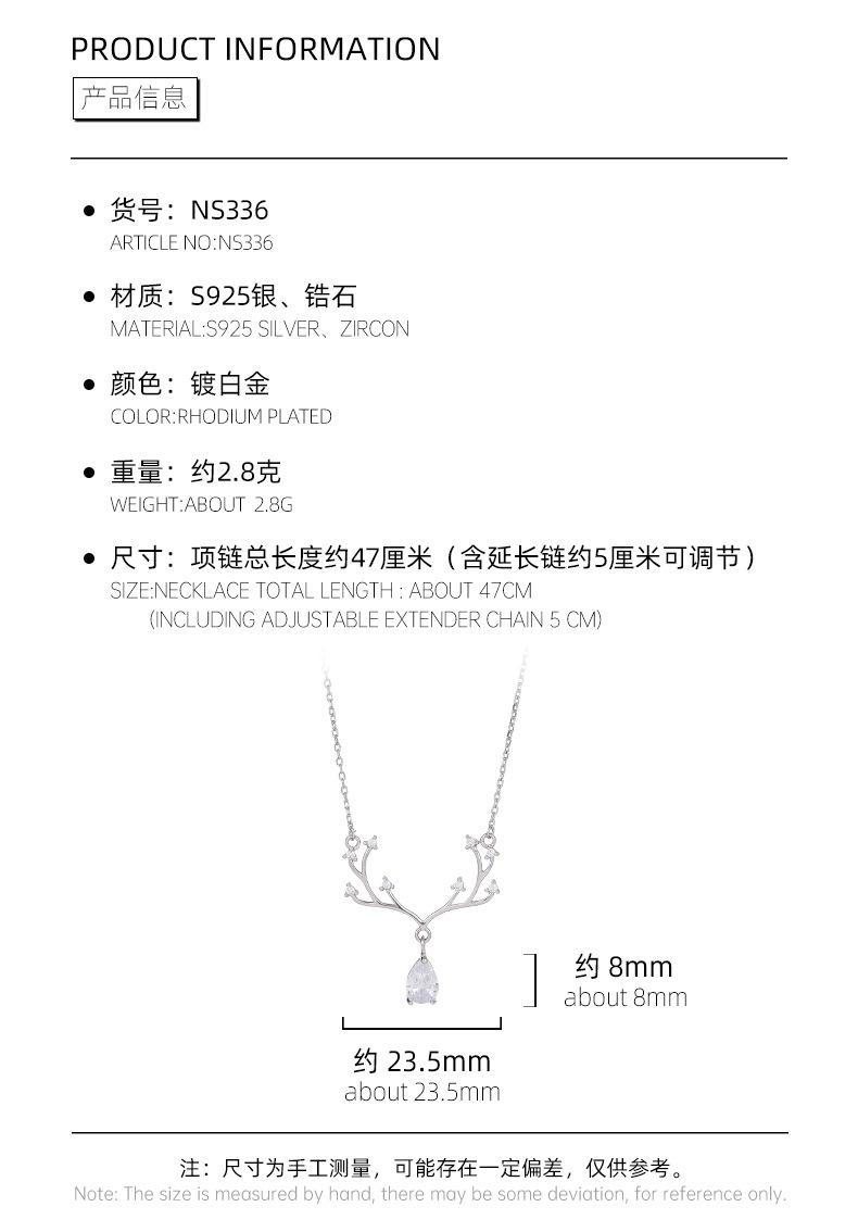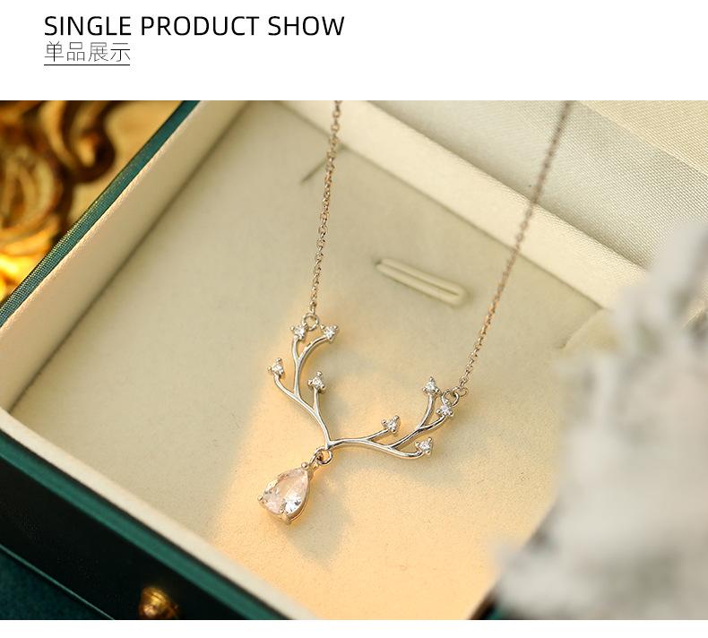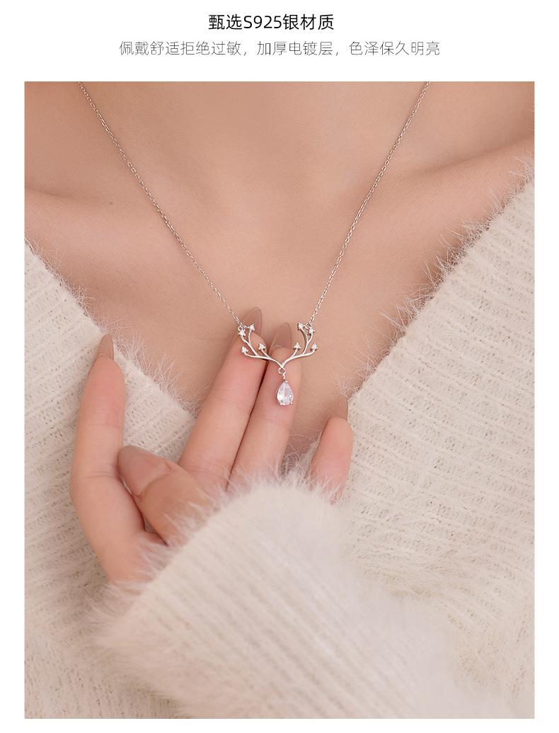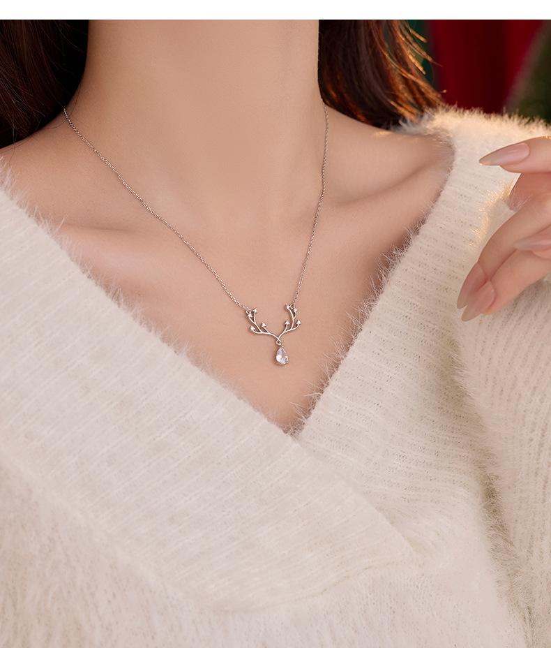 Collar Banyan Tree S925 de plata de ley con forma de alce, de lujo, con forma de gota de agua y diamantes, para mujer, elegante y a la moda, nueva cadena de clavícula al por mayor.