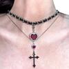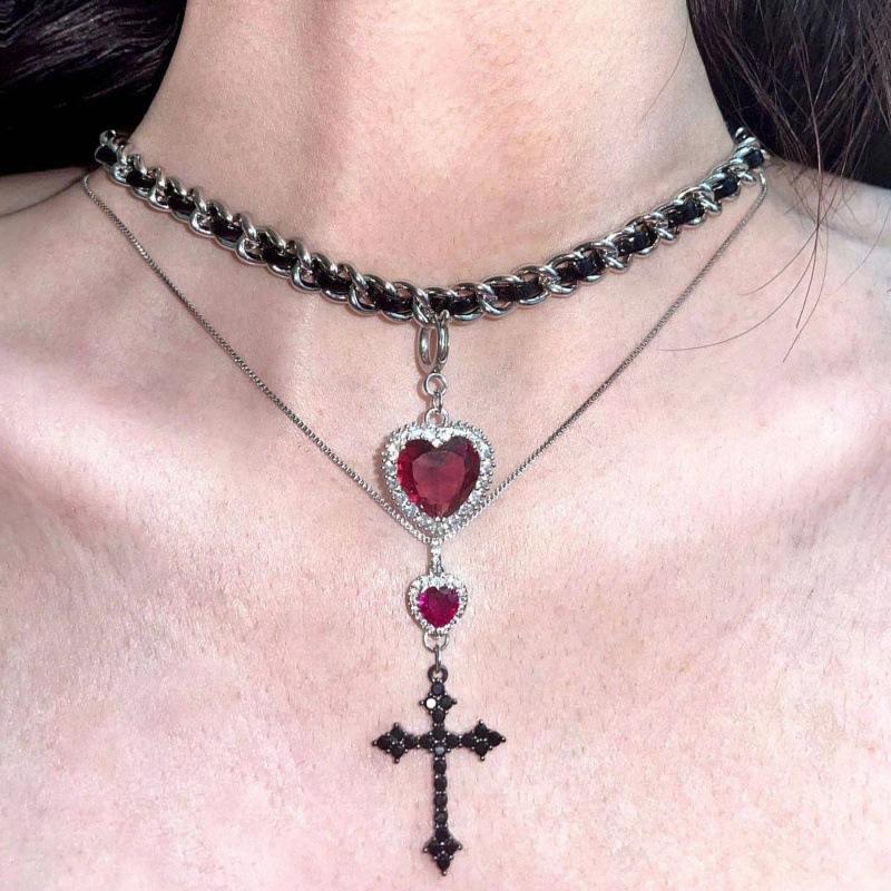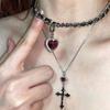 Collar con colgante de cruz de amor roja con incrustaciones de diamantes, elegante y moderno, para mujer, diseño vintage de nicho, cadena de clavícula con sentido del estilo.