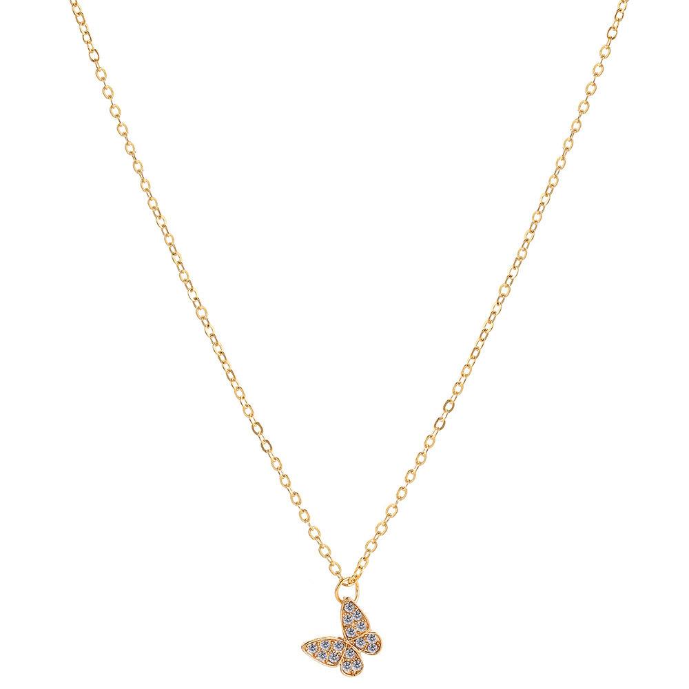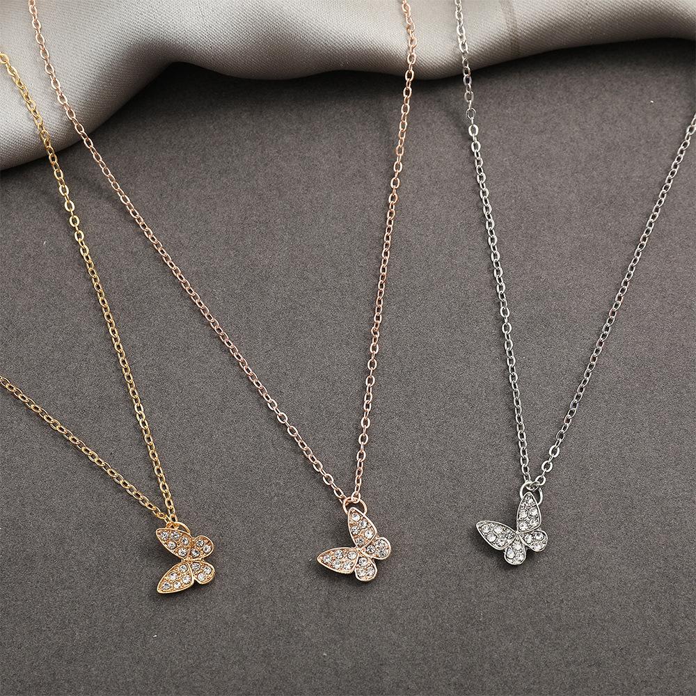 Gold heart-shaped diamond necklace, Silver heart-shaped diamond necklace, butterfly necklace