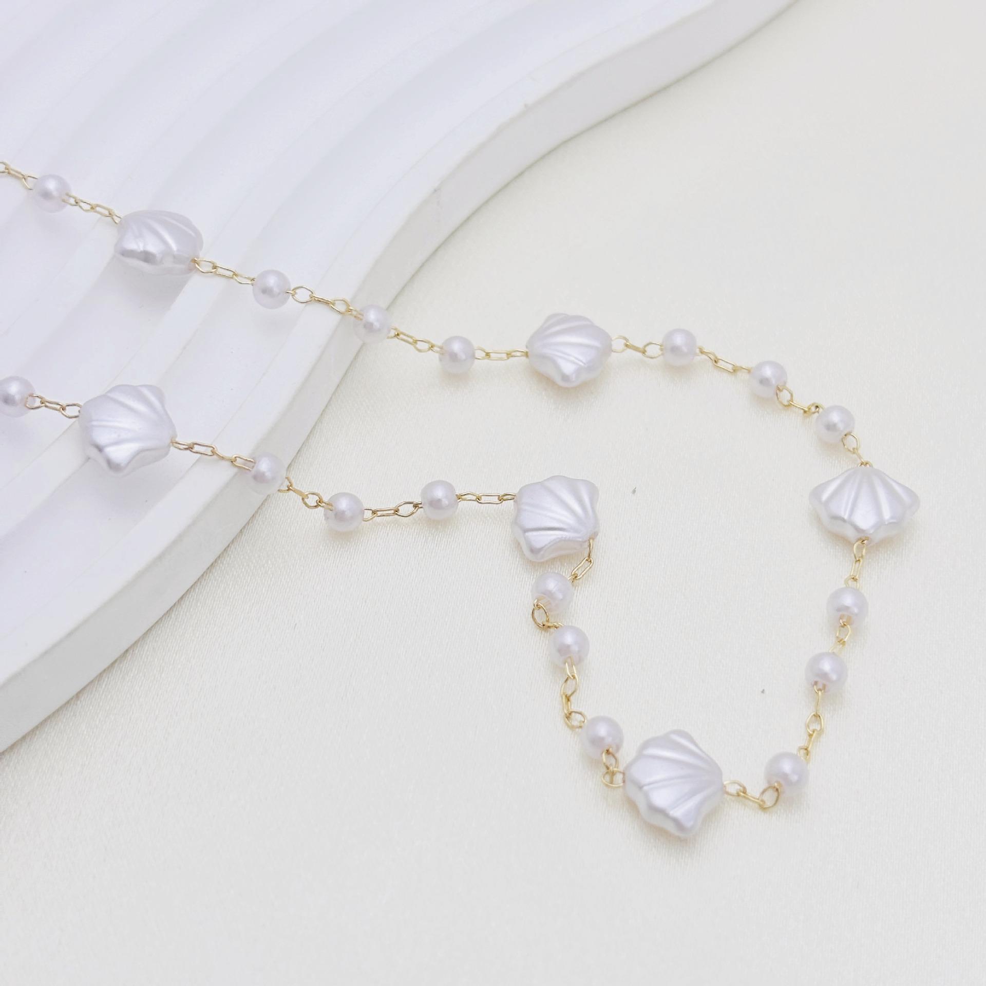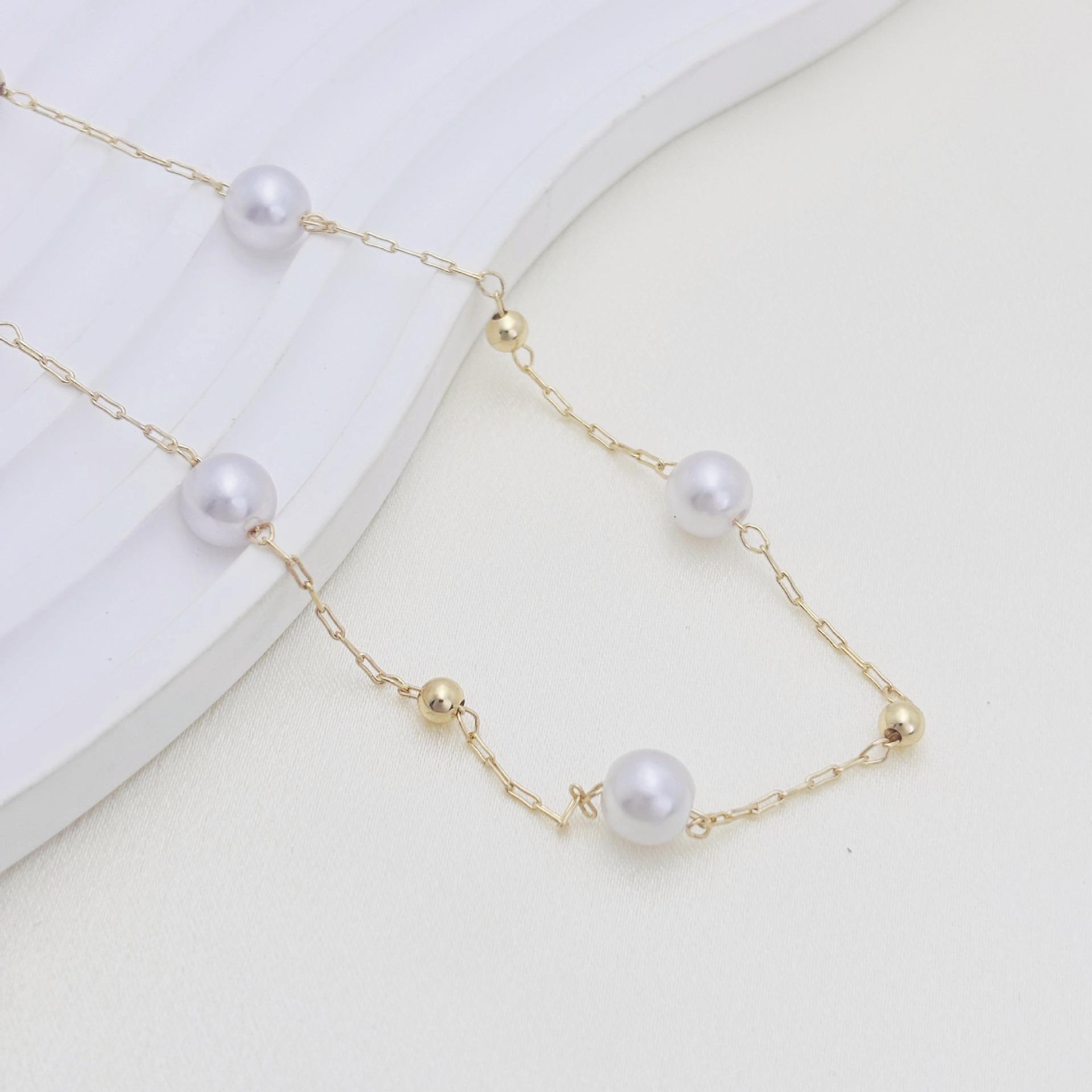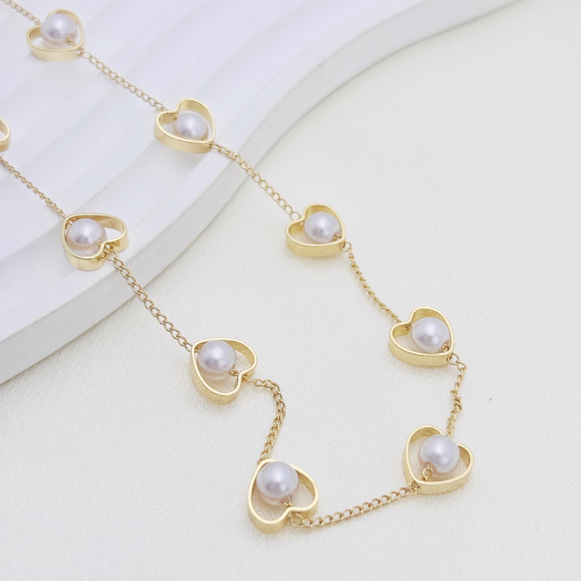 DTY oro de 14k chapado en cobre mariposa corazón cadena de perlas pulsera de hebilla única horquilla borla cadena suelta al por mayor